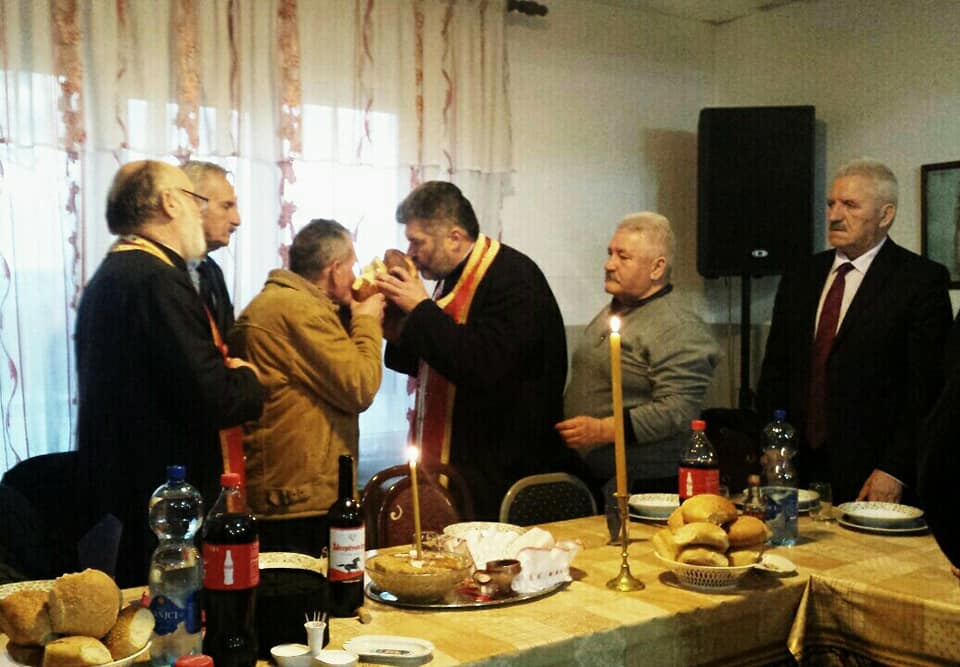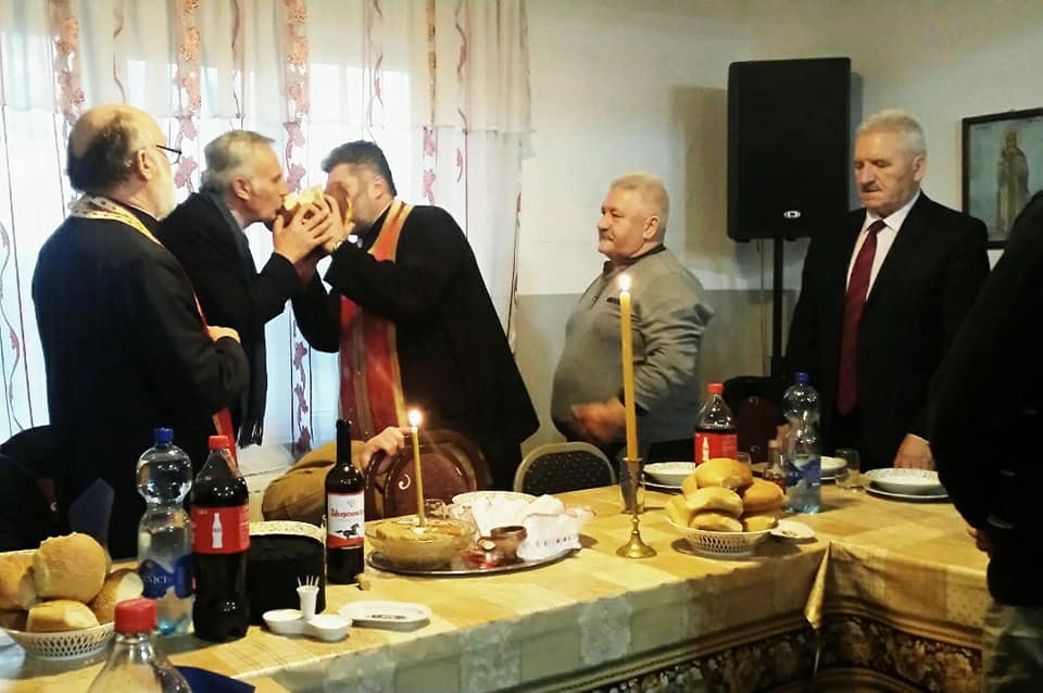 У препуној сали надлежни свештеник је свечарима с радошћу честитао славу, посебно захваливши на томе што су послушали његов савет да у моменту кризе, свађа и свакаквих разилажења покажу љубав и мир, истрајност и праштање, молитву и веру, заједништво и слогу, и да тако удружени домаћини скупа припреме своју славу. У току беседе свештеник је оживео вредности и части славе и поштовања старих предака кроз причу о војнику који је у току рата ризиковао свој живот да спасе рањеног пријатеља са којим је као мали заједно прослављао славу, а сада је заједно у рову на ратишту.Када је мртвог пријатеља на леђима донео, официр је узвикнувши запитао: “Да ли је то било вредно?”, а војник је одговорио да је било вредно јер је пријатељ још био жив кад је стигао и последње речи су му биле: “Знао сам да ћеш доћи”.