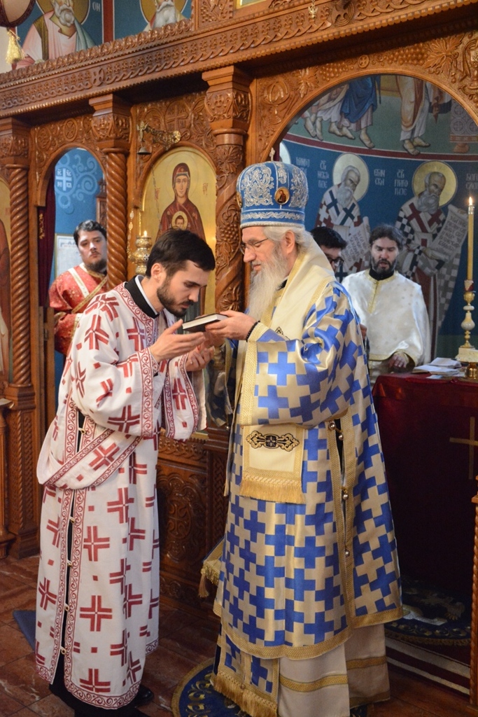 Епископ је у току свете Литургије рукоположио у чин ђакона дипломираног теолога господина Милоша Ћирића из Лазаревца. Владика је овом приликом истакао важност нашег припремања за дарове које нам Литургија даје. “Није исто присуствовати и учествовати на Литургији. Потребно је да сав свој живот Христу Богу предамо. Да бисмо заиста браћо и сестре задобили оно што нам Литургија даје, неопходно је да, попут жене из данашњег Јеванђеља, доживимо Христа као Бога, као Избавитеља и Спаситеља, лијући покајничке сузе. Ова жена је пред Христа донела своје покајање. Покајање чисти човека и омогућава му да кроз то очишћење прими благодат Божију. Ту благодат примиће данас и ипођакон Милош Ћирић који ће бити рукоположен у чин ђакона”.