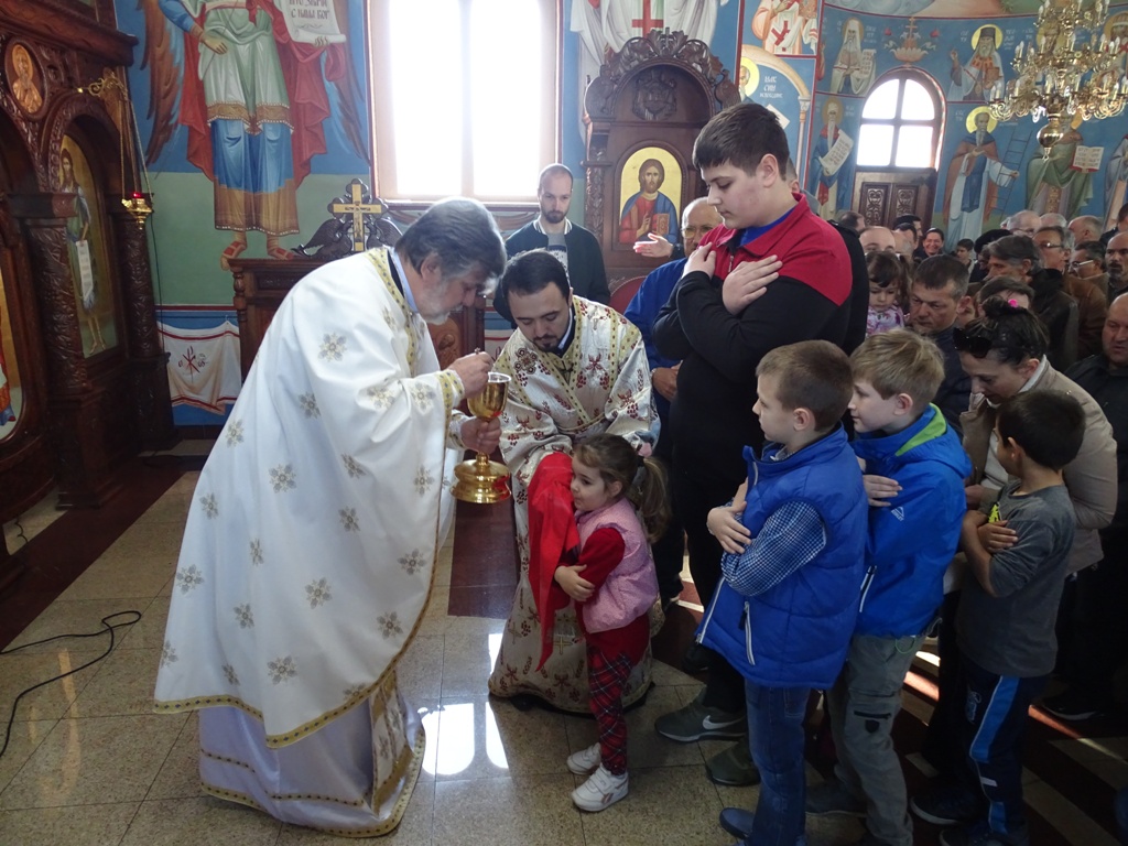 У току свете Литургије коју је служио архијерејски намесник орашачки, протојереј-ставрофор Мићо Ћирковић уз саслуживање протојереја Слободана Раковића, протонамесника Александра Миловановића, јереја Немање Искића и ђакона Александра Бабића, верници су били поучени о значају поста и Светог Причешћа и њиховом утицају на наше душе.