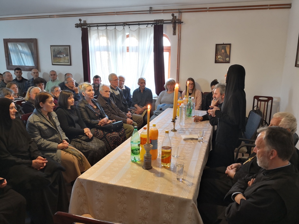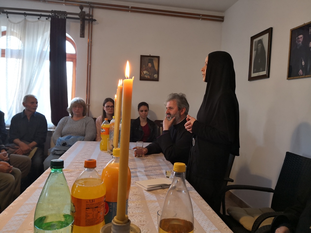 Игуманија манастира Светог великомученика Георгија на Липару, мати Тавита, веома надахнуто одговарала је на питања и актуелне верске недоумице наших верника. Аутентично сведочење високопреподобне игуманије верници су одушевљено препознали као израз доживљене и проживљене вере у Господа нашег, што је овај сусрет претворило у својеврстан празник.