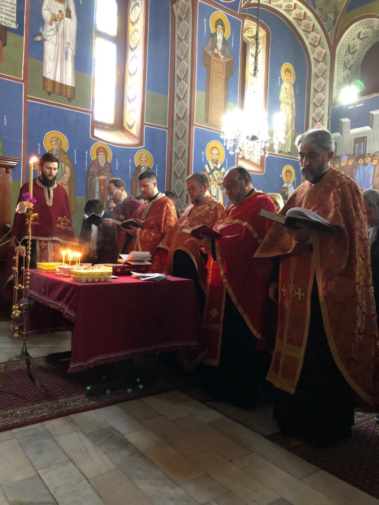 Служење свете тајне почело је у 16:00 часова, а чинодејствовали су: протојереј-ставрофор Љубиша Смиљковић, архијерејски намесник космајски, протојереј Новак Илић, парох неменикућски, протонамесник Горан Јеремић, парох сибнички, протонамесник Горан Лукић, парох други сопотски, јереј Немања Мудрић (гост из Архиепископије београдско-карловачке), јереј Игор Карановић (гост из Епархије банатске) и протонамесник Марко Стевановић, парох поповићки.
