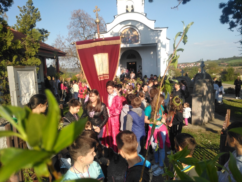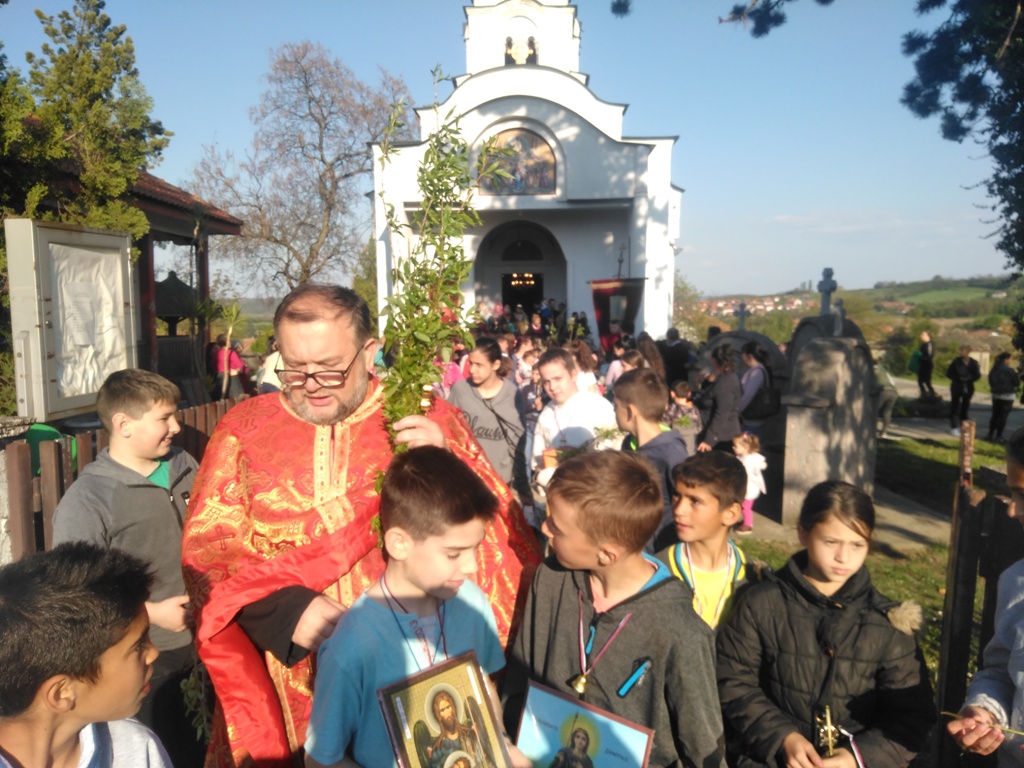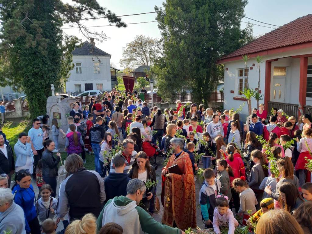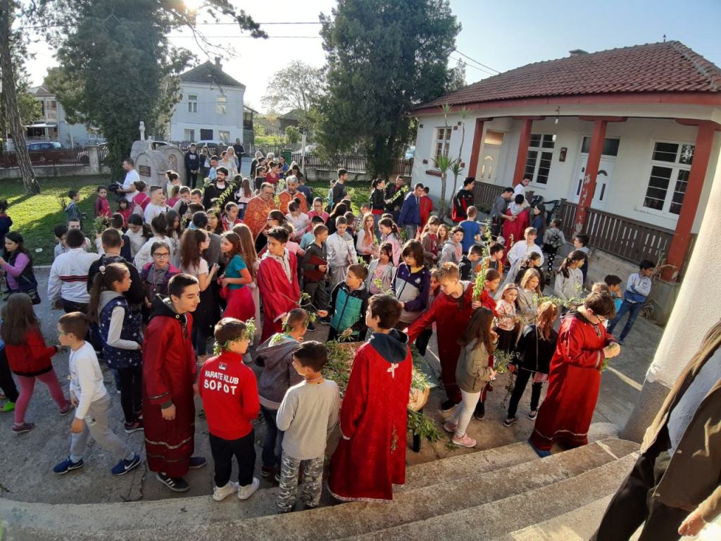 И ове, 2019. године порта храма Вазнесења Господњег у Сопоту била је препуна благочестивог народа, а посебно деце школског и предшколског узраста, која су у пратњи својих родитеља и вероучитеља, радосно ишчекивала освећење врбових гранчица.