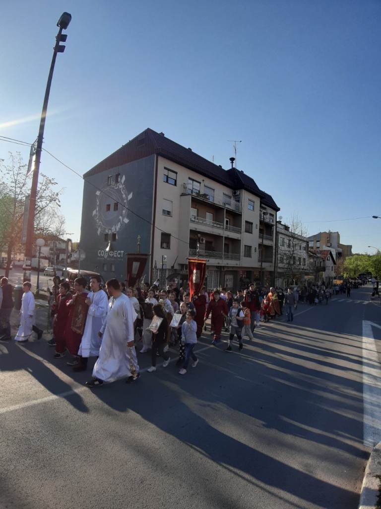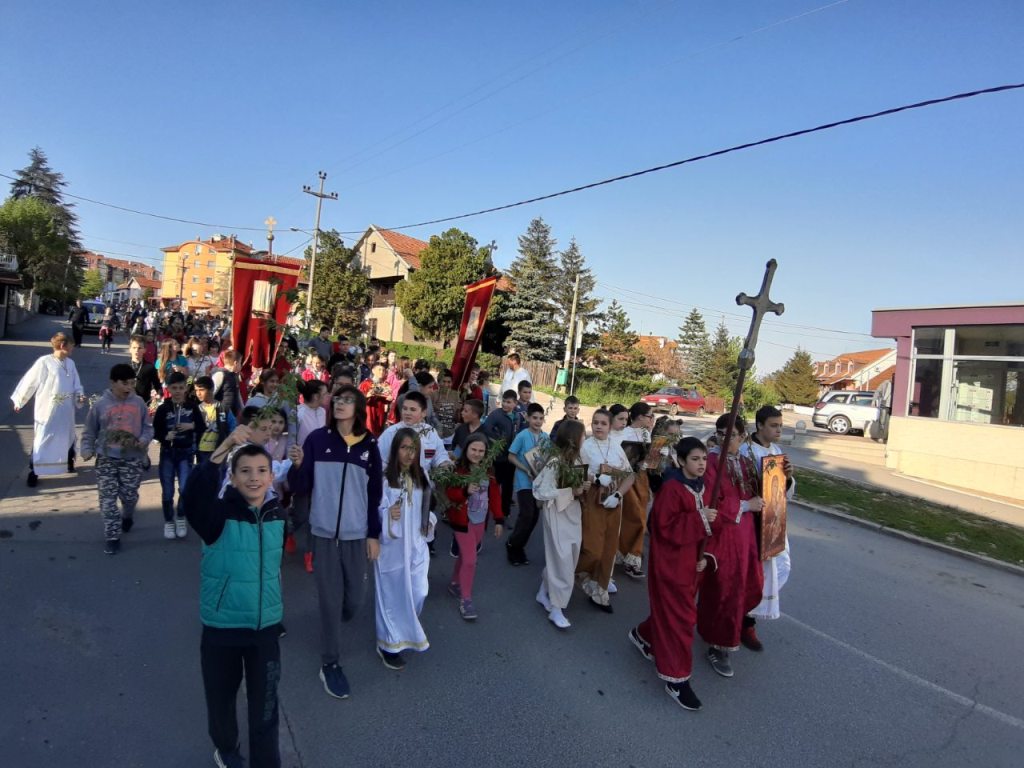 Након предпразничног бденија, са врбовим гранчицама у рукама, уследила је литија кроз Сопот у којој су најрадоснији били наши најмлађи хришћани.