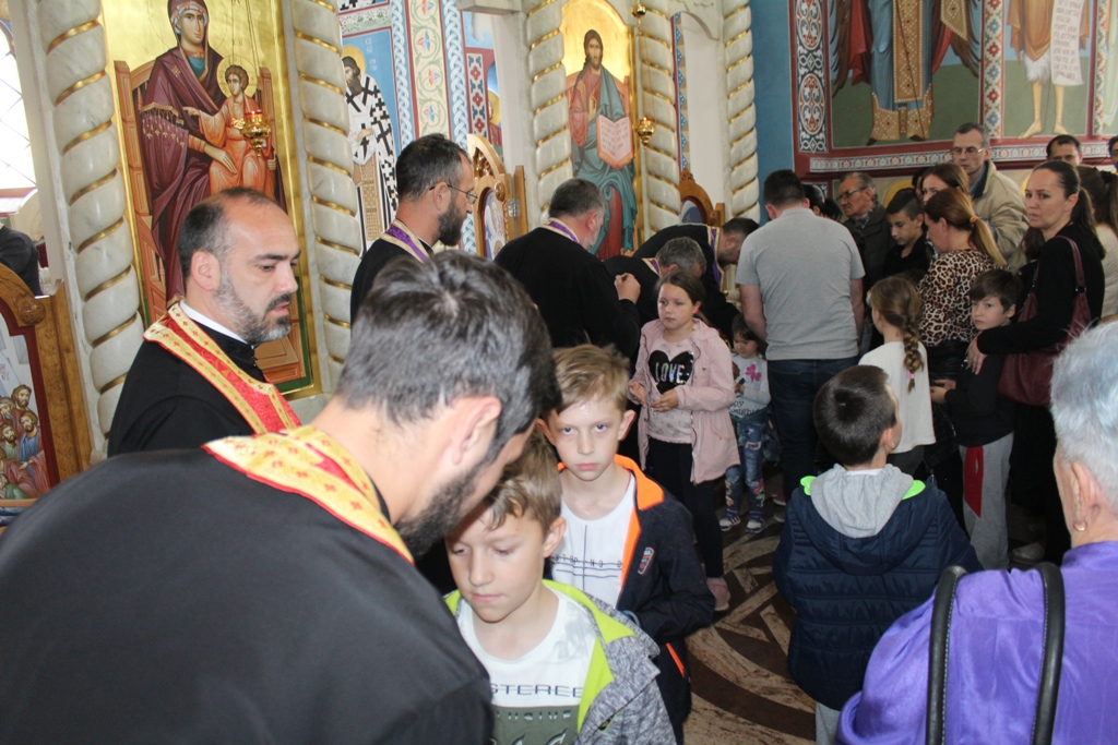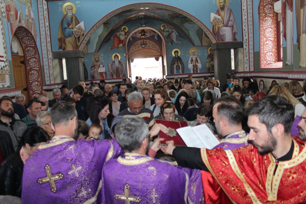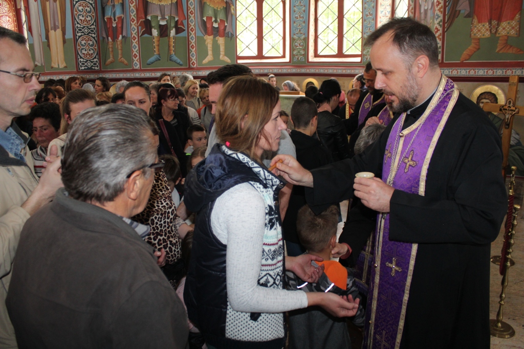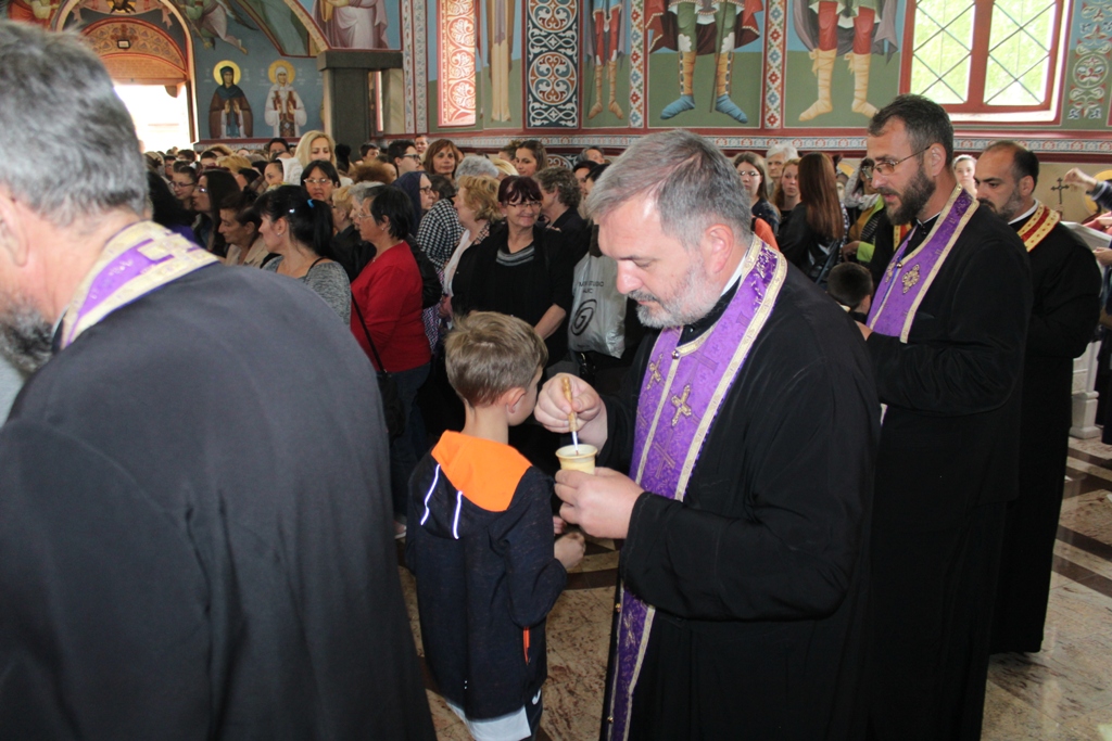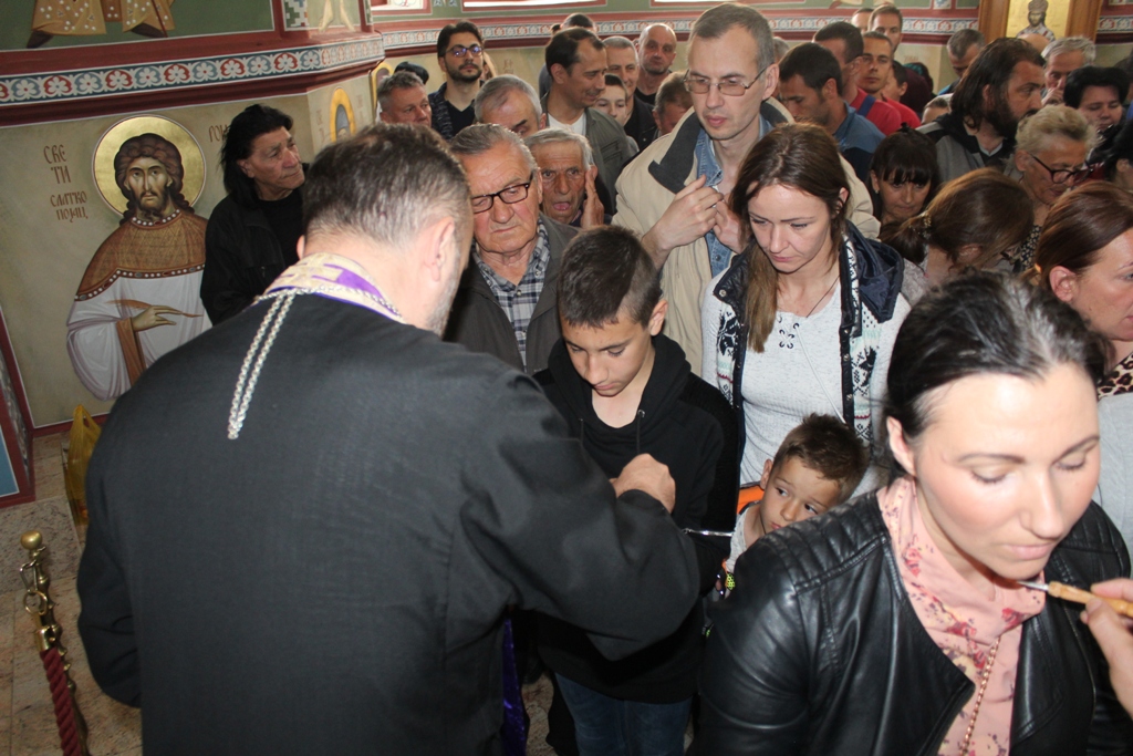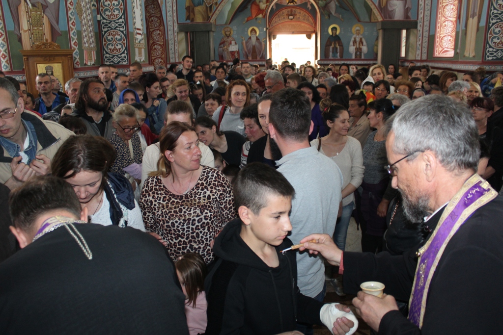 Ово је шеста година како се Света Tајна Јелеосвећења служи у младеновачком Храму. До прошле године је служено само уочи празника Светог Пантелејмона, али је због повећаног броја верних који сваке године учествују одлучено да се служи у току Страсне седемице. Јелеосвећењу је присуствовало више стотина верника из Младеновца и околних места.