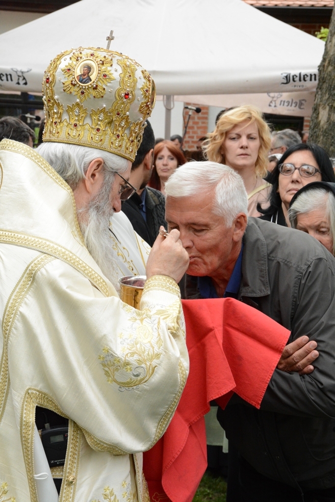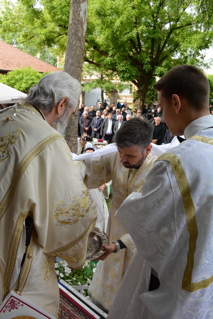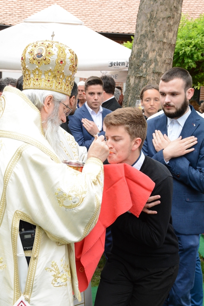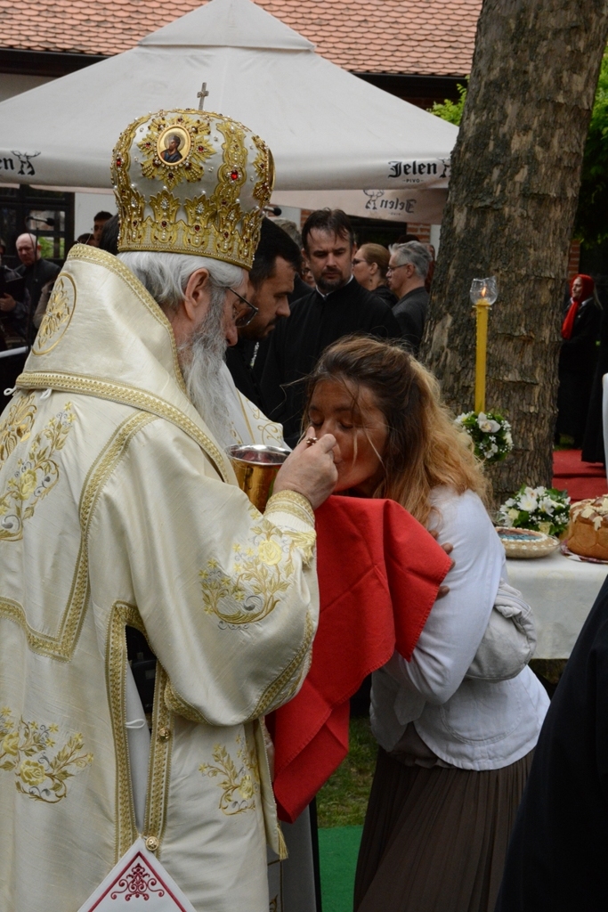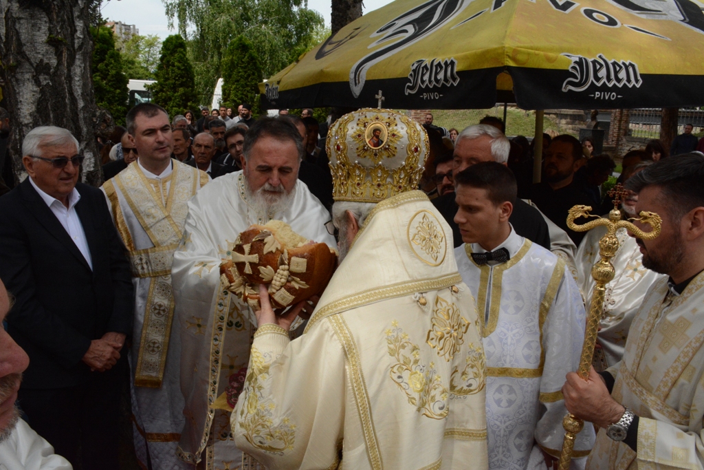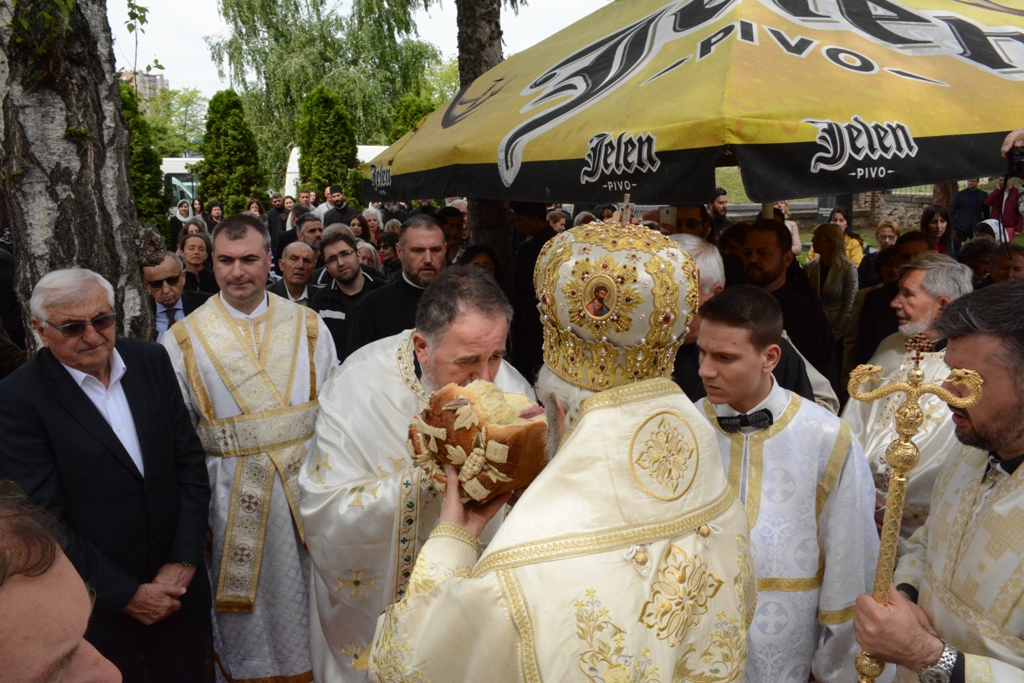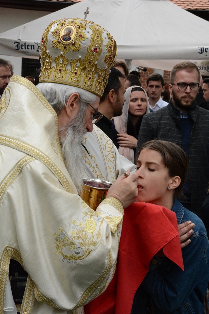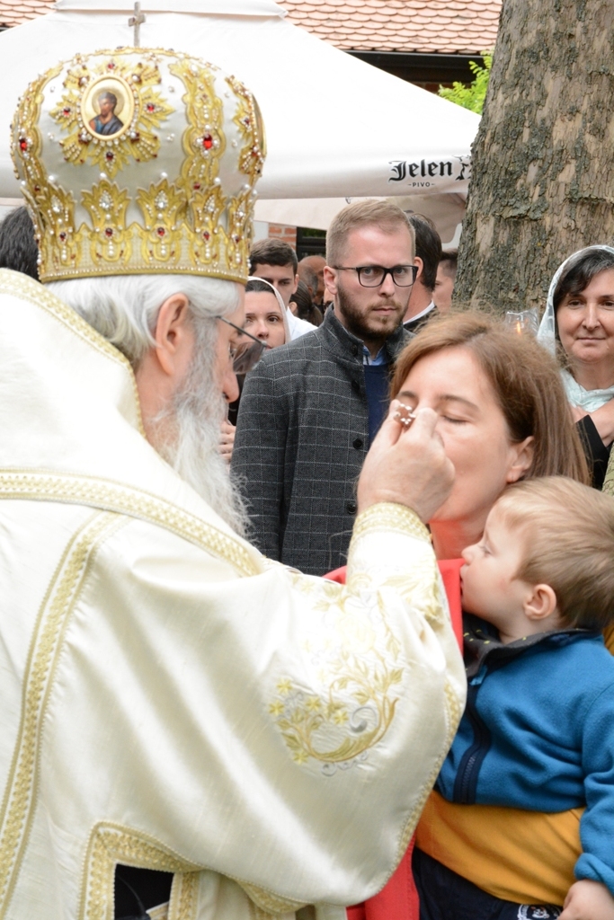 У порти Старе Милошеве Цркве преломљен је славски колач и постављено послужење за све верне. Потом је у хотелу “Шумарице” одржана Трпеза љубави,чиме је прослављање епархијске славе верног народа и свештенства са својим Архијерејем настављено и у поподневним часовима.