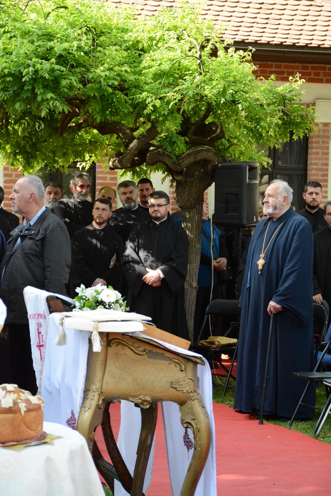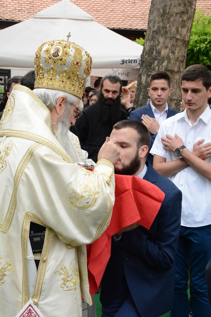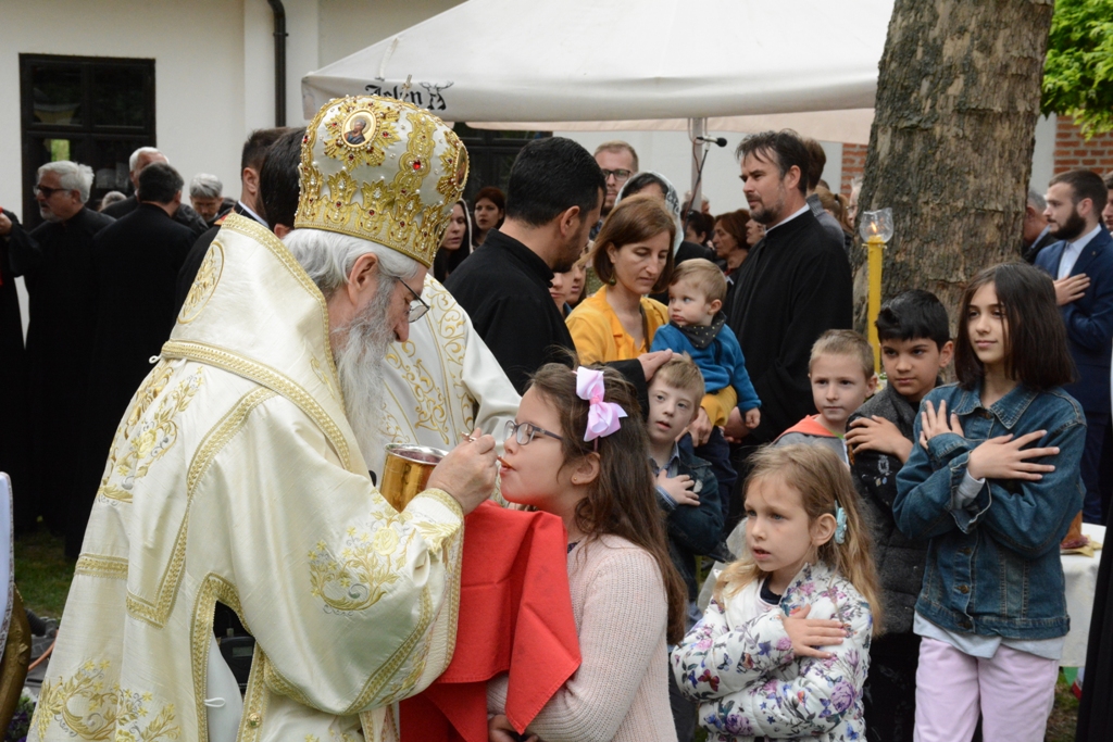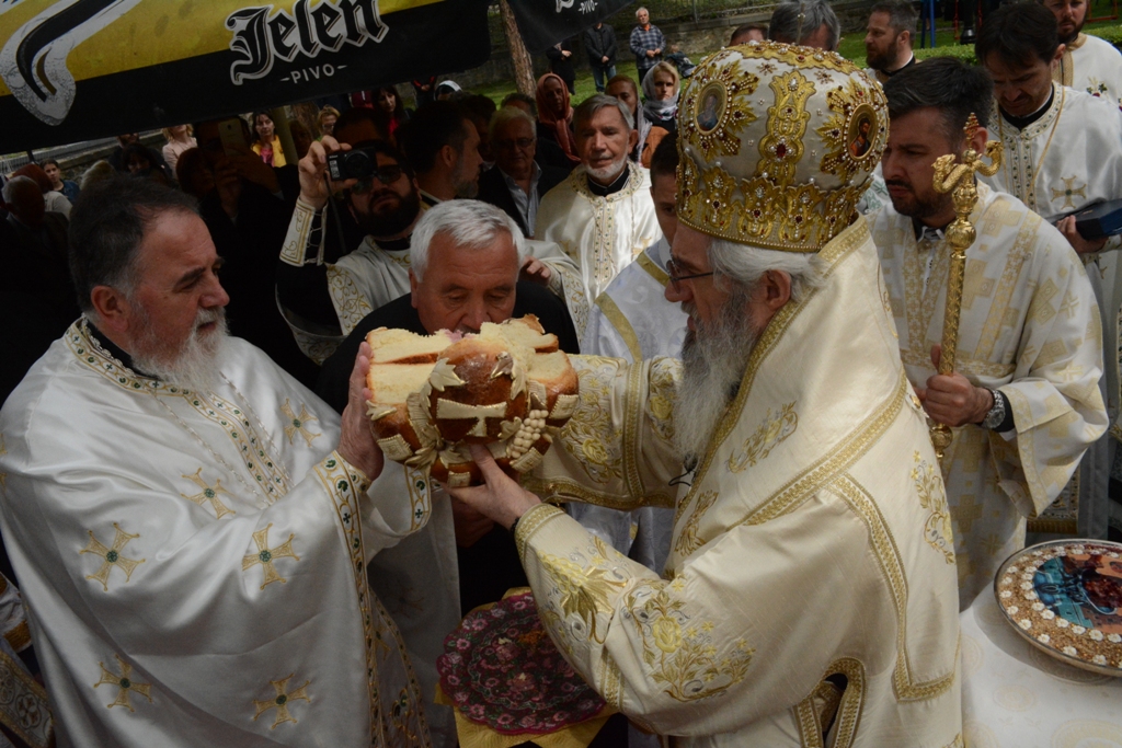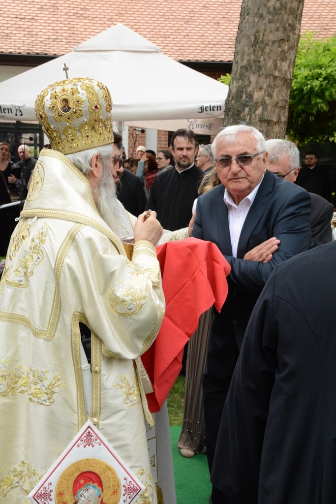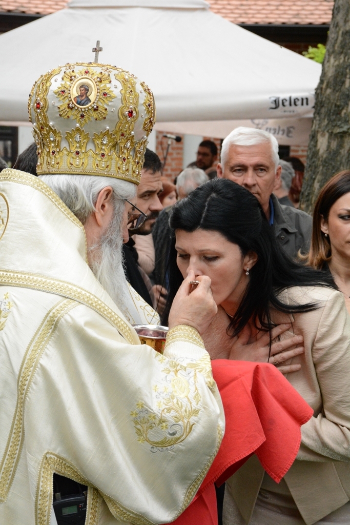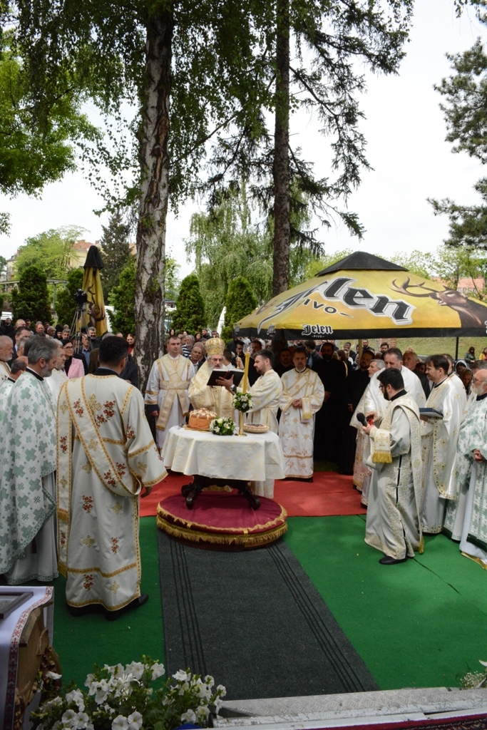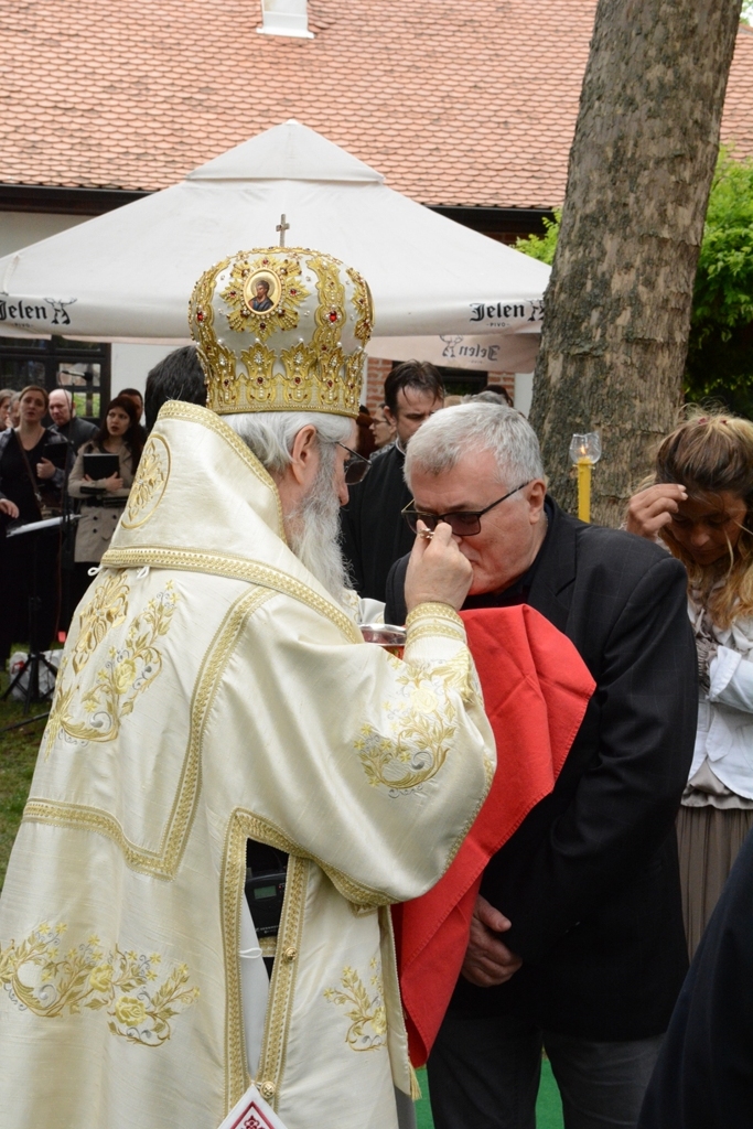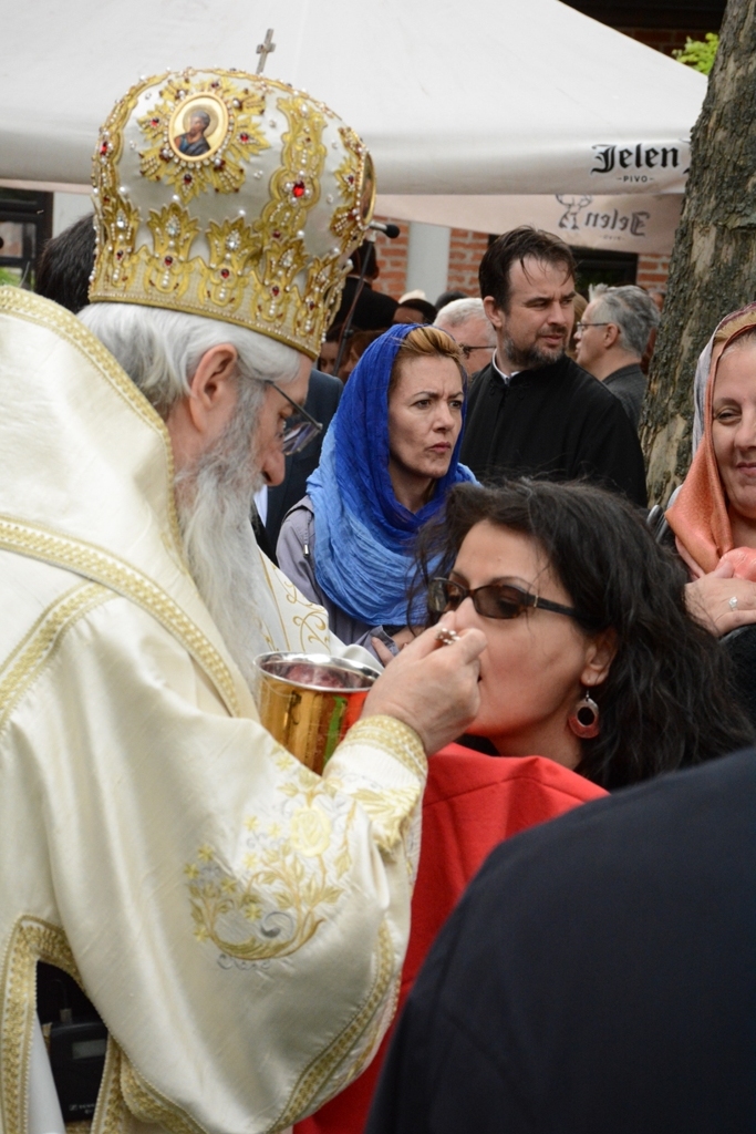 У порти Старе Милошеве Цркве преломљен је славски колач и постављено послужење за све верне. Потом је у хотелу “Шумарице” одржана Трпеза љубави,чиме је прослављање епархијске славе верног народа и свештенства са својим Архијерејем настављено и у поподневним часовима.