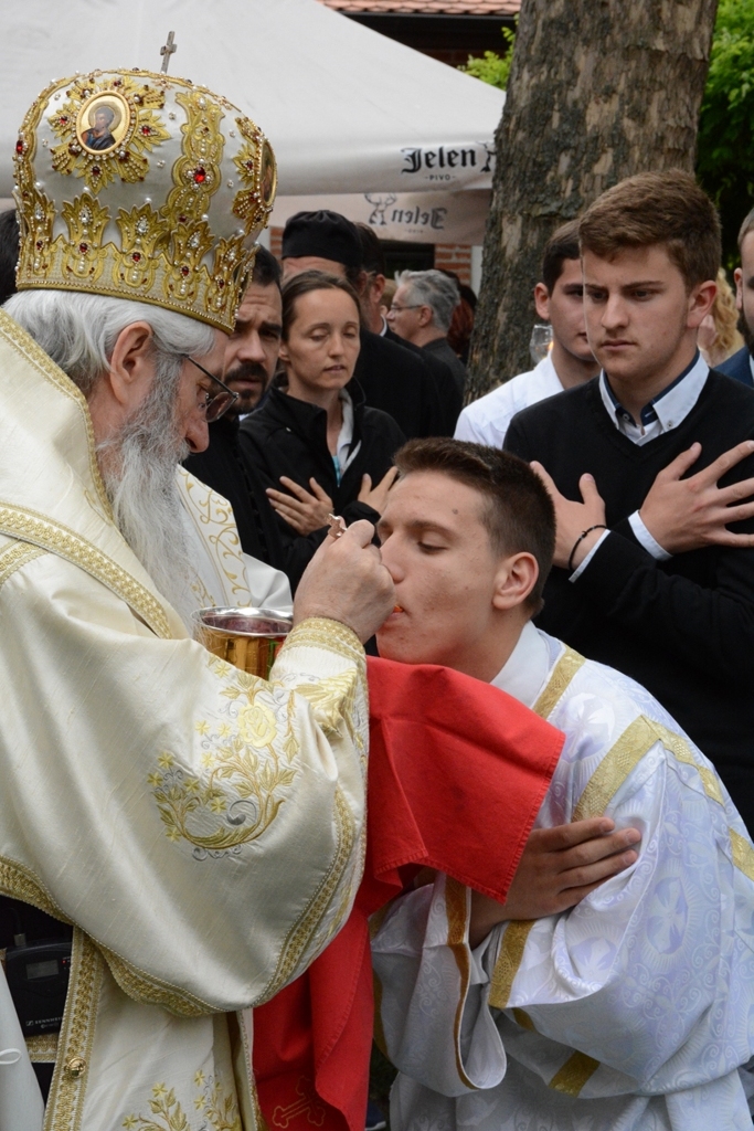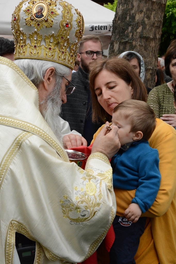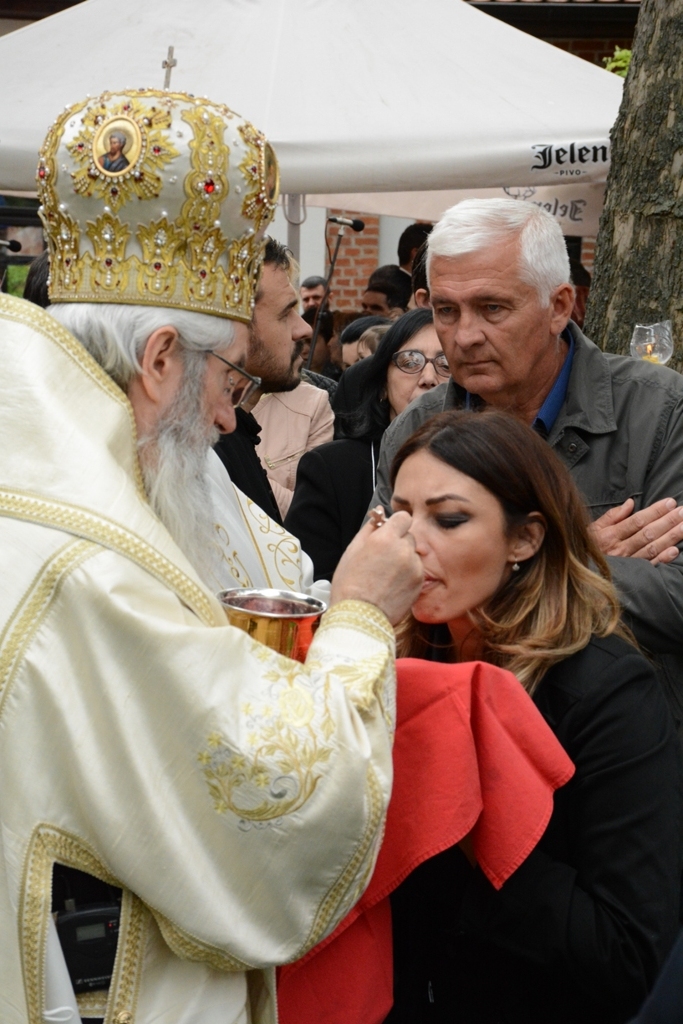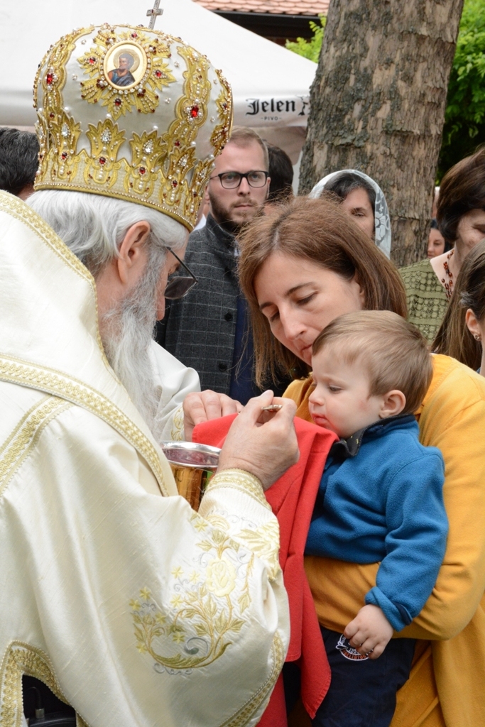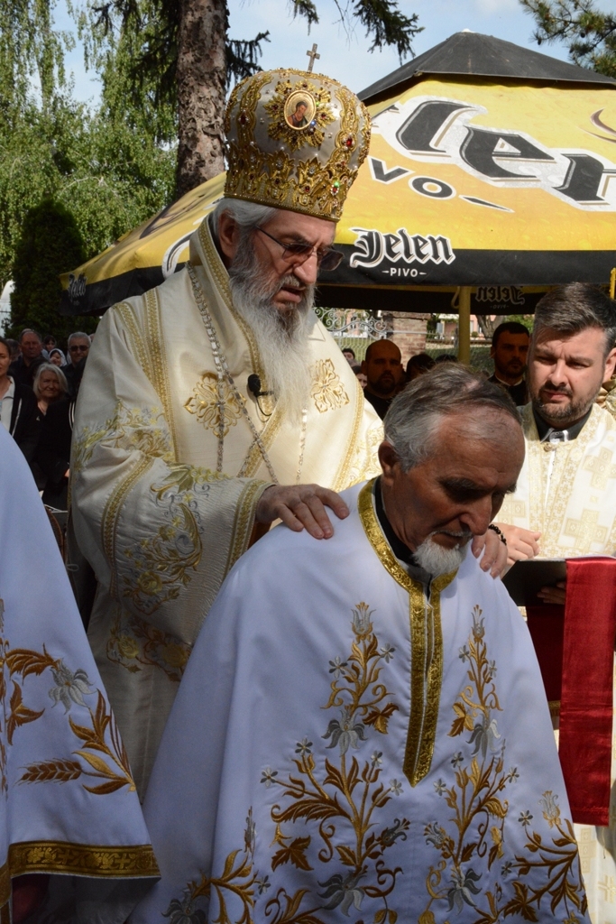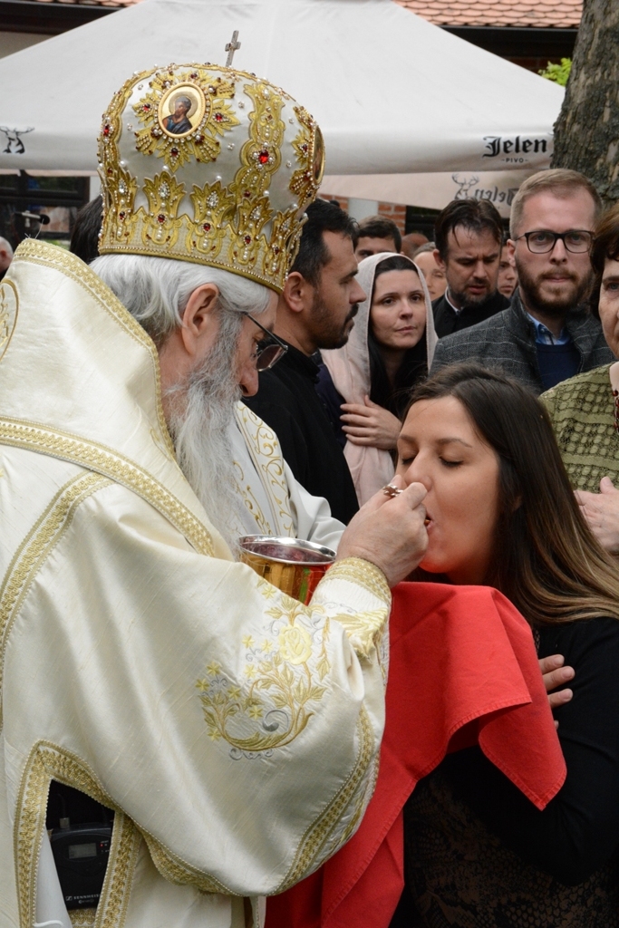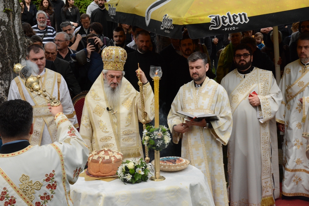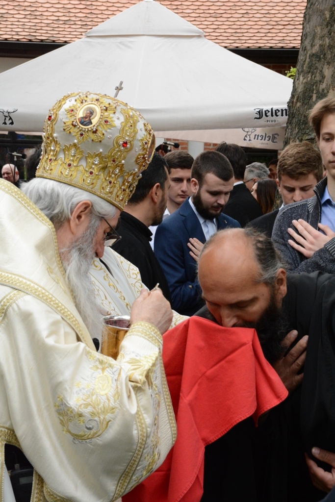 У порти Старе Милошеве Цркве преломљен је славски колач и постављено послужење за све верне. Потом је у хотелу “Шумарице” одржана Трпеза љубави,чиме је прослављање епархијске славе верног народа и свештенства са својим Архијерејем настављено и у поподневним часовима.