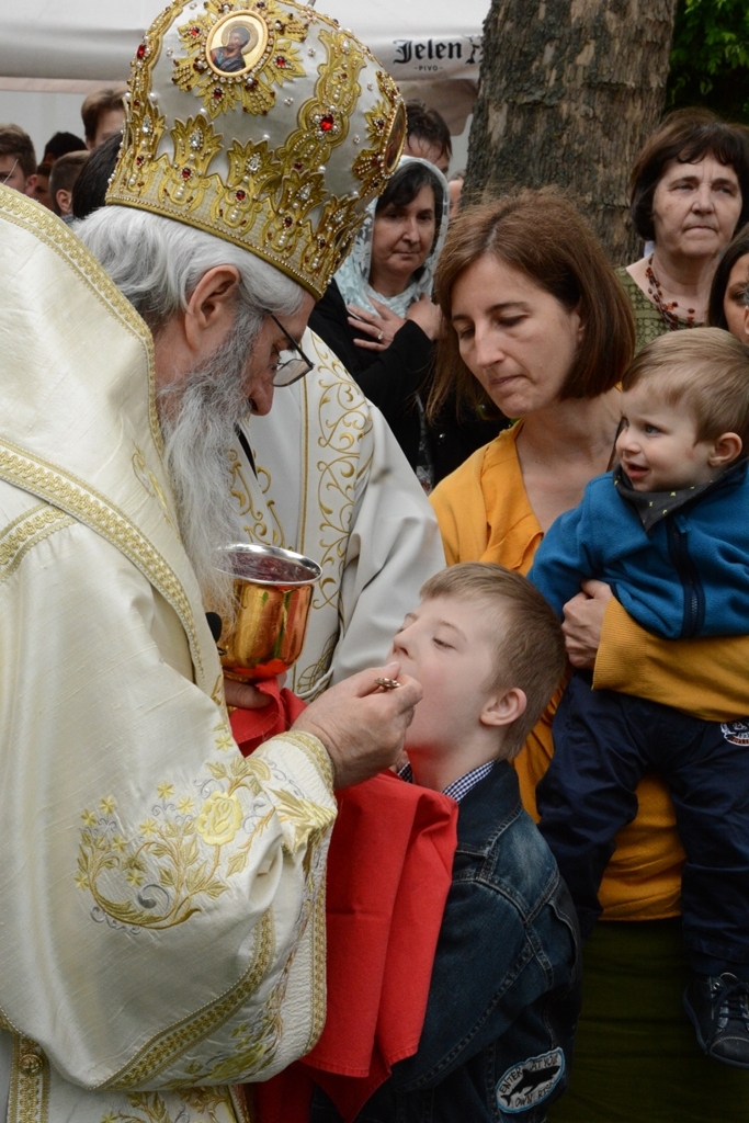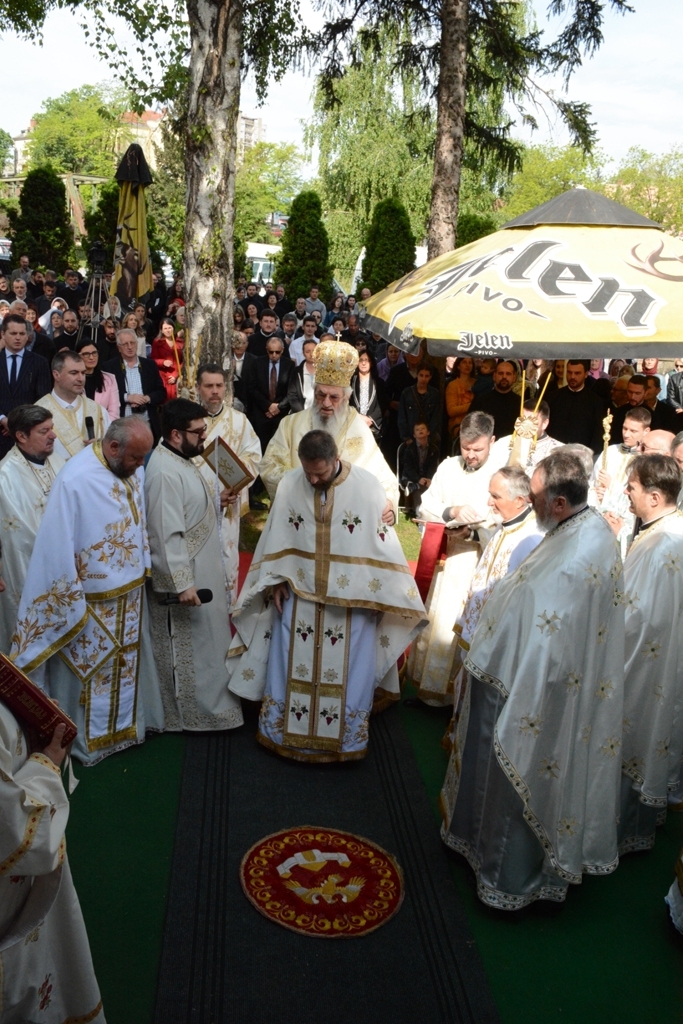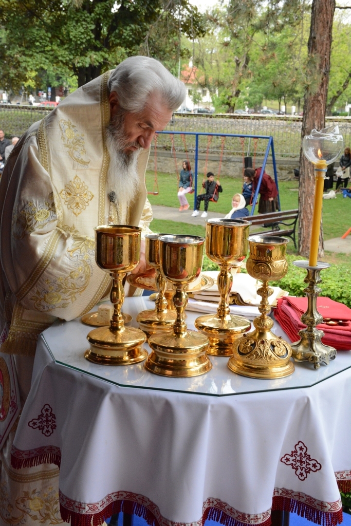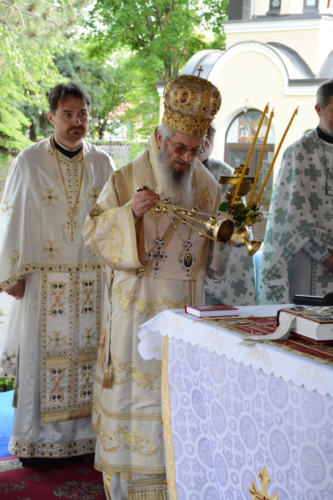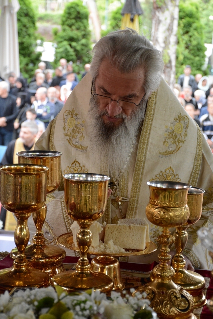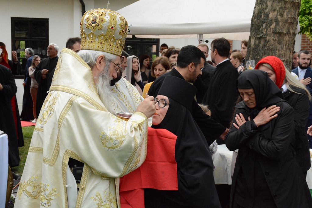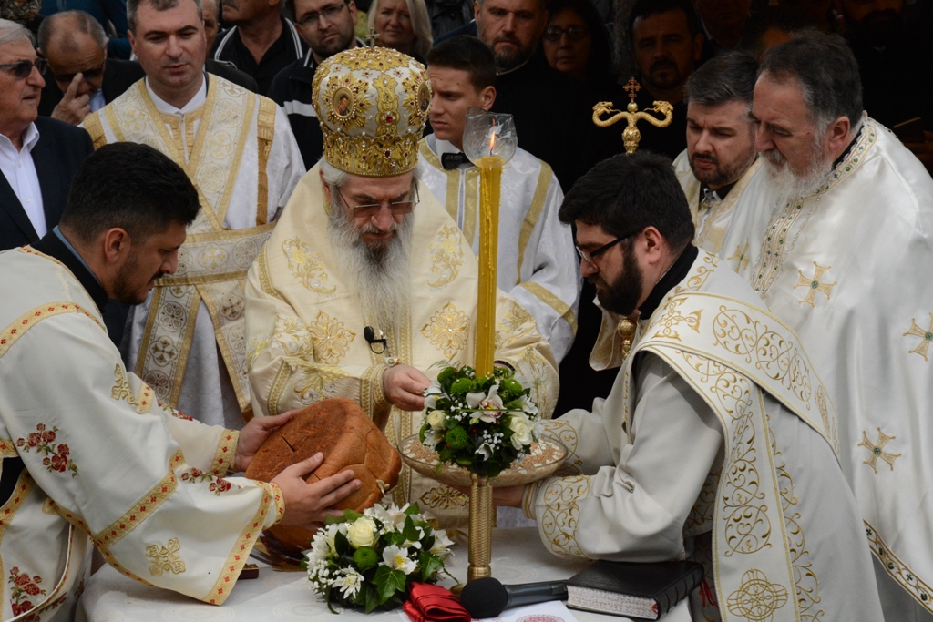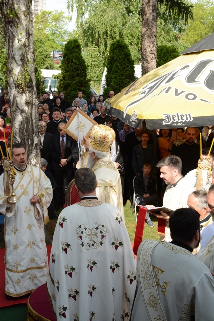 У порти Старе Милошеве Цркве преломљен је славски колач и постављено послужење за све верне. Потом је у хотелу “Шумарице” одржана Трпеза љубави,чиме је прослављање епархијске славе верног народа и свештенства са својим Архијерејем настављено и у поподневним часовима.