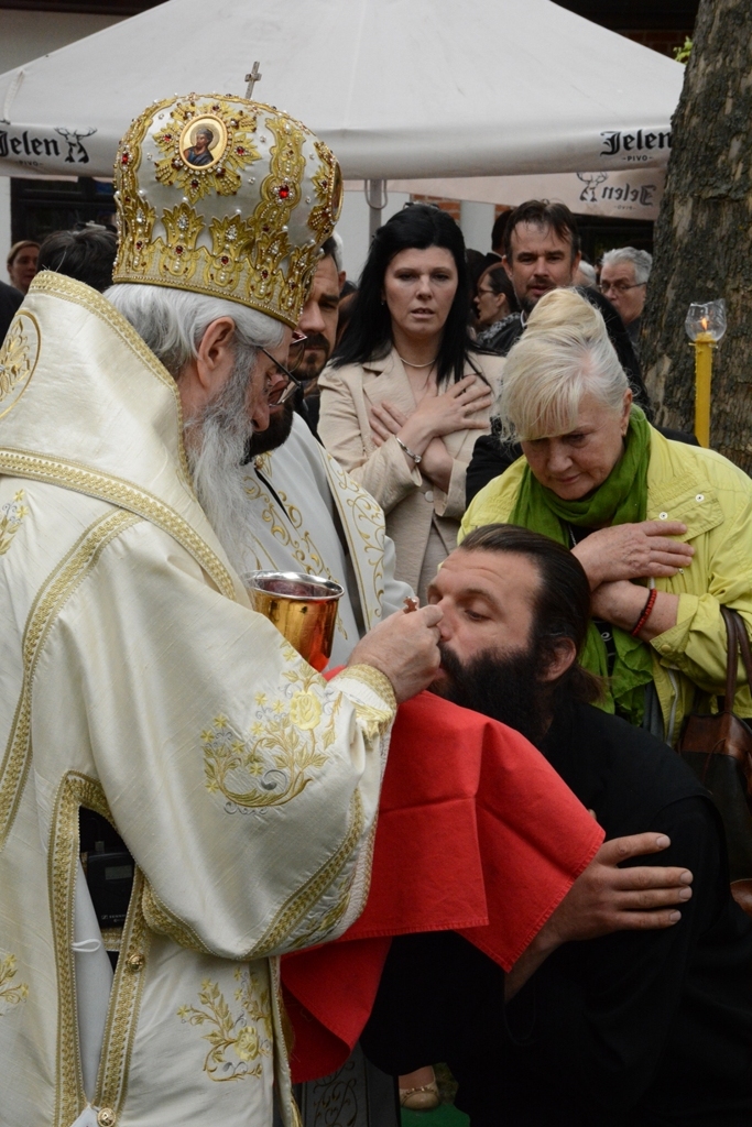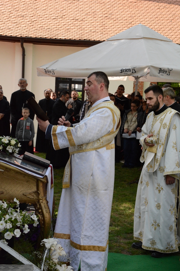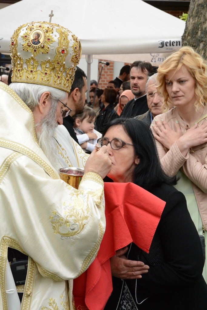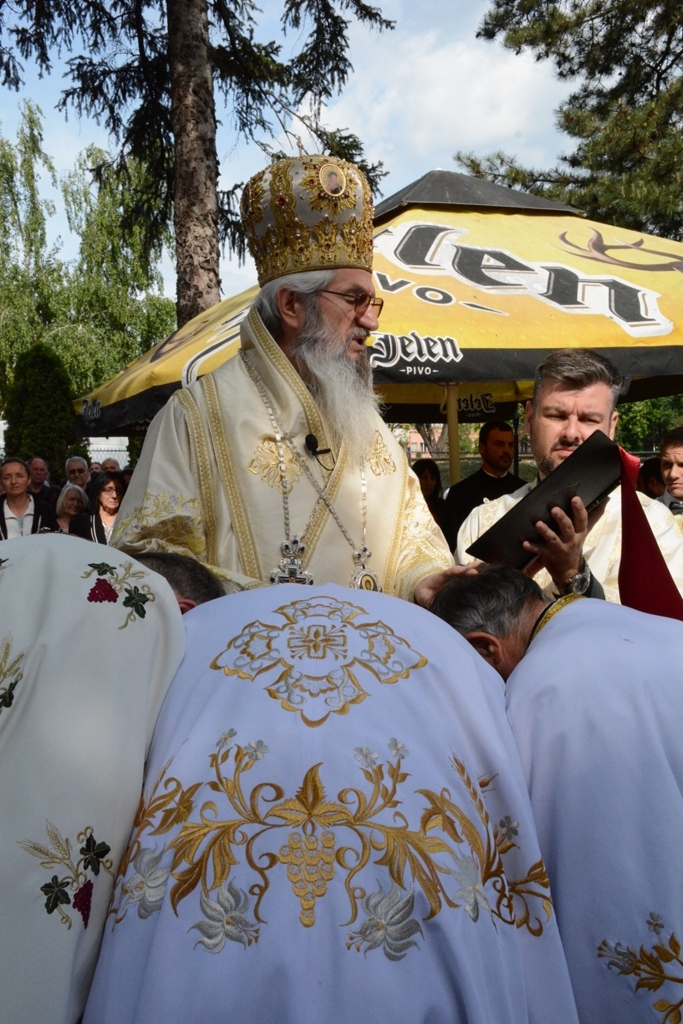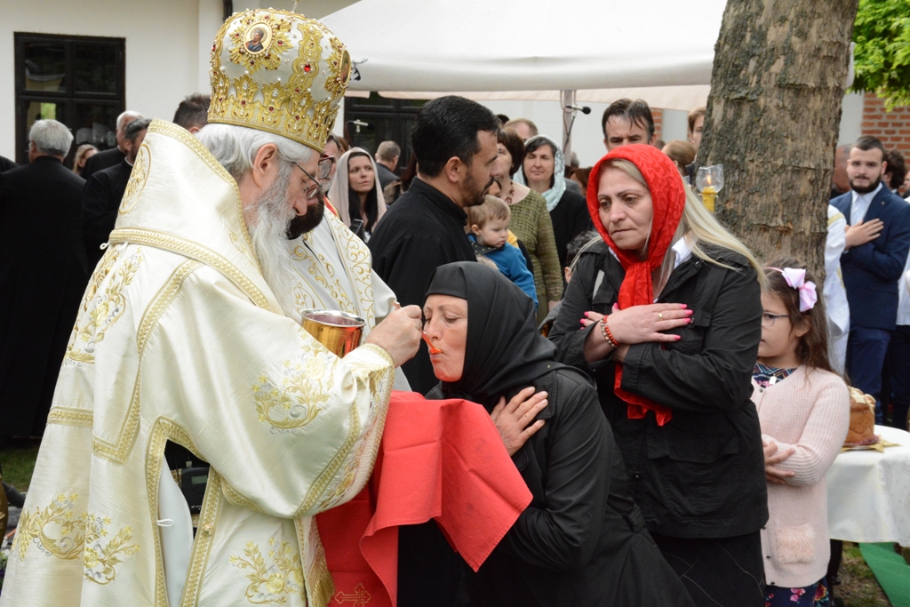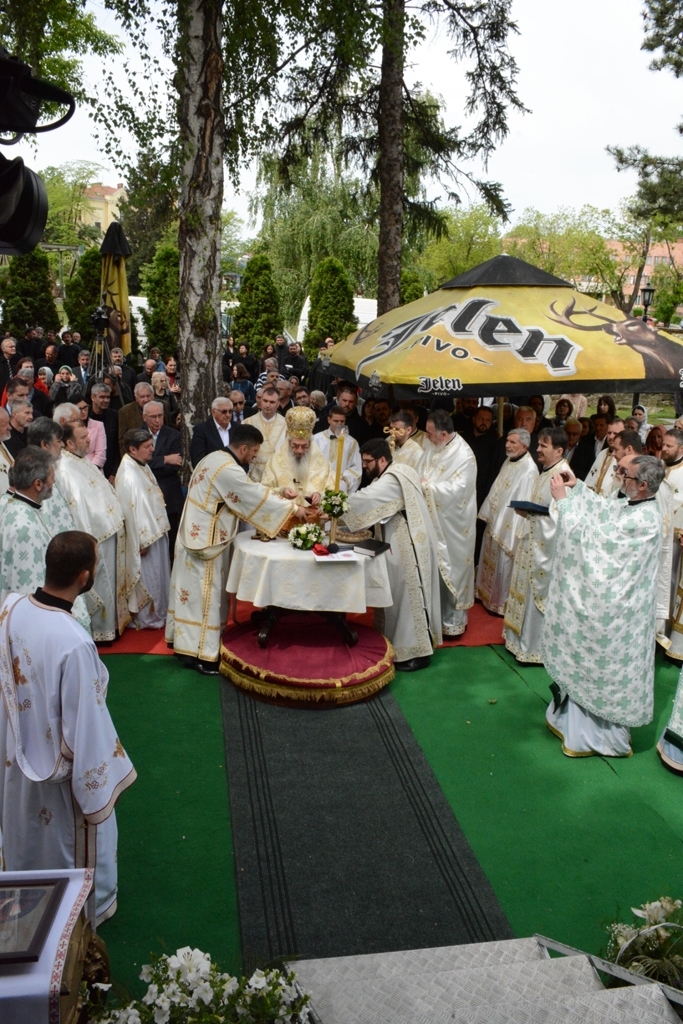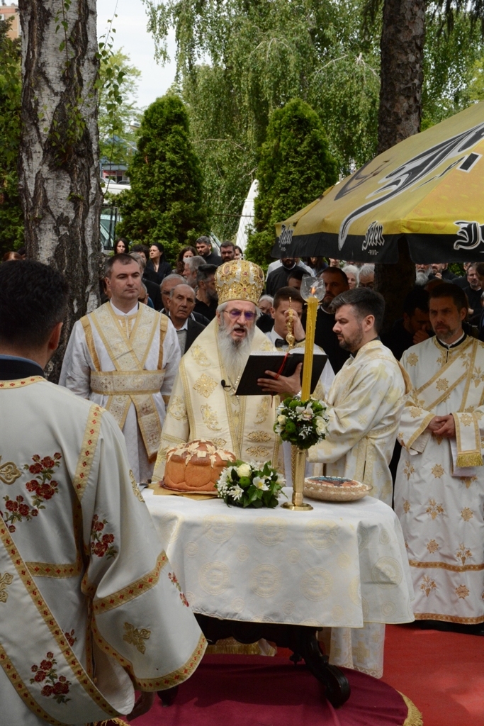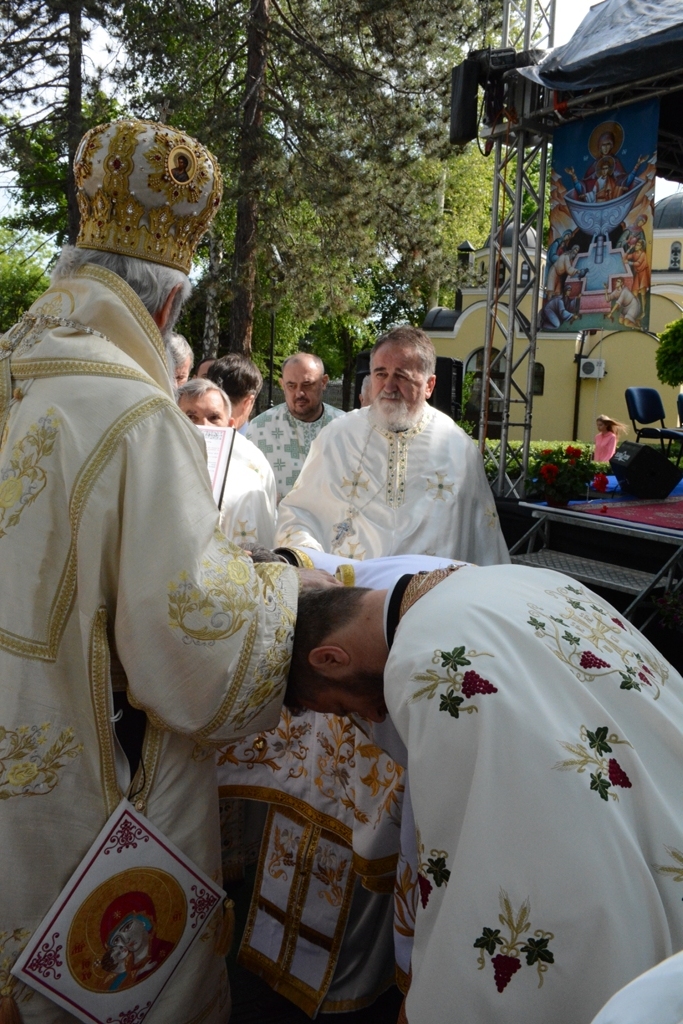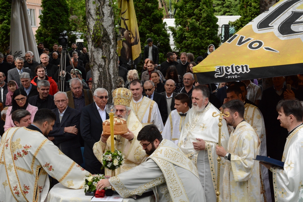 У порти Старе Милошеве Цркве преломљен је славски колач и постављено послужење за све верне. Потом је у хотелу “Шумарице” одржана Трпеза љубави,чиме је прослављање епархијске славе верног народа и свештенства са својим Архијерејем настављено и у поподневним часовима.