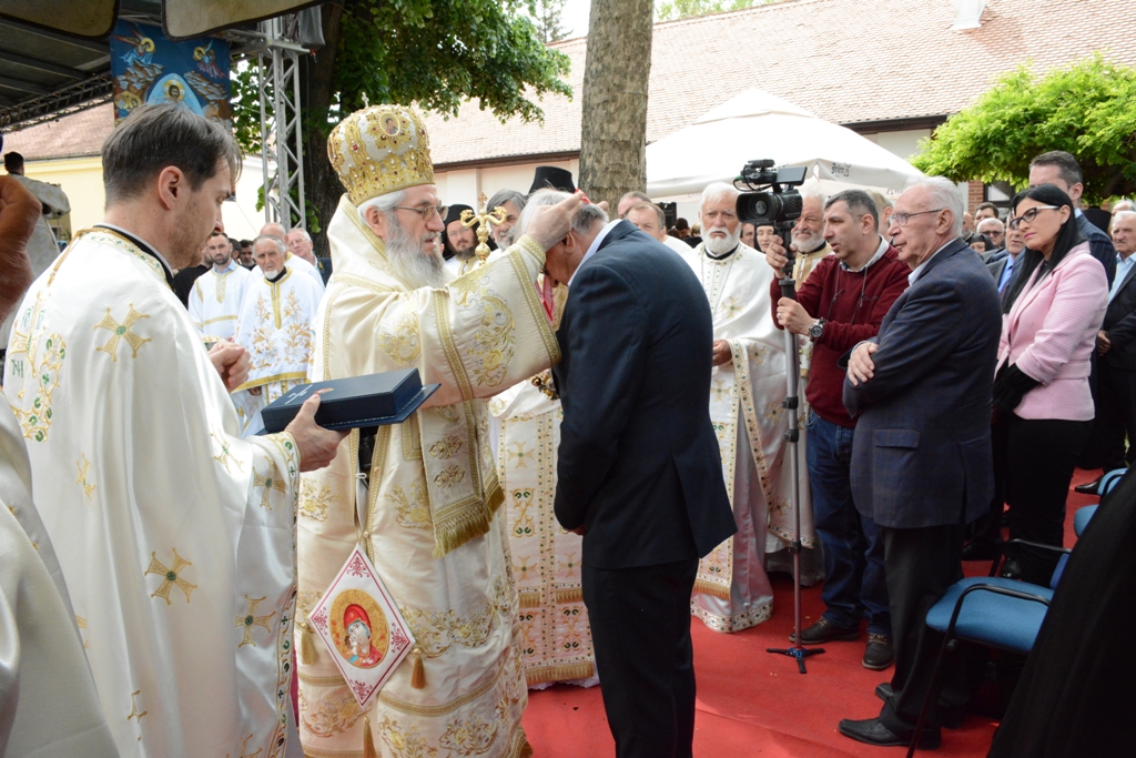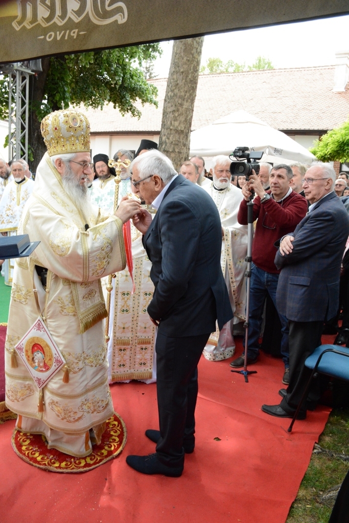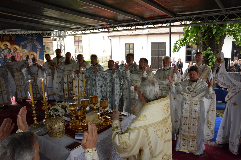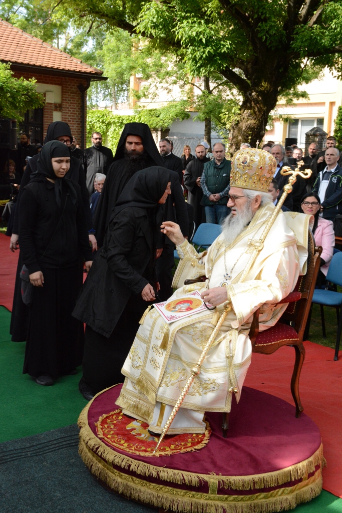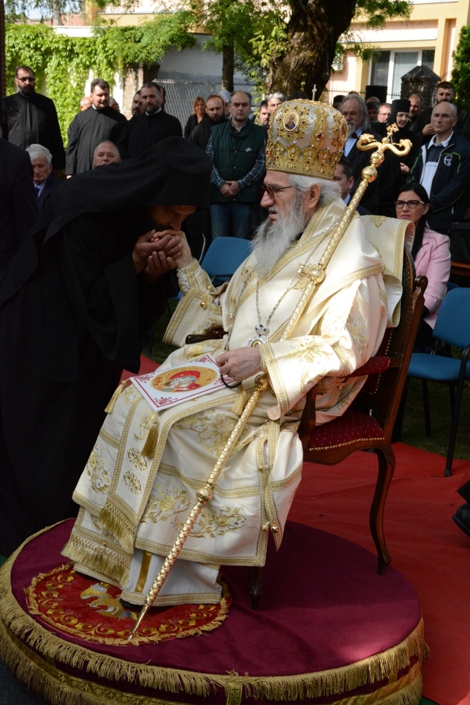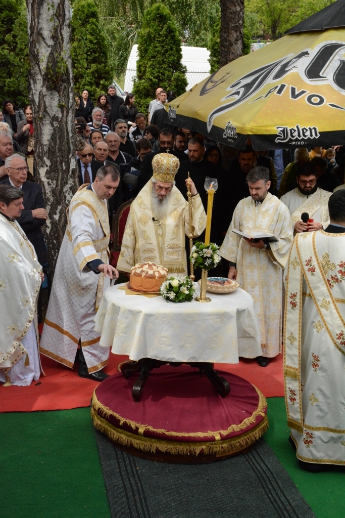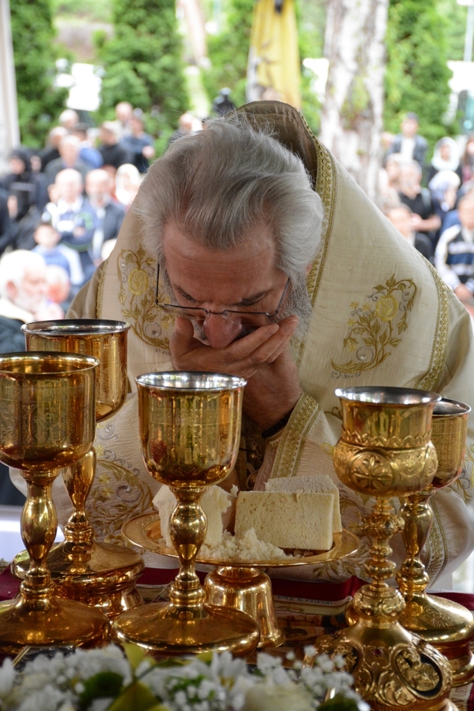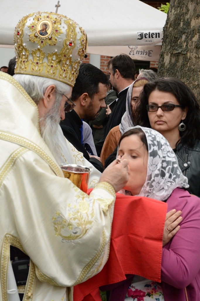 У порти Старе Милошеве Цркве преломљен је славски колач и постављено послужење за све верне. Потом је у хотелу “Шумарице” одржана Трпеза љубави,чиме је прослављање епархијске славе верног народа и свештенства са својим Архијерејем настављено и у поподневним часовима.