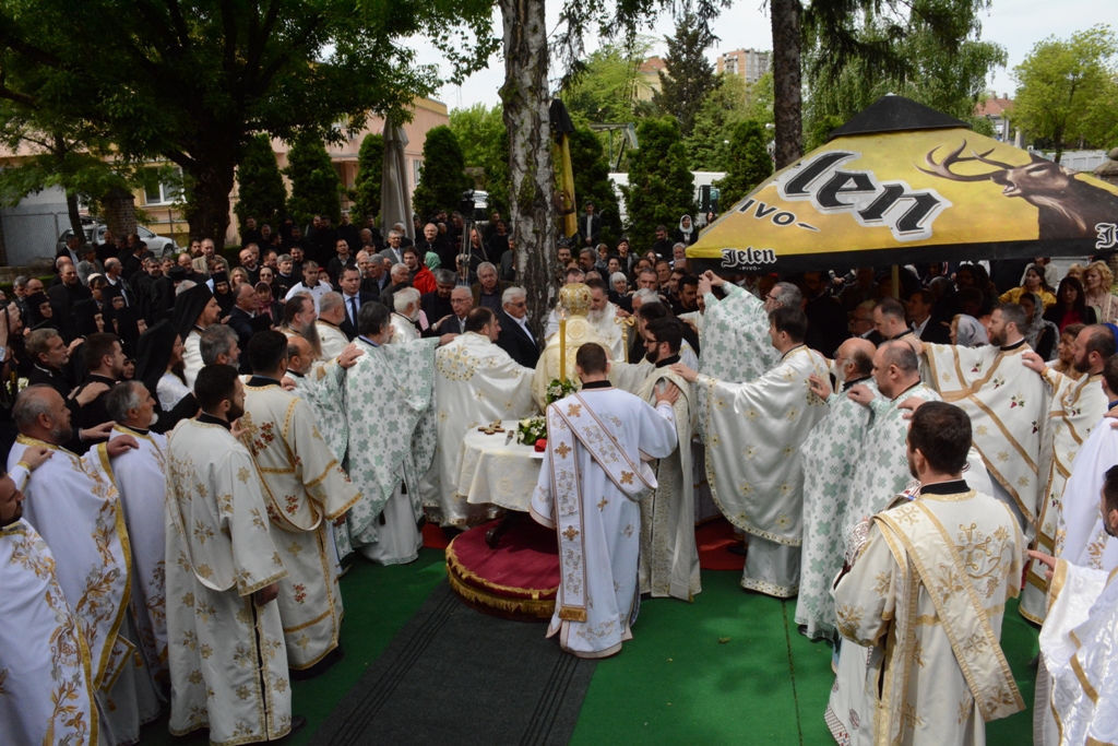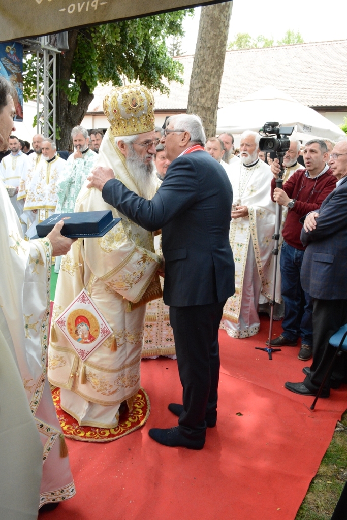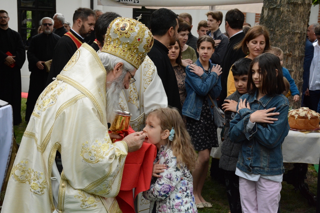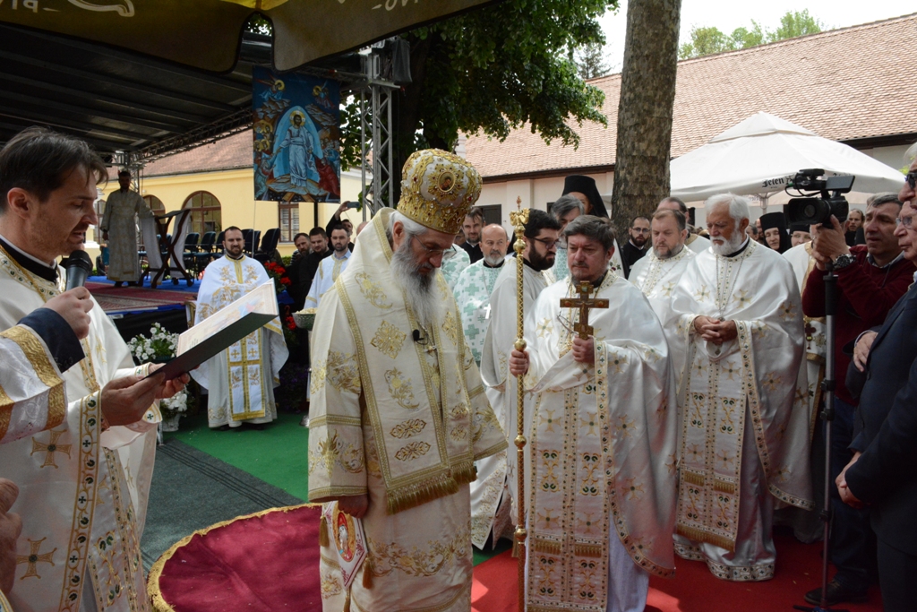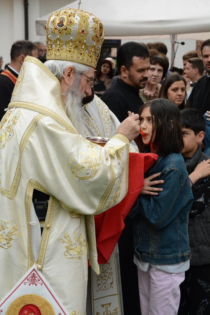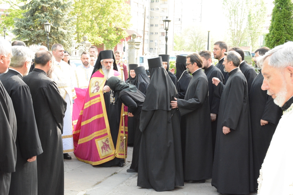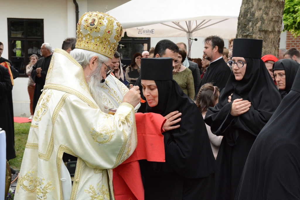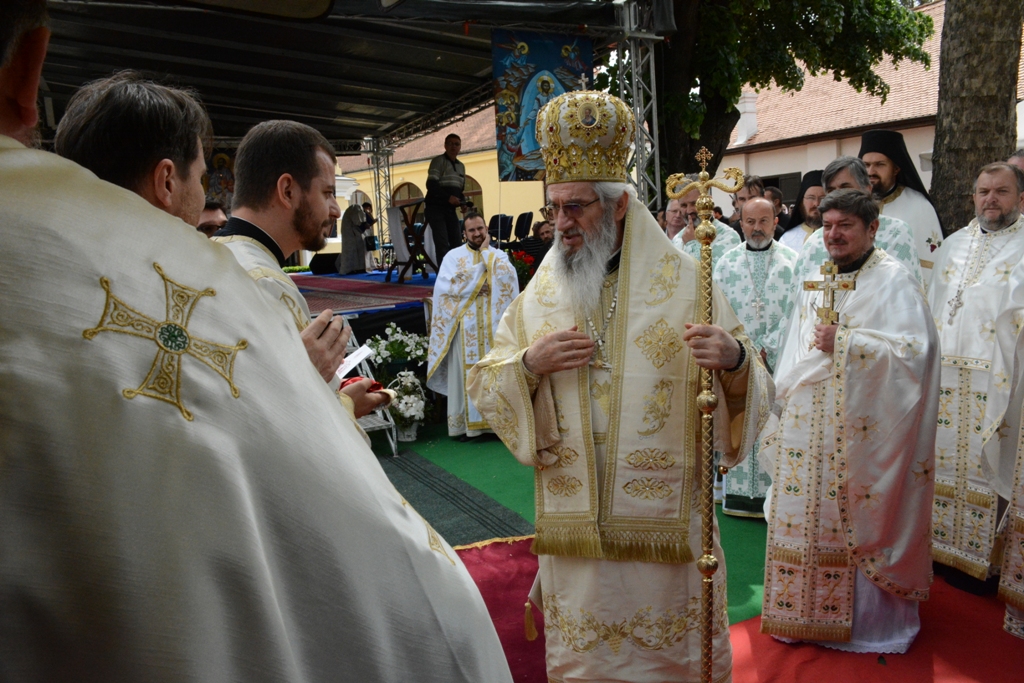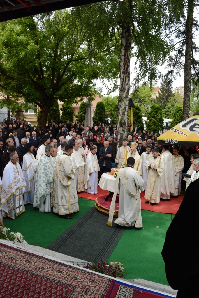У порти Старе Милошеве Цркве преломљен је славски колач и постављено послужење за све верне. Потом је у хотелу “Шумарице” одржана Трпеза љубави,чиме је прослављање епархијске славе верног народа и свештенства са својим Архијерејем настављено и у поподневним часовима.