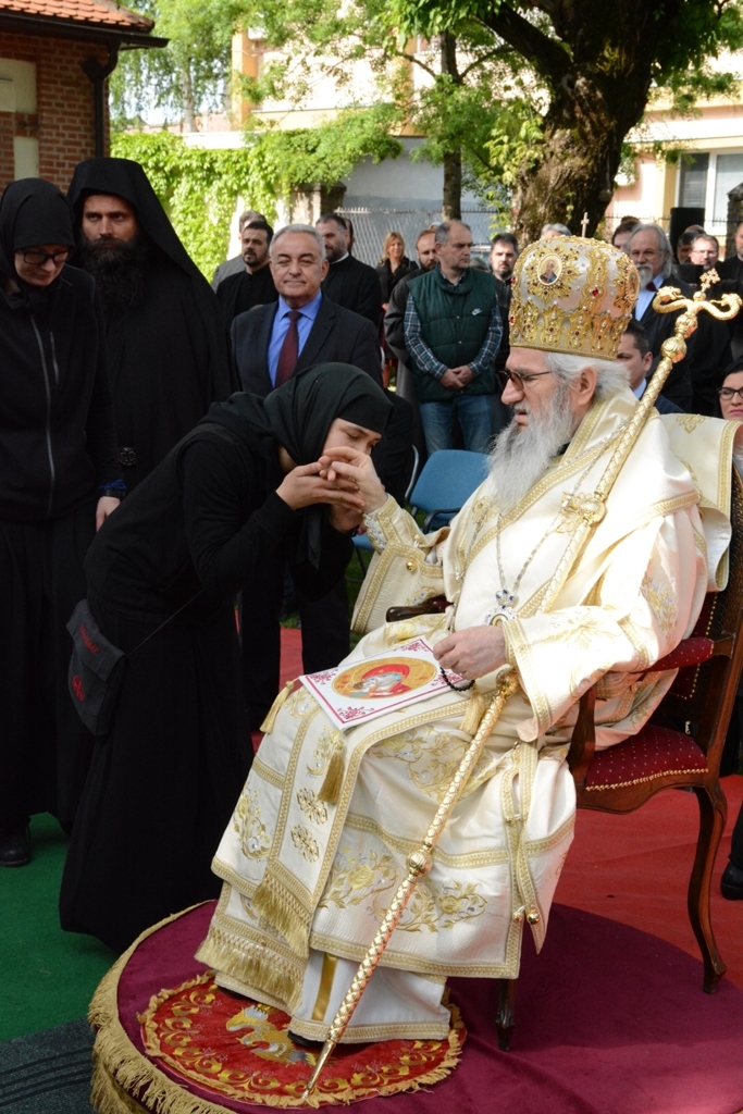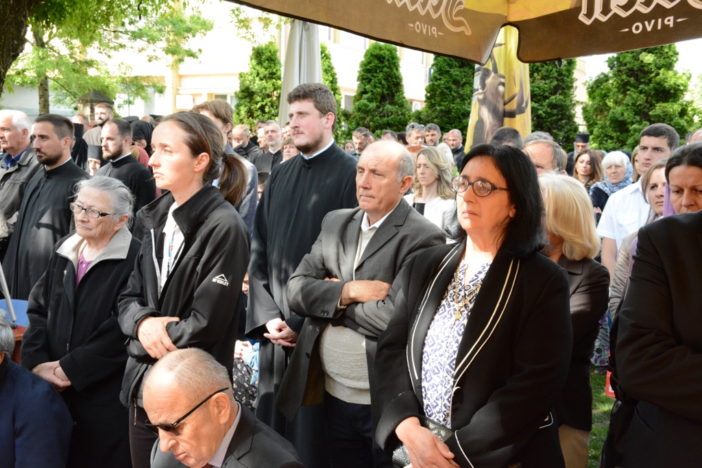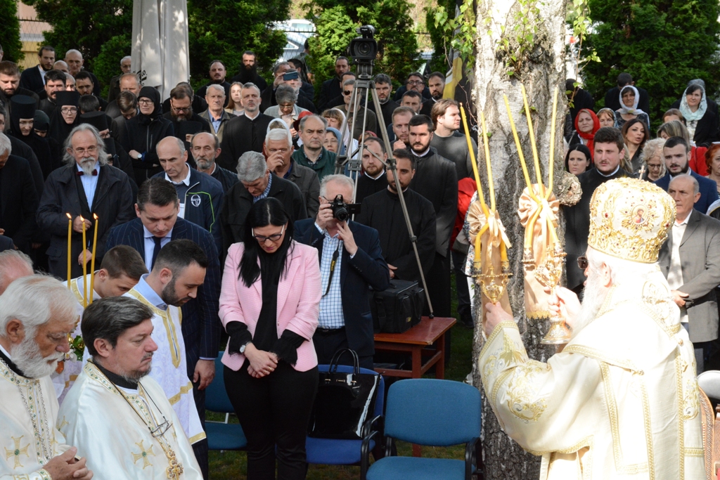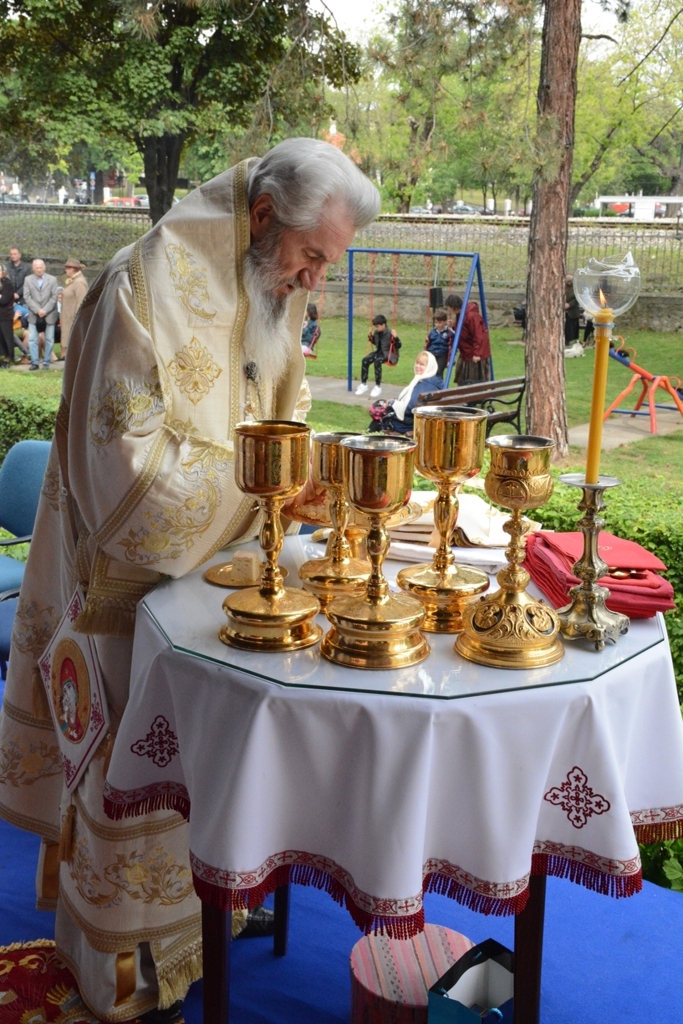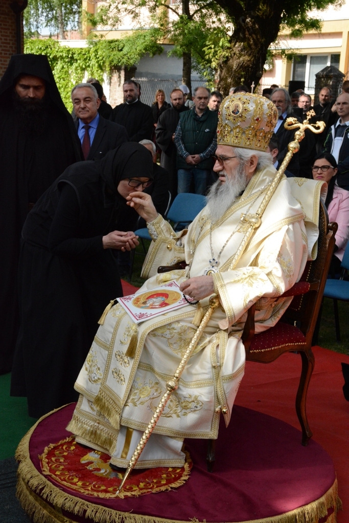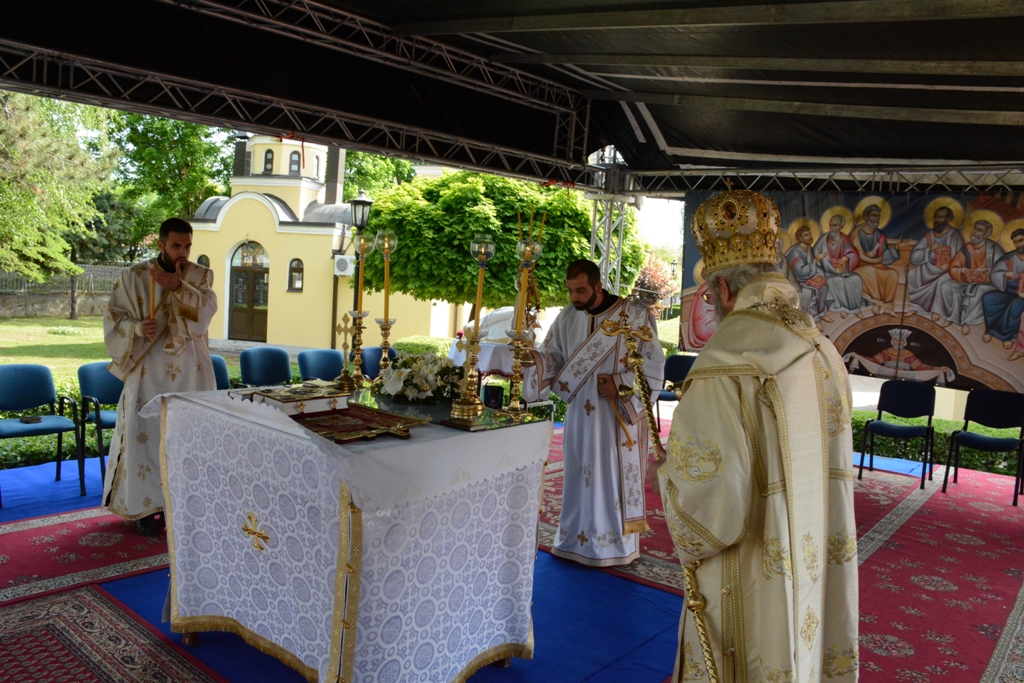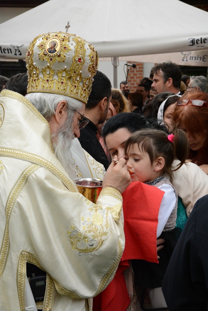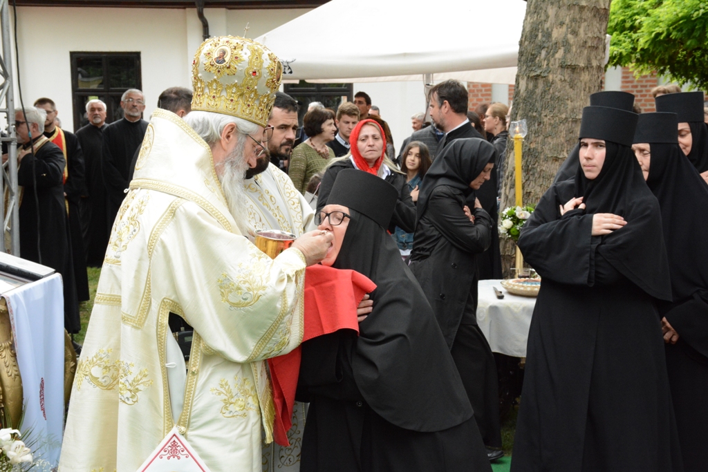 У порти Старе Милошеве Цркве преломљен је славски колач и постављено послужење за све верне. Потом је у хотелу “Шумарице” одржана Трпеза љубави,чиме је прослављање епархијске славе верног народа и свештенства са својим Архијерејем настављено и у поподневним часовима.