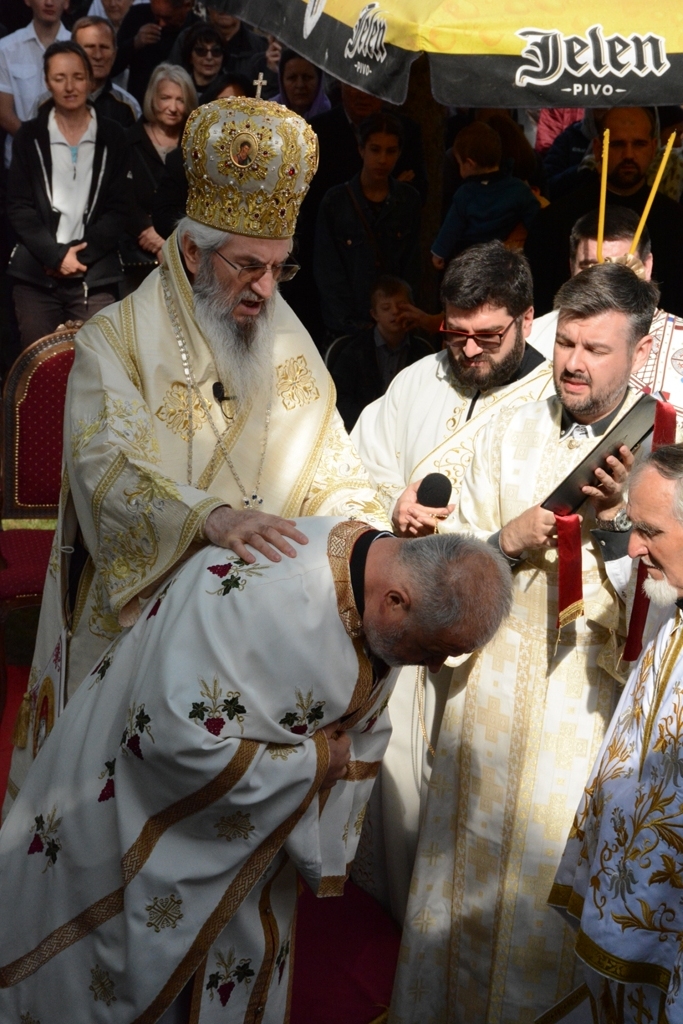 Након Малог Входа, Владика Јован је због труда и залагања у изградњи Тела Христовог благоизволео да протонамеснике Мирослава Исаиловића, Младенка Голића и Сашу Антонијевића рукопроизведе у чин протојереја. Потом је протојереја Драгана Васиљевића узвисио достојанством ставрофора доделивши му право ношења напрсног крста. Истом приликом је и пароху лужничком Гојку Марковићу доделио чин протонамесника. Правом ношења црвеног појаса одликовани су свештеници Мирко Шиљковић, Слободан Савковић, Александар Ђорђевић и Милош Ђурић као и ђакон Урош Костић. Орденом Светих новомученика крагујевачких одликован је г. Миленко Марјановић.