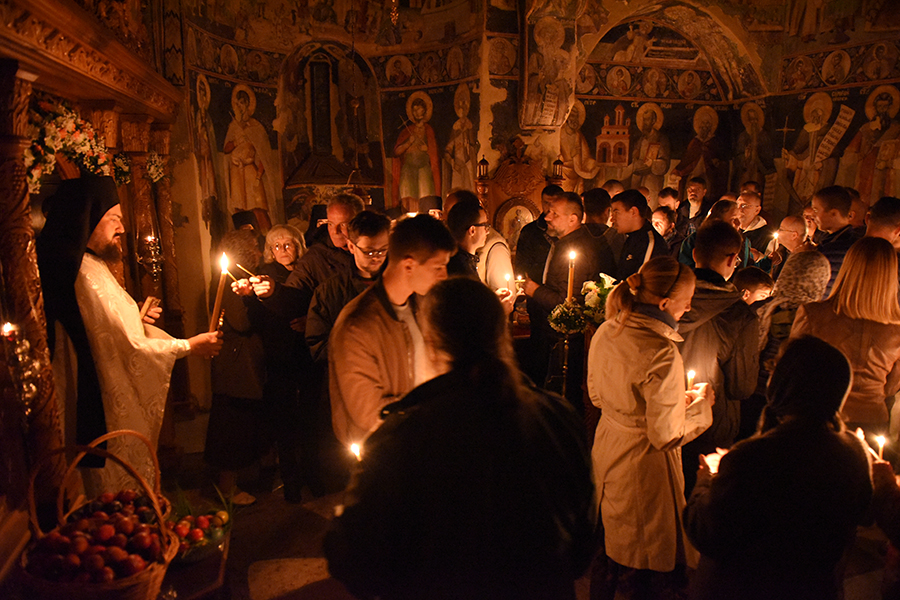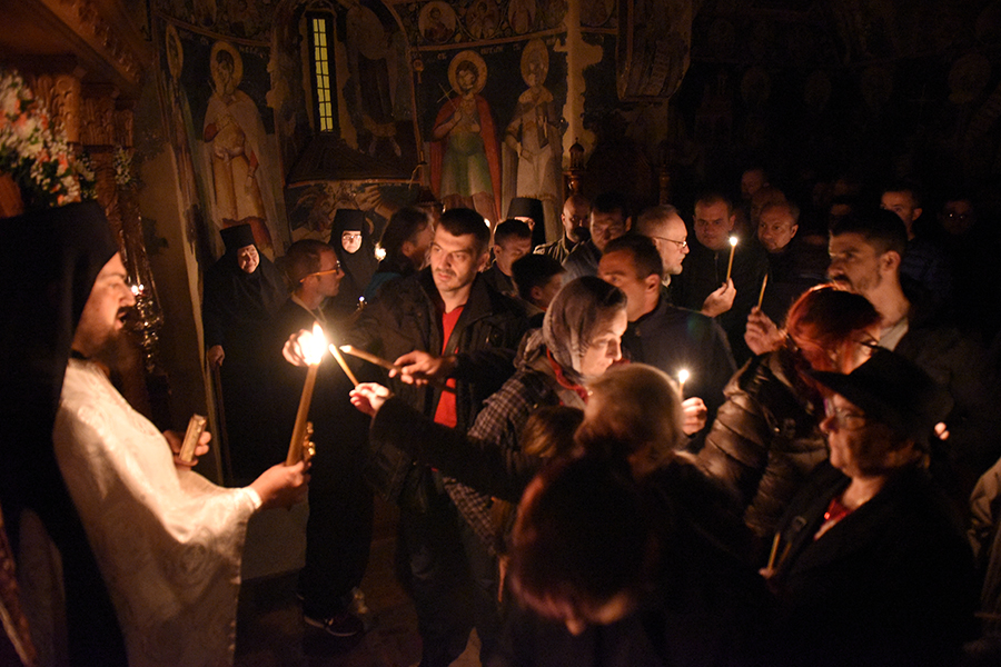 Овако примајући незалазну светлост од презвитера показујемо да је сваки храм на Пасхалном јутрењу исти као и јерусалимски храм. Литијом је кренуо ток најрадоснијег празника: Пасхално јутрење са каноном Св. Јована Дамаскина, пасхалне стихире током којих су присутни целивали Еванђеље, Васкршње слово Св. Јована Златоустог; да би Васкршњу ноћ крунисали Светом Литургијом и у њој сви окусили од Пасхе Господње.
