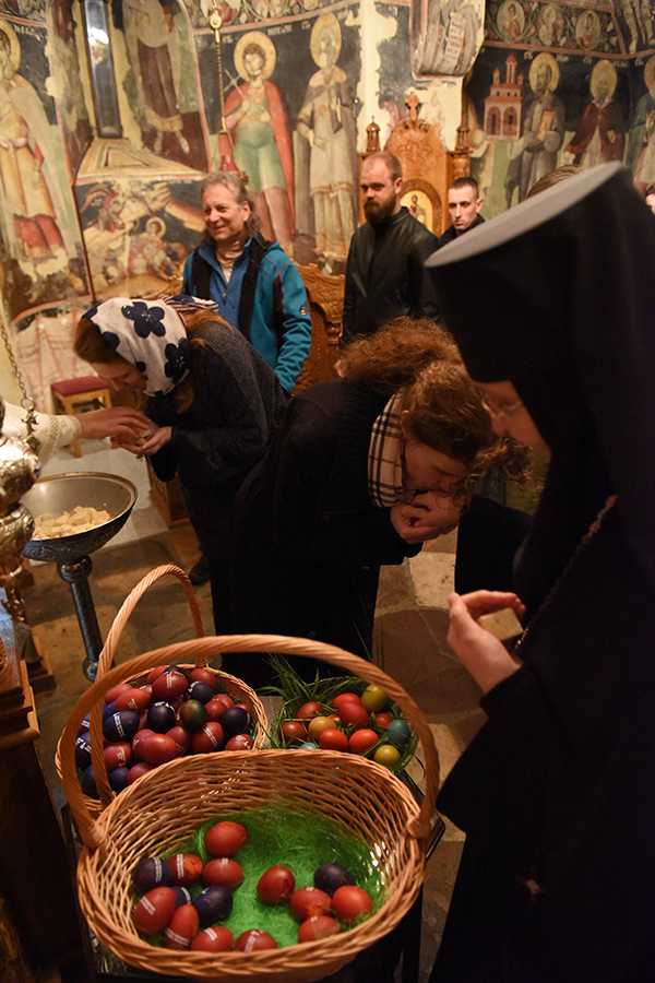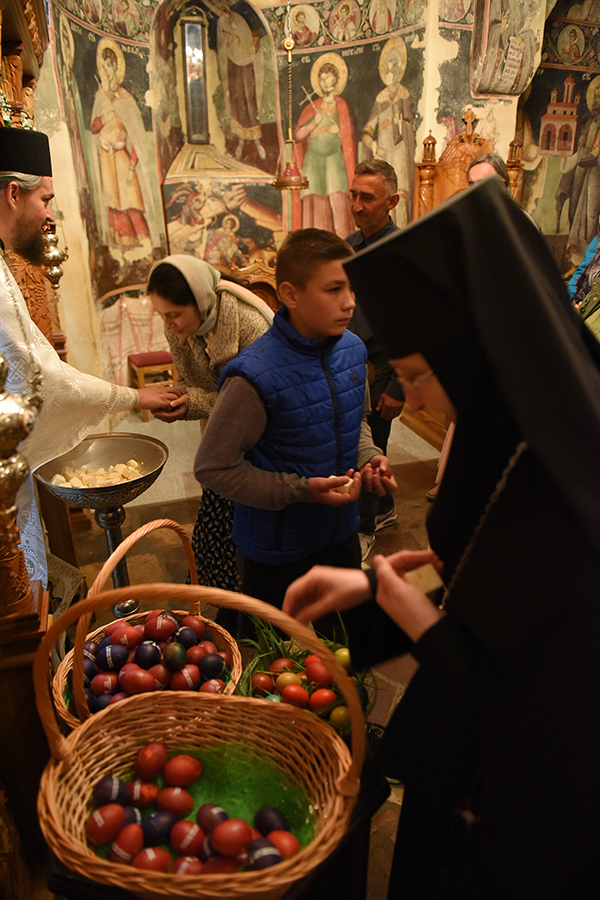 Након Литургије, игуманија Драче мати Јелена поделила је васкршња јаја, која су претходно благосиљана. Сада већ традиционално, седму Пасху заредом, уследио је ватромет који манастир организује заједно са верним народом. У манастирском конаку уз послужење сви су једни другима честитали празник најрадоснијим поздравом: Христос Васкрсе! Ваистину Васкрсе!