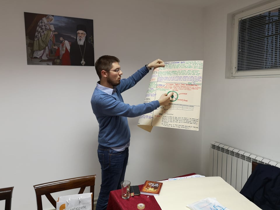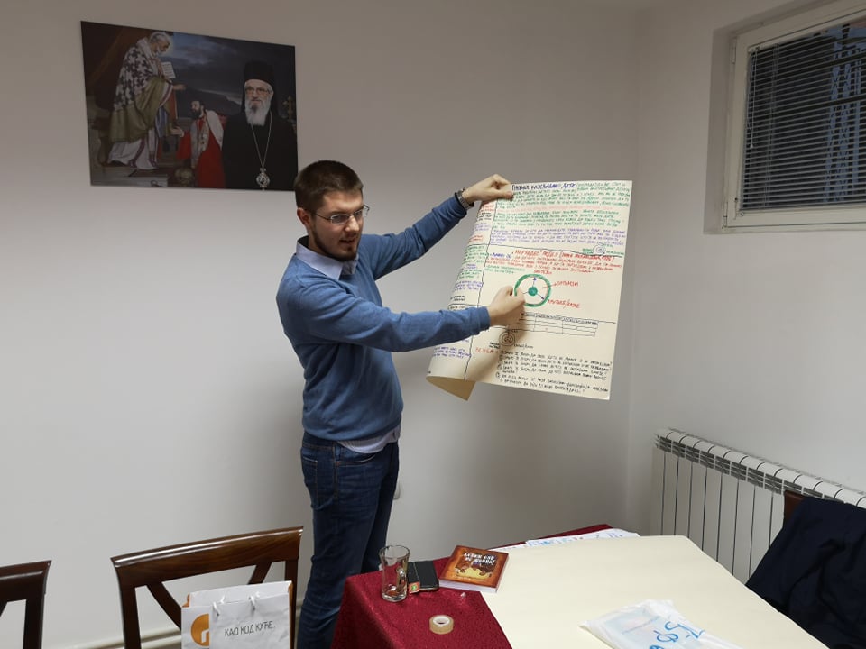 У понедељак, 13. маја 2019. год., у парохијском дому младеновачког Храма одржана је шеста радионица Породичног саветовалишта, коју је водио породични едукатор, студент логопедије и едукант псхиотерапије – трансакционе анализе господин Богдан Марковић. Вечерашњи сусрет био је посвећен важној теми у процесу васпитања – васпитним стиловима родитеља.