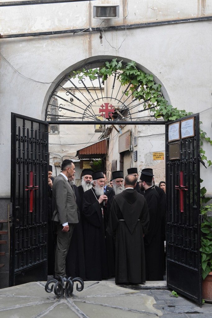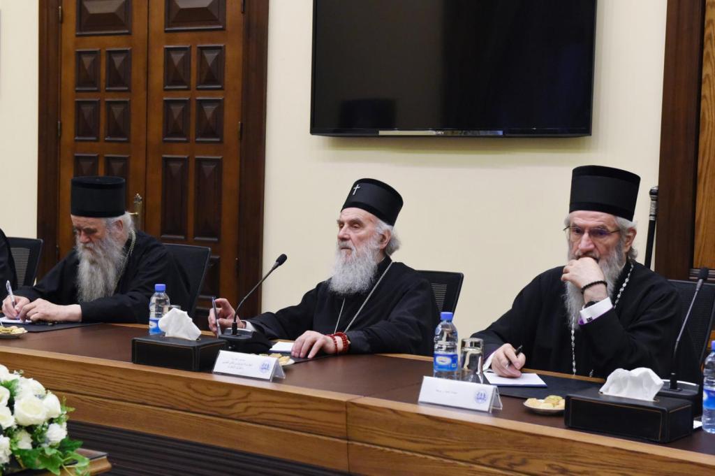 У Вама, Ваше Блаженство, у архијерејима Антиохијске Цркве, у монасима, свештенству и верном народу Ваше Патријаршије, видимо исти крст страдања, прогона, расељавања и мучеништва, који је познат нашем народу, а који Ви изнова, пред целом Васељенском Црквом, данас са трпљењем носите и славу Васкрсења пројављујете.