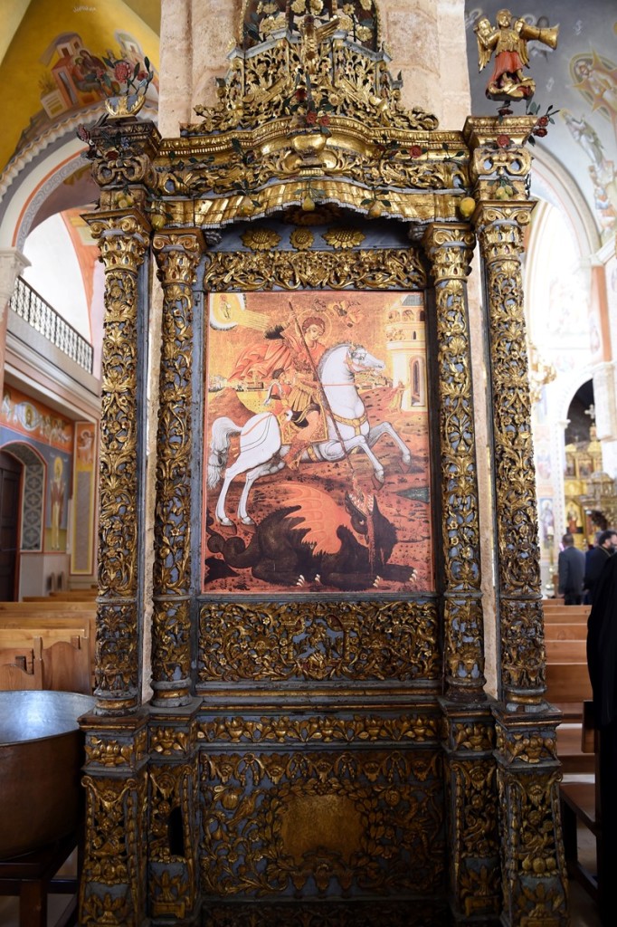 Из Председникове палате делегација Српске Православне Цркве упутила се ка Светогеоргијевском саборном храму Митрополије бејрутске у центру града. Ту нас је дочекао крстоносни протопрезвитер Нектарије Хаиралам, старешина храма, и у кратким цртама изложио историју те светиње, назвавши је Мајком црквом града Бејрута, будући да је основана још у четвртом веку. Катедрала је више пута рушена и обнављана. Занимљив податак је и тај да је Свети Роман Слаткопојац једно време певао у том храму и из њега се упутио у Цариграду. Храм има три олтарске апсиде, тј. три престола, централни и по један мањи са северне и јужне стране. Централни је посвећен Светом великомученику и победоносцу Георгију, северни Светом пророку Илији, а јужни Светом оцу Николају Мирликијском. За време грађанског рата (1975. године) широм Либана је рушено, а највише у Бејруту, па је и катедрала Светог Георгија порушена до темеља, као и све зграде у ближој и даљој околини. Главне и најжешће борбе водиле су се око катедрале. Већина икона и део иконостаса украдени су. Запаљени су делови иконостаса из 18. века. Реконструкција је отпочела 1994. године и после седамнаест месеци ископавања откривени су многи археолошки слојеви који су омогућили да се установи историјски развој изградње цркве, као и читаве околине, у последњих неколико векова. Наредне године Митрополит бејрутски Илија објавио је планове за обнову ратом разрушене катедрале. Прва фаза рестаурације почела је 1998. године, под надзором комисије на чијем челу је био Гасан Туени. Звона катедрале огласила су се поново 15. децембра 2003.