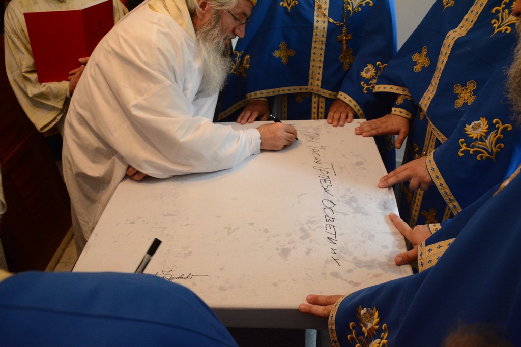 Након дочека Епископа верни народ са свештенством је ступио у нову капелу посвећену Светом Јоаникију у склопу конака манастира, коју је Епископ освештао и у олтарски престо положио делић моштију Светог великомученика косовског кнеза Лазара, а потом освештао и иконостас капеле. По освећењу капеле Епископ се обратио верницима и изразио је захвалност свима који су узели учешћа у изградњи и опремању ове капеле.