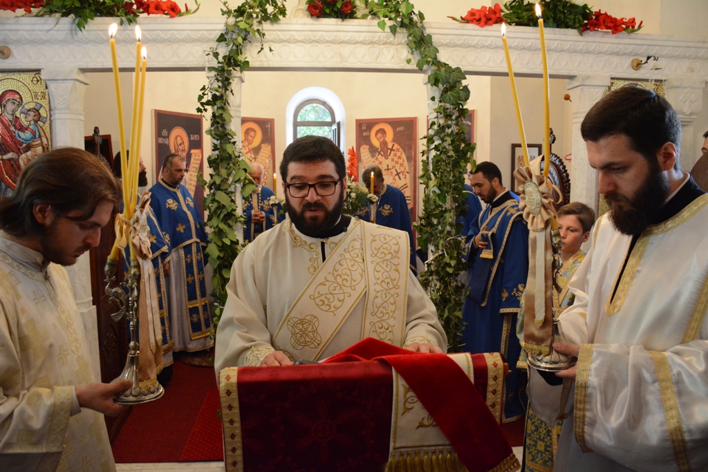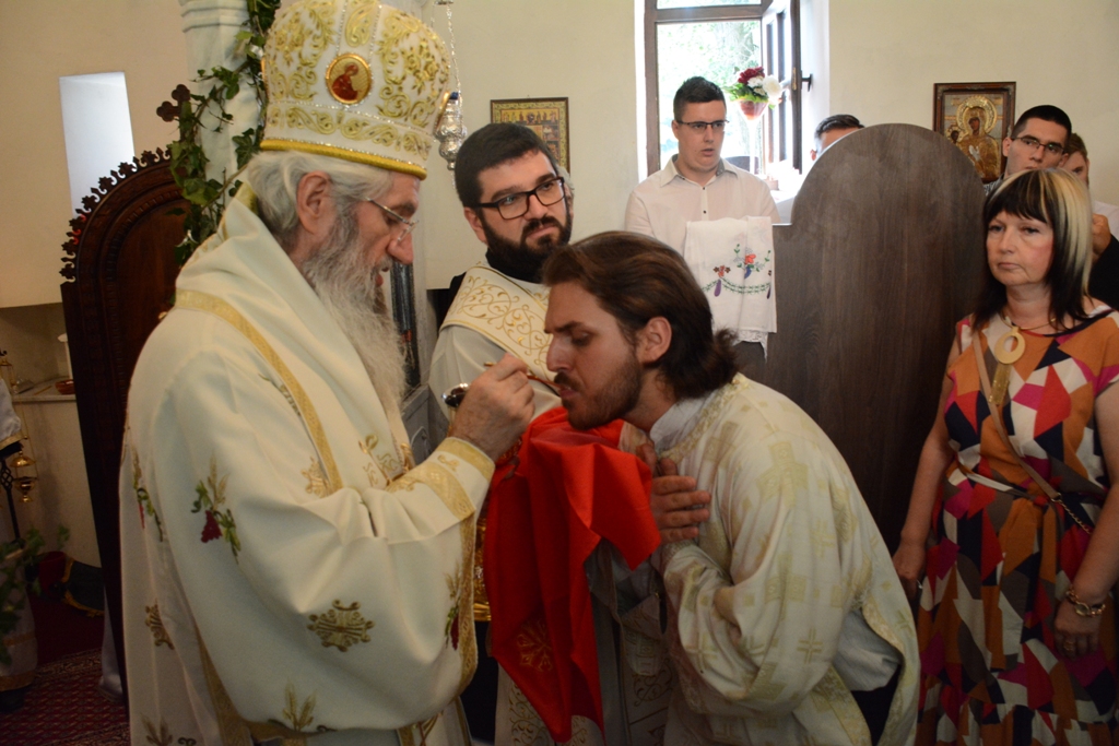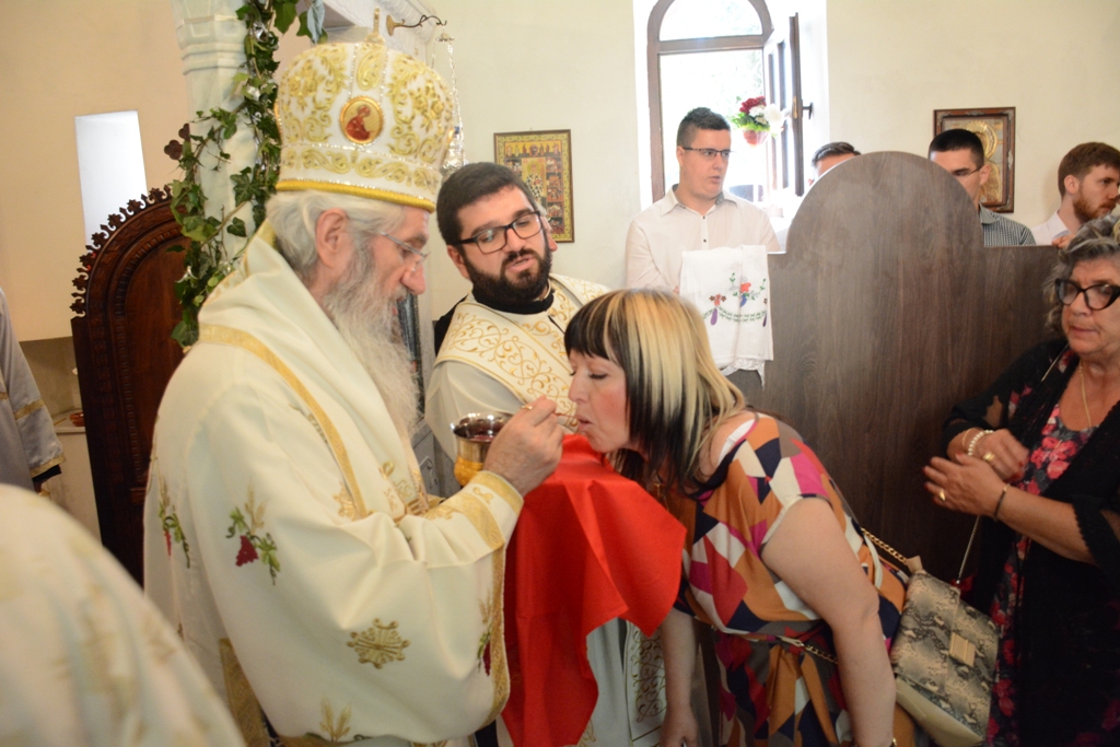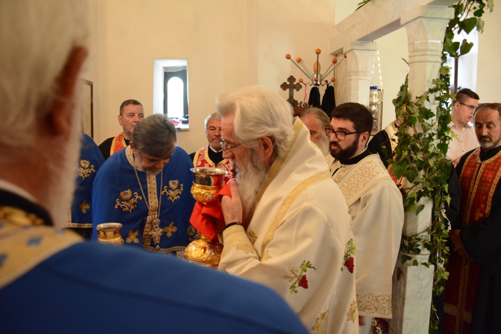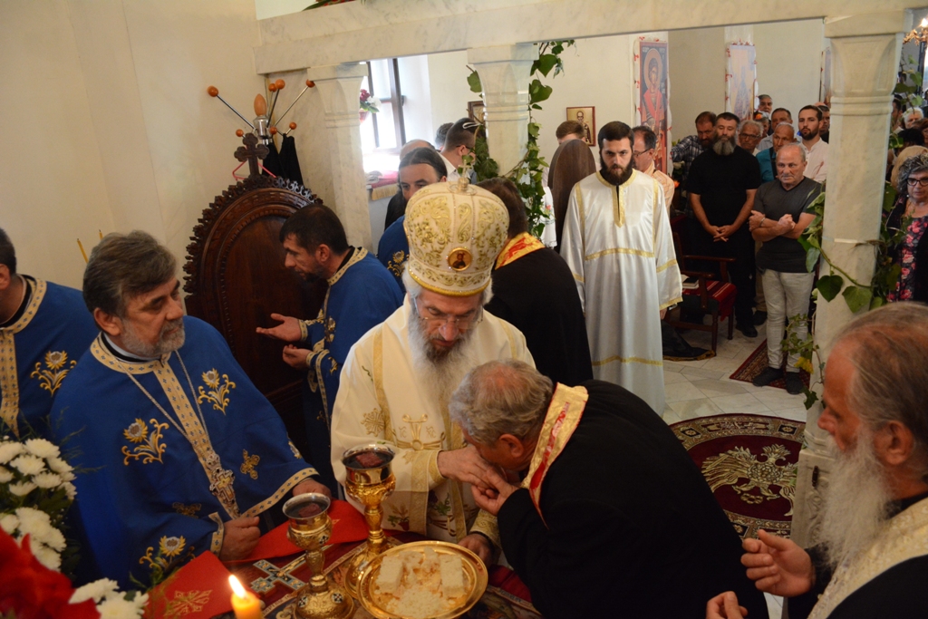 Након освећења капеле Епископ је у храму “Светог архангела Гаврила” у склопу манастира служио Свету Архијереску Литургију уз саслуживање Архијерејског намесника орашачког, протојереја-ставрофора Миће Ћирковића, Архијерејског намесника опленачког, протојереја-ставрофора Миладина Михаиловића, протојереја-ставрофора Зорана Алексића, протојереја Љубише Ђураша и Слободана Раковића, протонамесника Ивана Теодосића, протођакона Ивана Гашића и ђакона Александра Бабића. По одлсуженој Светој Литургији Епископ Јован је пререзао Славске колаче братству манастира и особљу Здравственог центра у Аранђеловцу и доделио грамате прознања командиру ватрогасне јединице града Аранђеловца Г-дину Ненаду Миливојевићу и монаху Јоаникију. Епископ шумадијски Господин Јован се затим обратио вернима својом беседом о Светој Тројици. Он је навео да је Дух Свети тај који свакодневно обитава над нама и који нас укрепљује. Епископ је напоменуо да не заборавимо да смо на Светом Крштењу примили Светога Духа и да смо се тада крстили у име Свете Тројице, а и то да све шта се догађа у овом свету се дешава у име Свете Тројице, од Оца, кроз Сина у Духу Светоме. “Благо крштеном човеку који чува Светога Духа у себи” говори Владика јер само тако смо прави хришћани. Дарови које приносимо на Светој Евхаристији су најбољи пример љубави бога према човеку и деловања Светога Духа јер Он тај хлеб и то вино претвара у Тело и Крв Христову. Морамо обратити пажњу на наш живот јер човек који напусти Духа Светога допушта да га преузме дух овога пропадљивога света. Епископ је потом навео да је Свети Јоаникије кога прослављамо кратко био на епископском трону, али да је за тај кратак период показао како треба бити Епископ и како се треба залагати за свој народ и веру хришћанску. Он је био пун Духа Светога. Упркос његовим мукама показао је да свако ко жели да се упусти у рат против Цркве Христове, унапред је пред Богом тај рат изгубио. Владика нас је замолио да се молимо Светом Јоаникију да нас чува и да нам буде водич ка путу Господњем.