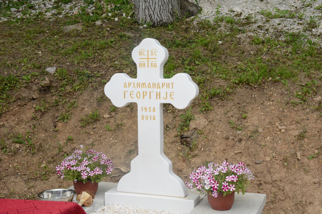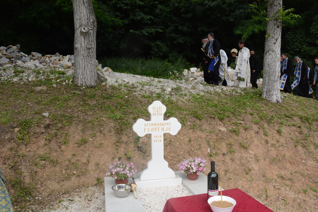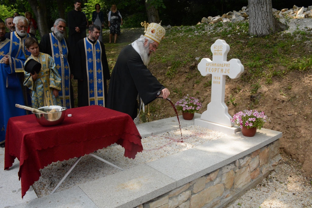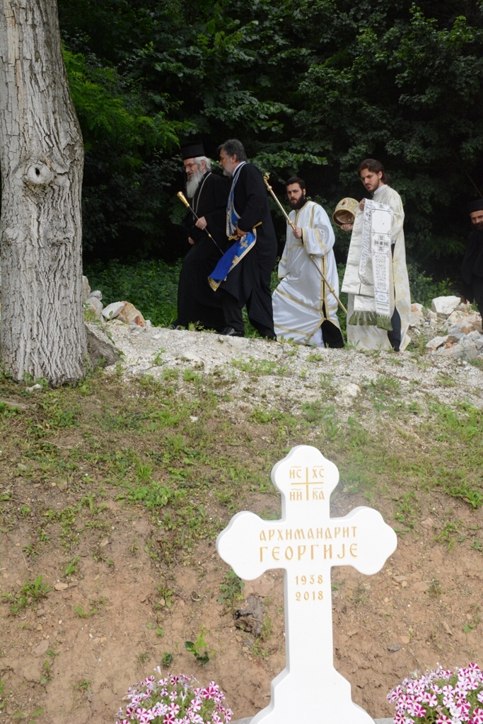 Епископ Јован је потом на гробу Архимадрита Георгија (Милошевића) одслужио годишњи помен и освештао надгробни крст.