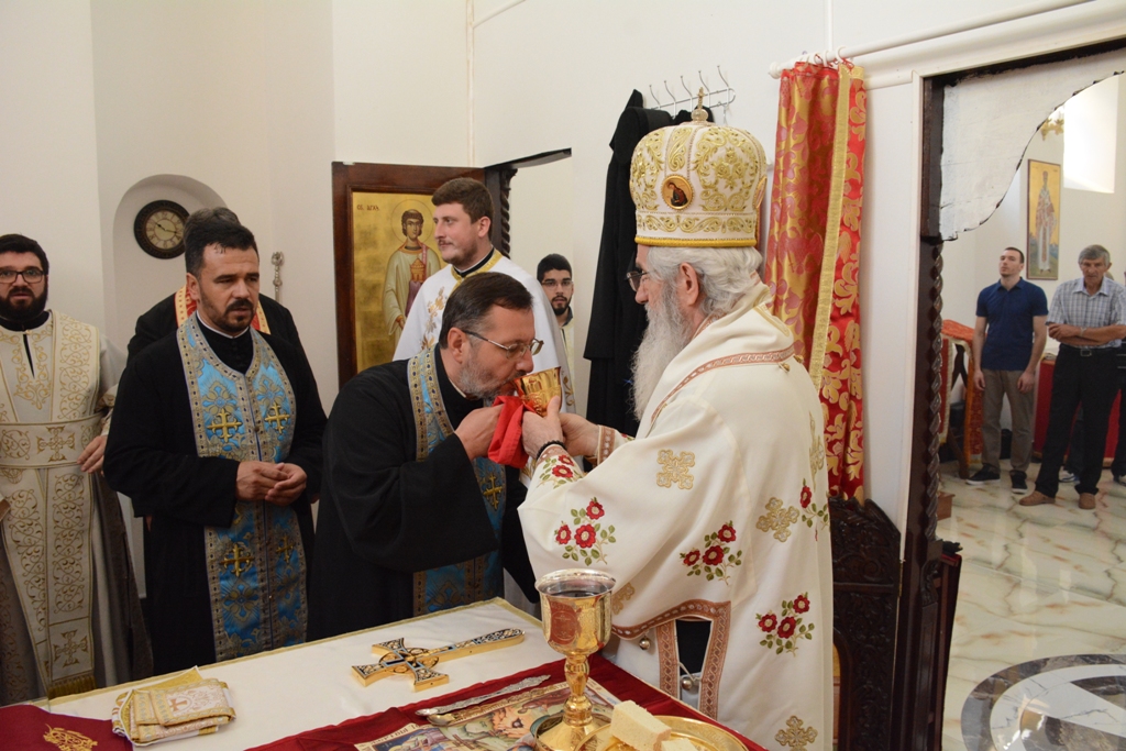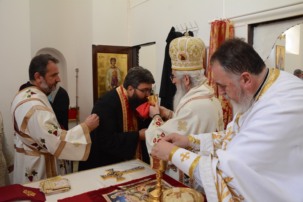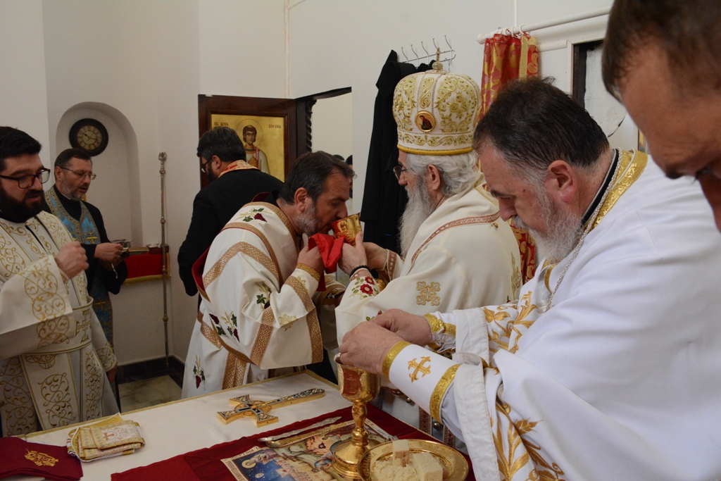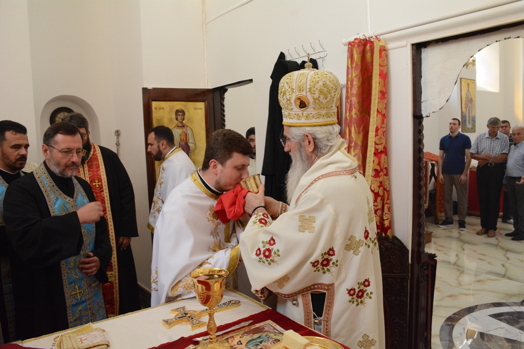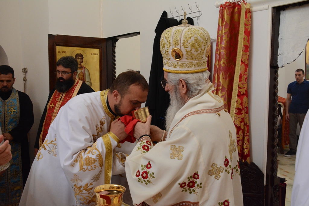 Прота Душан Илић и отац Ненад Милојевић су се свесрдно постарали да припреме трпезу љубави у просторијама парохијског дома где су угостили све верне заједно са својим Архипастиром.
