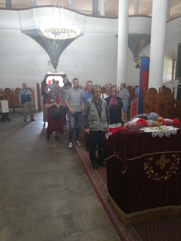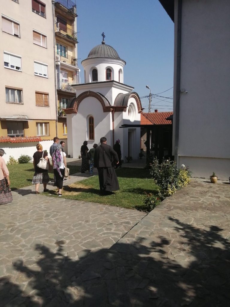 После послужења смо пошли у Саборни храм у Врању. Након целивања и обиласка храма, посетили смо кућу светог Јустина Ћелијског и Врањског. Кућу светог Јустина срушили су комунисти а Епархија врањска је саградила по слици како је изгледала пре. У кући смо видели одежде светог Јустина, фотографије, мантије. Испред куће је саграђена мала капела посвећена светом Јустину Ћелијском и светом Јустину Философу. После смо посетили храм Светог Николаја Мирликијског и целивали његове мошти. У храму има доста моштију светих, од којих је упечатљива лобања детета пострадалог у рату у Хрватској. Око 18 сати смо пошли у Крагујевац. Верници су изразили жељу да опет што скорије поновимо исто. Дај Боже, нека тако буде!