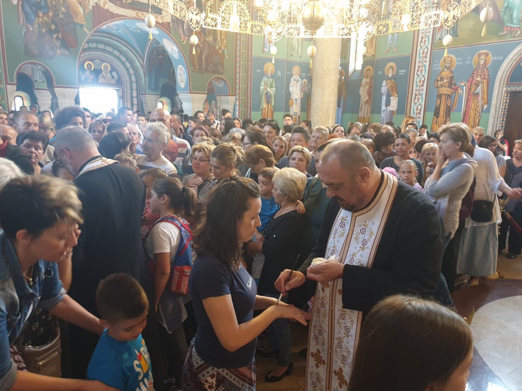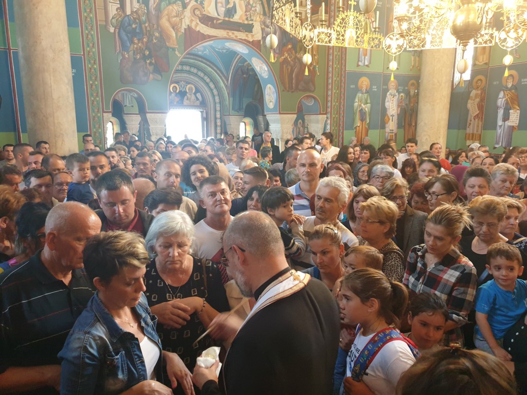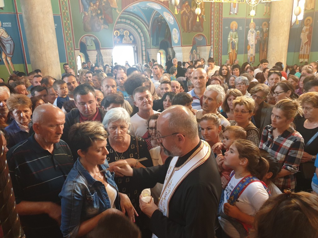 Верници који су се, као и претходних година, окупили у великом броју, могли су својим домовима понети освећено брашно и јелеј.