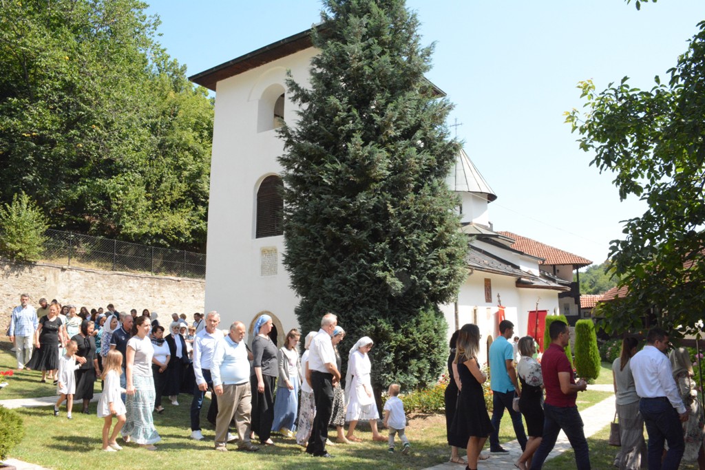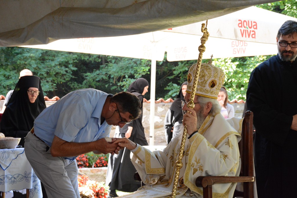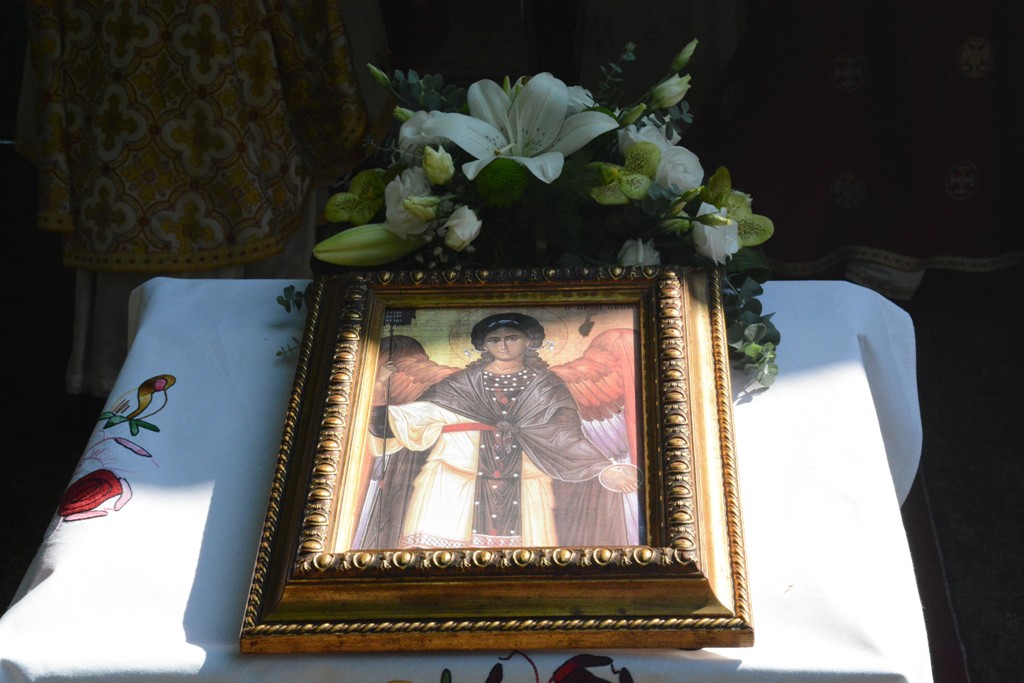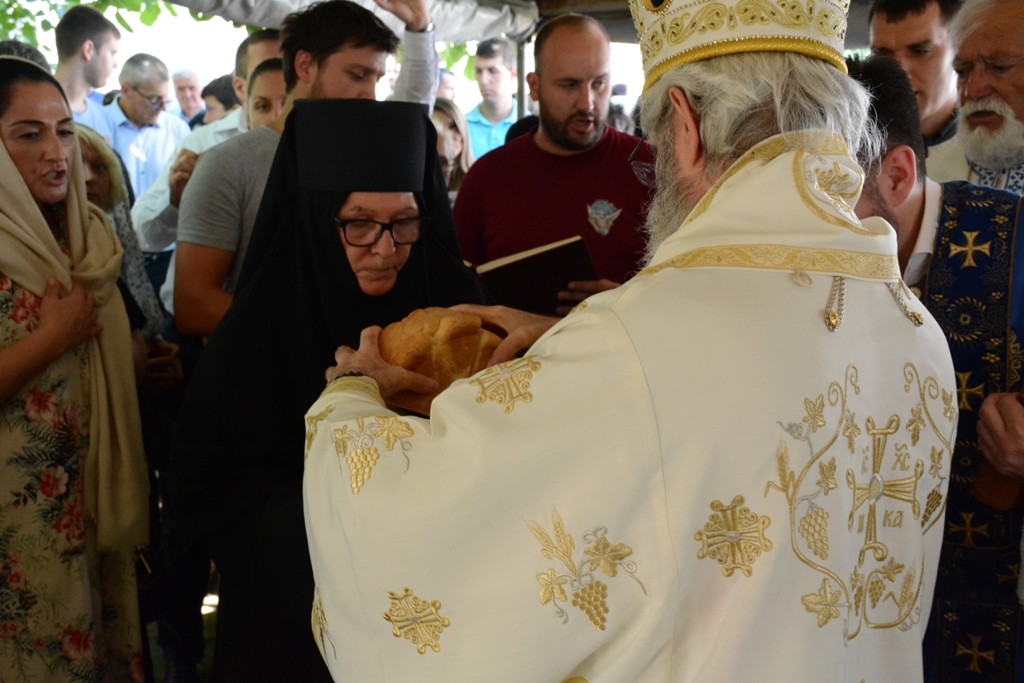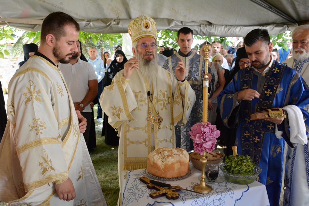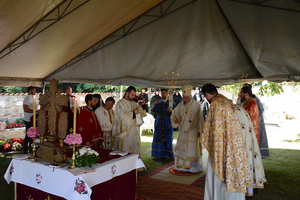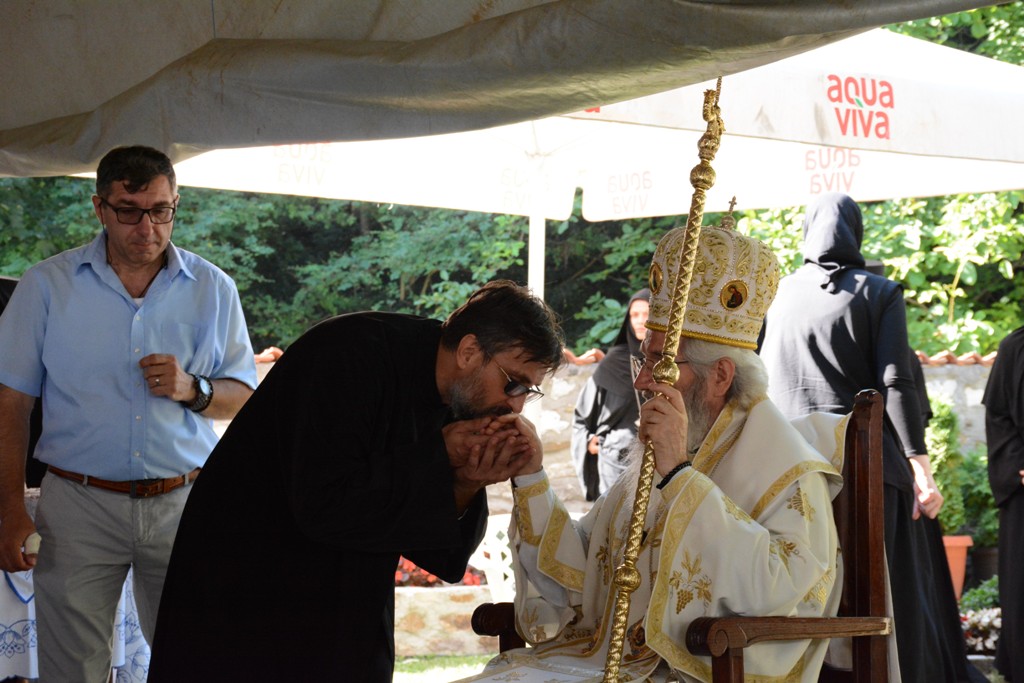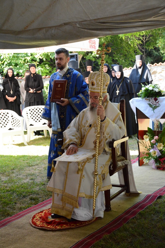 Епископ је на самом почетку свог обраћања честитао празник: “Срећна слава овог манастира браћо и сестре. Нека Господ благослови наш долазак у ову светињу”, да би у наставку беседе говорио о послушању и поретку у Цркви истакавши следеће: “Бог је дошао да спасе човека зато што је он круна Божија. Бог је васкрсао да би нам показао да ћемо и ми васкрснути, а васкрсава сваки онај хришћанин који умире са Богом, верујући да ће га Бог васкрснути. Ако нас анђели не буду чували и ако нас благодат Божија не буде чувала, онда је човек на сваком кораку изложен невољама, бедама, патњама, мукама, искушењима. Сваки од нас има свог анђела, зато водимо рачуна да не љутимо анђела свога јер од његовог чувања зависи наш живот и овде и на небу. Господ је дошао и учинио човека славом и чашћу већим од анђела. Како је достојанствено бити човек, али прави човек, верујући човек, који веру потврђује својим делима. Ми браћо и сестре, сви знамо да су анђели и арханђели силе небеске и да је њима Бог дао послушање да они служе човеку. Они јесу увек уз нас ако их ми стално призивамо. Ми смо ту да им се обраћамо с молитвом и поверењем. Црква нас учи да постоје анђели који слушају Бога и они анђели који то не чине, а то су анђели таме. Анђели таме су због непослушности изгубили спасење и то желе човеку. Неразуман човек често служи онима који му не желе добро, који су отпали од Бога. Они су престали да гледају лице Божије и то је највећа казна за њих. Да би анђели остали анђели потребно је да слушају и извршују вољу Божију. Потребно је да служе другима, а не да друге покоравају себи. Оне нечастиве силе раде на покоравању човека себи, и оне наговарају човека на зло. Потребно је да анђели све приводе Богу, а не да они буду центар света, што људи често раде. Људи на томе највише духовно гину. У Цркви Божијој све је устаљено по реду и поретку, а човек често хоће да се врши његова воља, а не воља Божија. Тај поредак се може дефинисати као послушање Богу. Послушање Богу се реализује нашим појединачним животима као послушање Цркви Божијој. Онај који слуша оног свога, он слуша и Бога, а онај који слуша себе тај не слуша ни Бога ни свога претпостављеног. Да имамо поверења према нама и према Богу, да наша љубав буде подједнака и према Богу и према ближњима. Без послушања нема служења Богу. Слушај и Бога и ближњег и ето ти користи од послушања. Да позовемо браћо и сестре свете анђеле Божије у помоћ, да се угледамо на анђеле, на Пресвету Богородици која је и родивши Бога остала у послушању”.