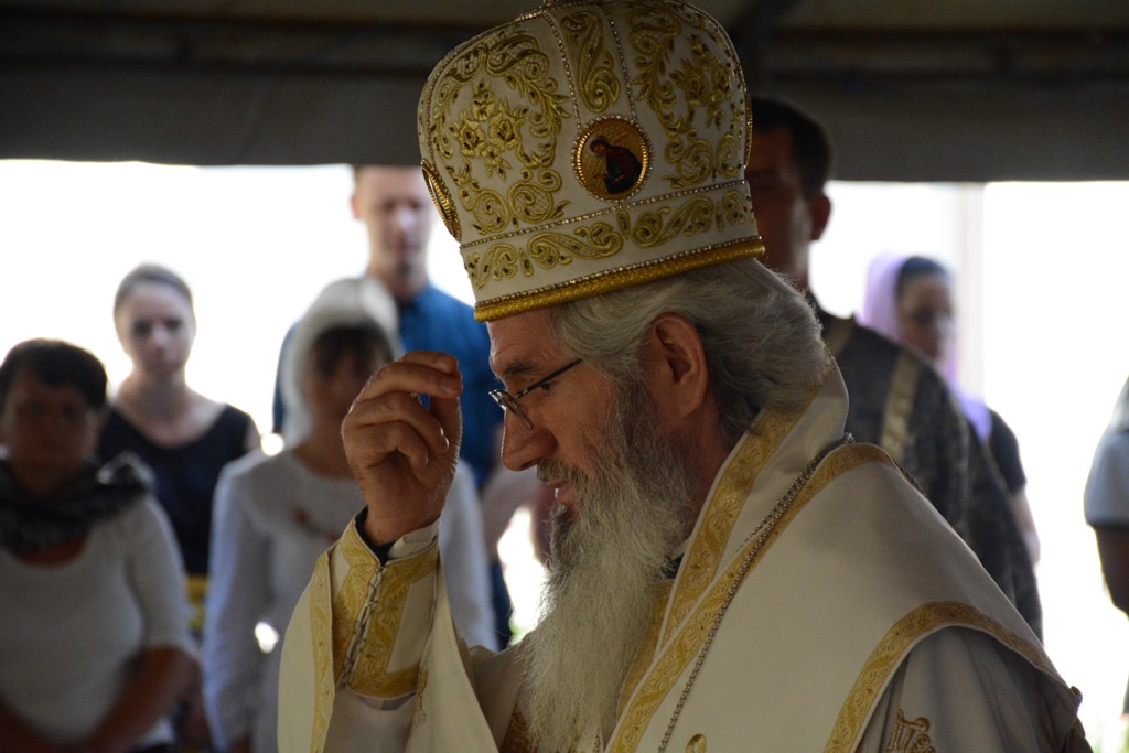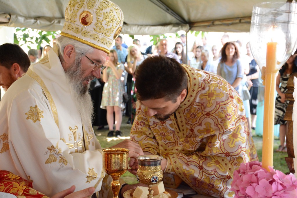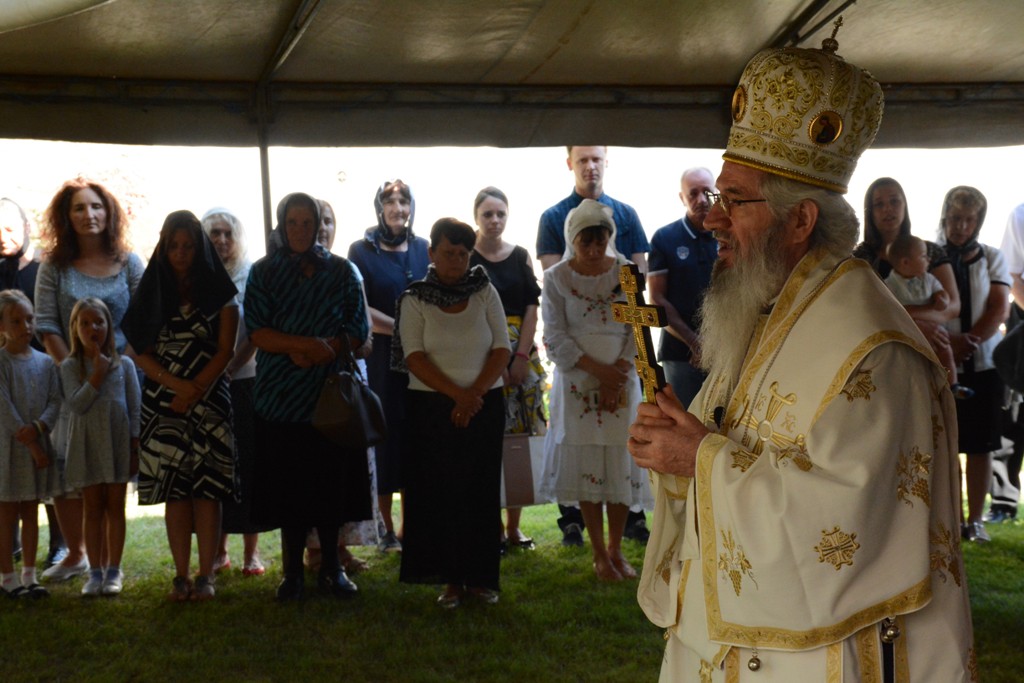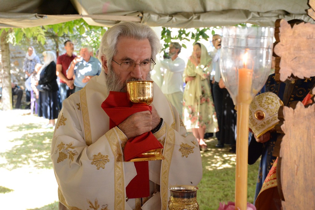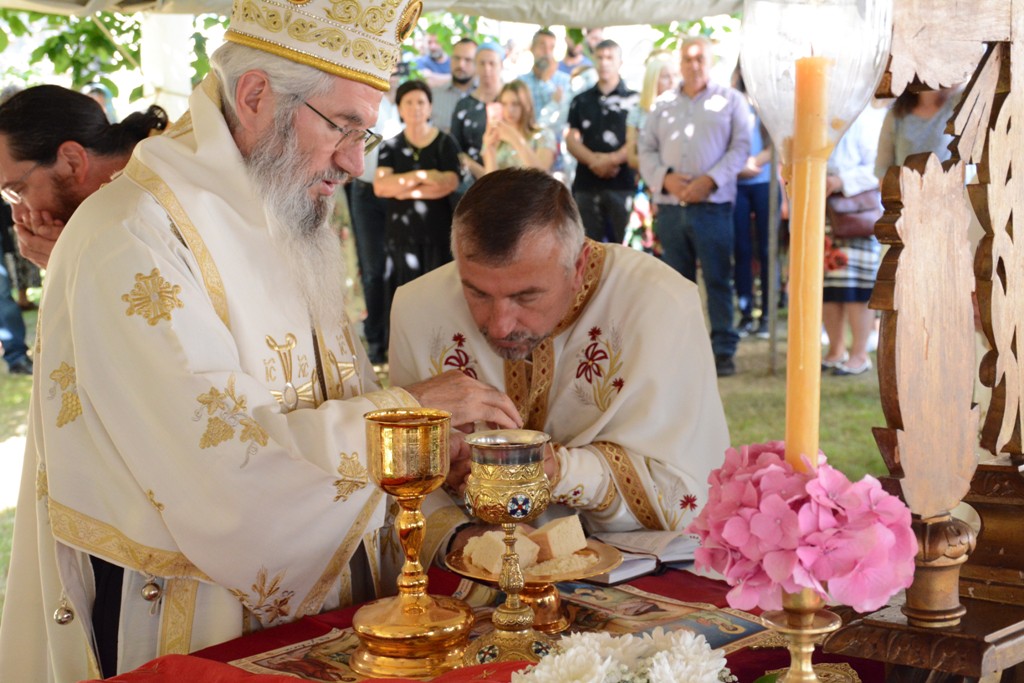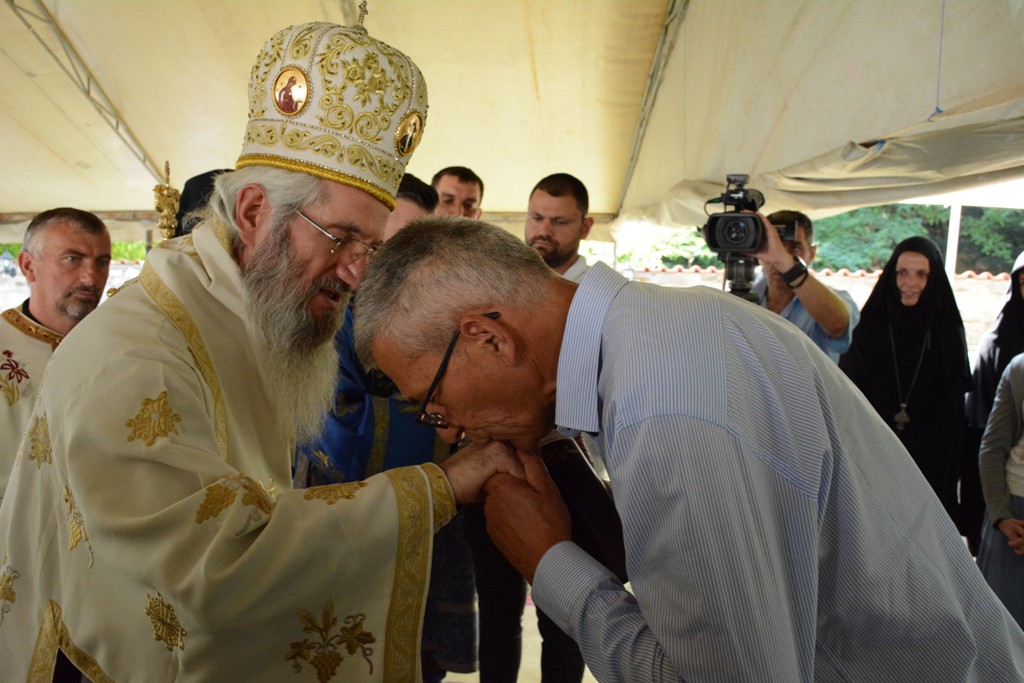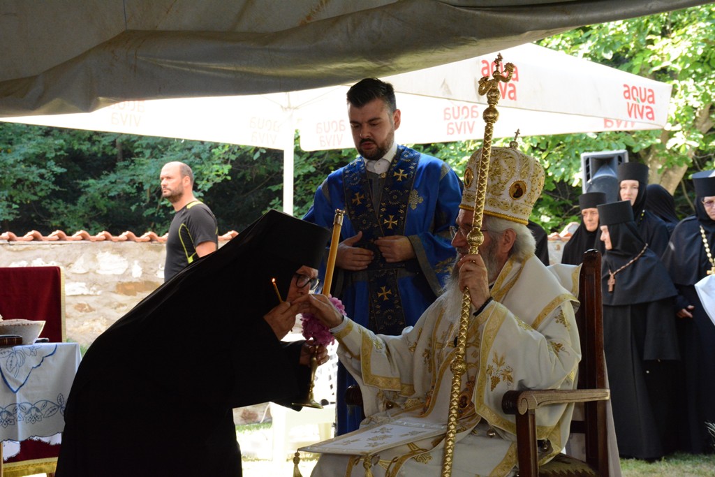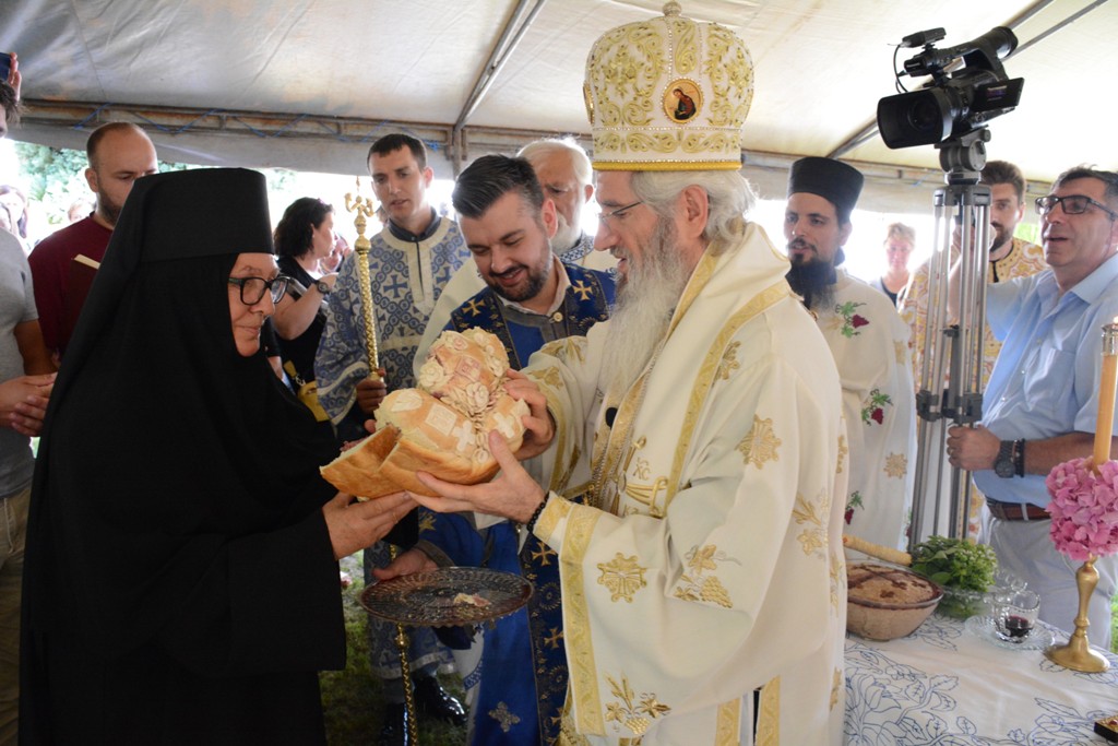 Епископ је на самом почетку свог обраћања честитао празник: “Срећна слава овог манастира браћо и сестре. Нека Господ благослови наш долазак у ову светињу”, да би у наставку беседе говорио о послушању и поретку у Цркви истакавши следеће: “Бог је дошао да спасе човека зато што је он круна Божија. Бог је васкрсао да би нам показао да ћемо и ми васкрснути, а васкрсава сваки онај хришћанин који умире са Богом, верујући да ће га Бог васкрснути. Ако нас анђели не буду чували и ако нас благодат Божија не буде чувала, онда је човек на сваком кораку изложен невољама, бедама, патњама, мукама, искушењима. Сваки од нас има свог анђела, зато водимо рачуна да не љутимо анђела свога јер од његовог чувања зависи наш живот и овде и на небу. Господ је дошао и учинио човека славом и чашћу већим од анђела. Како је достојанствено бити човек, али прави човек, верујући човек, који веру потврђује својим делима. Ми браћо и сестре, сви знамо да су анђели и арханђели силе небеске и да је њима Бог дао послушање да они служе човеку. Они јесу увек уз нас ако их ми стално призивамо. Ми смо ту да им се обраћамо с молитвом и поверењем. Црква нас учи да постоје анђели који слушају Бога и они анђели који то не чине, а то су анђели таме. Анђели таме су због непослушности изгубили спасење и то желе човеку. Неразуман човек често служи онима који му не желе добро, који су отпали од Бога. Они су престали да гледају лице Божије и то је највећа казна за њих. Да би анђели остали анђели потребно је да слушају и извршују вољу Божију. Потребно је да служе другима, а не да друге покоравају себи. Оне нечастиве силе раде на покоравању човека себи, и оне наговарају човека на зло. Потребно је да анђели све приводе Богу, а не да они буду центар света, што људи често раде. Људи на томе највише духовно гину. У Цркви Божијој све је устаљено по реду и поретку, а човек често хоће да се врши његова воља, а не воља Божија. Тај поредак се може дефинисати као послушање Богу. Послушање Богу се реализује нашим појединачним животима као послушање Цркви Божијој. Онај који слуша оног свога, он слуша и Бога, а онај који слуша себе тај не слуша ни Бога ни свога претпостављеног. Да имамо поверења према нама и према Богу, да наша љубав буде подједнака и према Богу и према ближњима. Без послушања нема служења Богу. Слушај и Бога и ближњег и ето ти користи од послушања. Да позовемо браћо и сестре свете анђеле Божије у помоћ, да се угледамо на анђеле, на Пресвету Богородици која је и родивши Бога остала у послушању”.