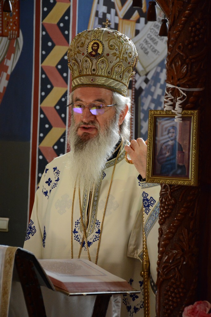 Беседећи након прочитаног јеванђелског зачала у ком се говори о жени грешници која је миром помазала ноге Христове и излила сузе покајања, Епископ је истакао: “Ова жена кад је чула да је Христос у њеној близини, у дому код Симона, код ње се показала једна велика жеља да се сретне са Христом. Она је најскупоценијим миром помазала ноге Христове. Свети оци када тумаче ову причу, кажу да се у овој жени појавила она искра вере и она је знала да јој нико не може опростити грехе до сам Господ Исус Христос. Док су Христос и Симон седели за трпезом, ова жена није имала храбрости да погледа у лице Христово, Његово лице је светлело, а она је, осећајући покајање, стала иза Христа и почела је да плаче лијући покајничке сузе, квасећи ноге Христове и косом главе своје их је отирала. Овај догађај изазвао је једно страшно негодовање фарисеја Симона према овој жени, али и према Христу. Симон зна да је ова жена велика грешница и он сада сумња у Христа као пророка, јер би Христос требало да зна каква га се грешница дотакла. Христос не само да зна каква је ова жена грешница, већ зна и помисли Симонове, како он себе сматра праведним. Тако и ми често себе сматрамо праведнијима него што јесмо, а другога сматрамо мање праведним од нас, а не видимо да је често тај други и праведнији и бољи од нас. У дијалогу са Симоном доминира Христов суд о Симону и овој жени грешници. Овде Христос говори о двојици дужника и поставља питање Симону ко треба више да воли Бога, овај са мањим или овај са већим дугом. Права вера човека подстиче на покајање, молитву, љубав, наду. Из свега овога реченог, видимо да жена која је у почетку описана као грешница, представља на крају пример вере и пример свих дужника који немају од чега да врате дуг, али од Христа примају опроштај дугова. Она узвраћа покајничким сузама и показује нам да смо сви ми велики дужници, док са друге стране фарисеј сматра да он Богу не дугује ништа, него да Бог њему дугује. Он није позвао Христа да би видео у њему себе. Зато га Христос позива да не осуђује. Врло је важно да и ми у животу не осуђујемо, јер каквим судом судимо онаквим ће нам се и судити”.