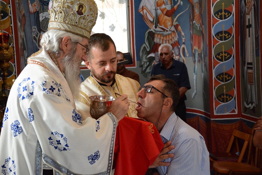 Готово сви присутни верници су се причестили да би потом у миру испратили свог Владику добивши од њега свети архијерејски благослов.