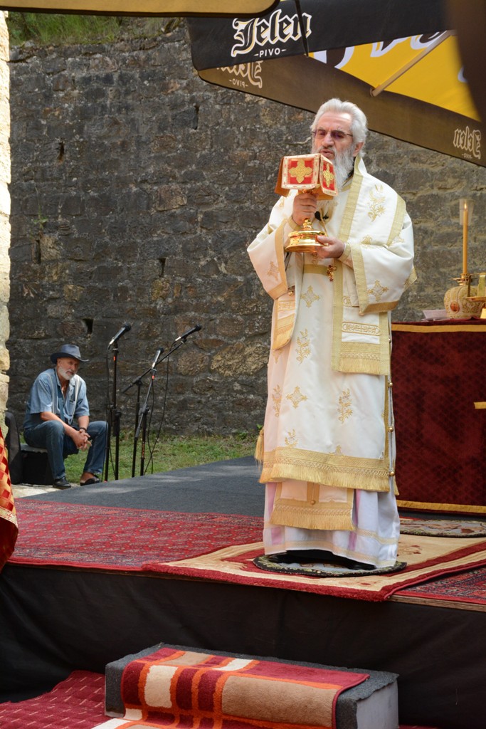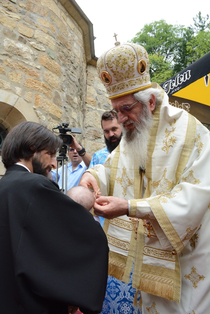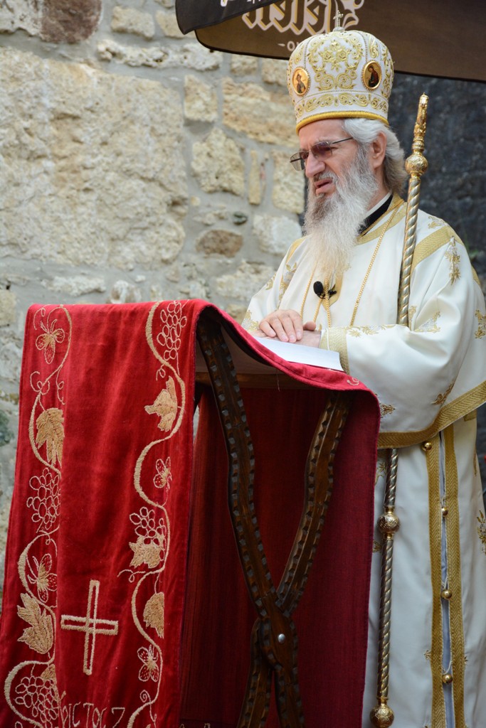 Наш Владика је у својој беседи говорио о значају делатне вере и молитве. Подсетио је верне на славни пример Светих Лазаревића, као и Свете Макрине и да су њихови животи посебно важан узор у времену када се породица свесно урушава и када јој се ускраћује важност и достојанство. Усрдна молитва поткрепљена делима сведочи о томе да смо заиста достојни хришћанског имена. Молитва је побожно управљање душе човекове Богу, или беседа срца са Богом, кроз коју, представљајући невидљиво Бога пред собом, човек излива пред Њим осећања своје душе. Она је уздизање ума и срца Богу; њоме човек узлеће у хорове анђела и постаје учесник њиховог блаженства. Нема ничег драгоценијег од молитве у животу човечјем. Она и немогуће чини могућим, тешко чини лаким, неугодно претвара у угодно. Молитва је толико потребна човековој души, колико и ваздух дисању. Ко се не моли, тај је лишен разговора са Богом. Ко се моли и живи своју веру, мир који има у себи преноси на друге. Када бисмо се трудили да узрастамо у вери и молитви не би само наш живот био бољи, већ бисмо и читаво друштво побољшали и учинили мање насилним.