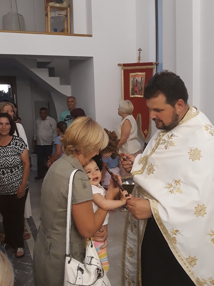 На крају вечерњег, по отпеваном тропару, приступило се освећењу грожђа и осталог воћа. Потом се верном народу обратио служашчиј храма који је подсетио на значај самог празника, на то да смо позвани да узрастамо у Богу, да напредујемо и преображавамо себе кроз живот у Христу и кроз свете тајне које нам је оставио. Изразио је велику радост што се народ у све већем броју скупља у своме храму, јер је то лађа спасења чији прамац – олтар, а чији је кормилар сам Христос, узводе ка Истоку, ка вечноме животу.