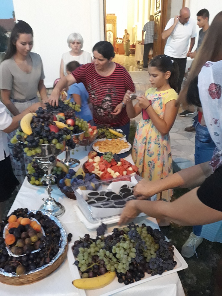Сабрање је настављено послужењем испред храма где су се верни могли послужити освећеним плодовима.