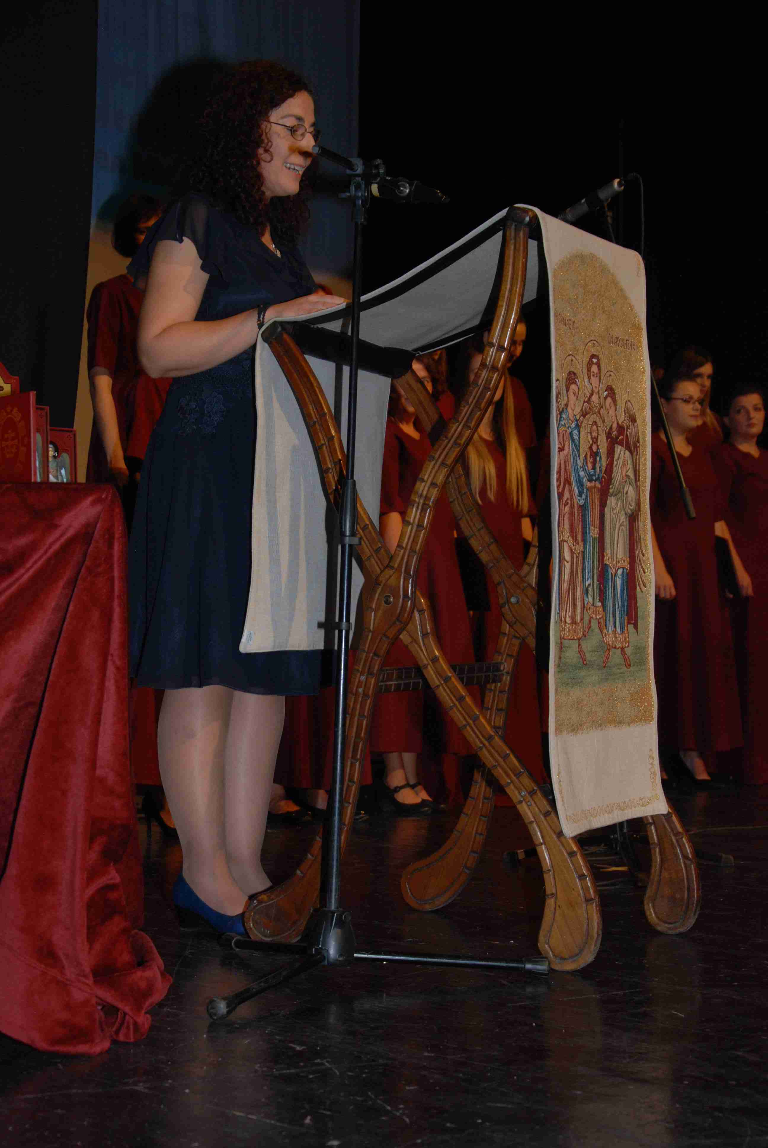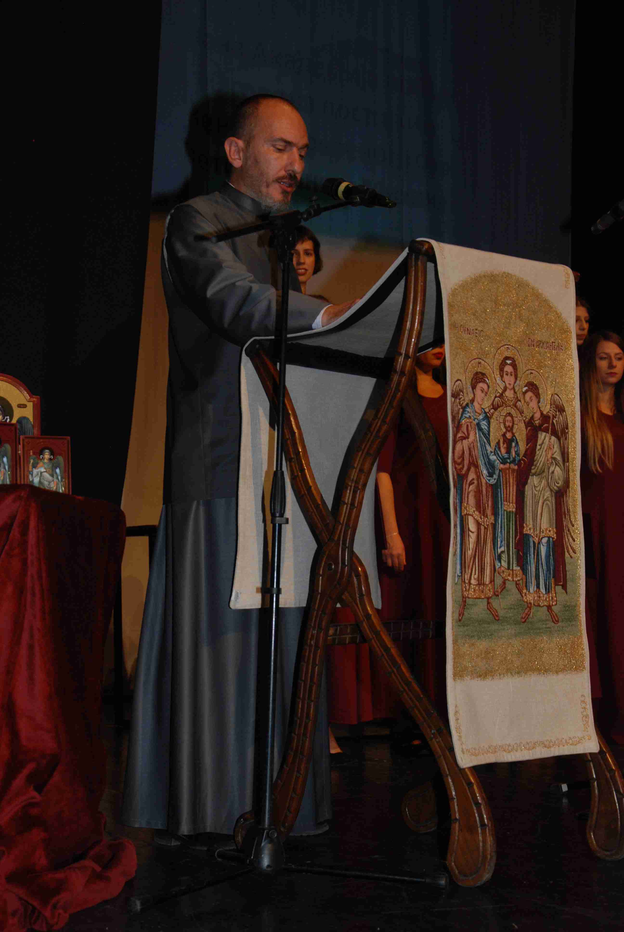 “Поштовани градоначелниче, високопреподобни оче, поштовани професори, часни оци, драги гости, драга браћо и сестре, дозволите ми, да вам у име свештенства Старе цркве у Јагодини и, сада, женског црквеног хора “Свети архангел Михаило” пожелим добродошлицу на ову свечану и надасве радосну Академију посвећену 30-тој годишњици оснивања нашег црквеног хора.