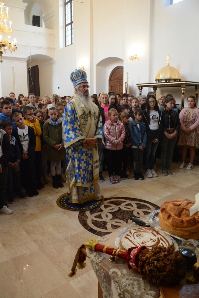 Окупљене вернике Владика Јован је очински упутио у смисао и суштину данашњег празника. “Овај празник прославља се десет векова у Цркви. И заиста, после Господа Исуса Христа, Пресвета Богородица је за нас православне хришћане најсветије биће. Њен покров нас штити топлотом вере и молитве, као благослов и помоћ у свим невољама. Мајка Божија је наша највећа молитвеница и заштитница. Она и сада својим покровом бди над нама и штити нас својим молитвама. Свако ко у свом срцу има искрену веру осећа и духовним очима види и сведочи ову неизмерну љубав Пресвете Богородице према људском роду”, поучавао је Владика сабране.
