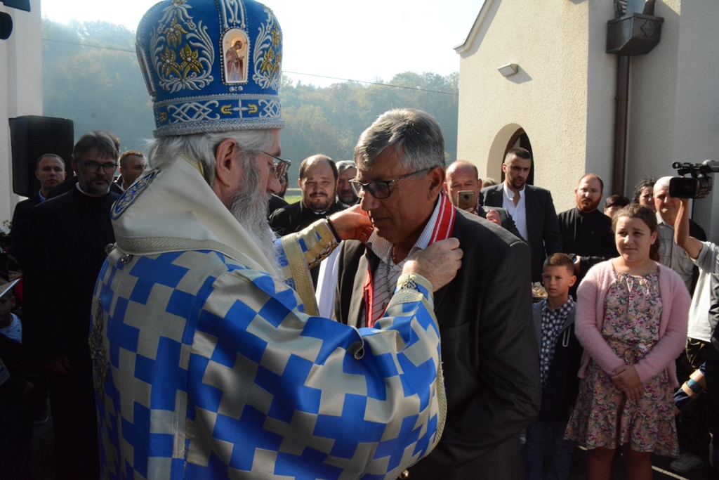 Овом приликом Владика Јован уручио је орден Светих новомученика крагујевачких другог степена, господину Зорану Николићу из Барошевца, за труд и љубав које је показао приликом обнове храма Покрова Пресвете Богородице у Барошевцу.