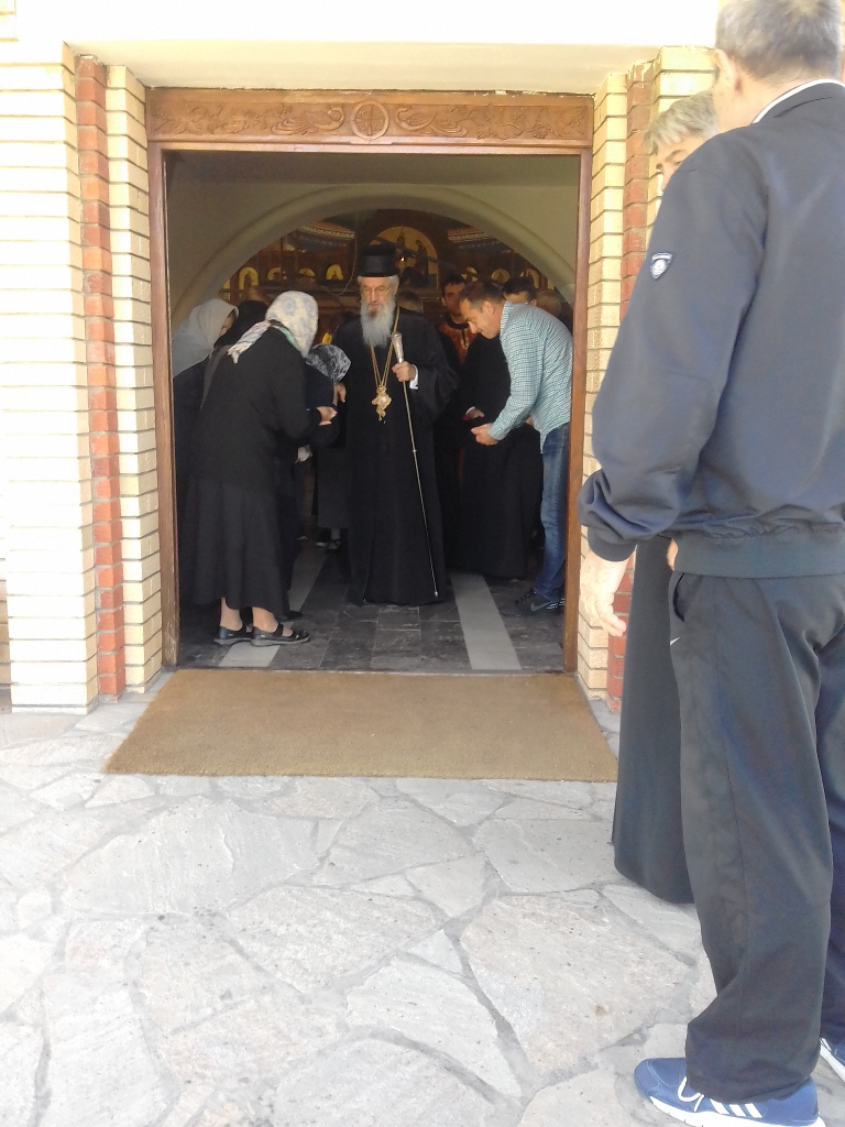 Након прочитаног Јеванђеља у беседи Епископ Јован је рекао: “У име Оца и Сина и Светога Духа. У овоме данашњем одељку из данашњег Јеванђеља браћо и сестре, Господ нам даје велику утеху, као што нам цело Јеванђеље даје утеху, колико читамо Јеванђеље и колико се трудимо да живимо по Јеванђељу. И ето, утеха је у томе што данас у овом одељку данашњег Јеванђеља у томе што, Господ за себе каже да је Он врата и да који уђе кроз та врата изићи ће, спашће се и пашу ће наћи. Наћи ће храну, и даље Господ говори за себе: “Ја сам пастир добри, а пастир добри душу своју полаже за овце своје”. Шта је дужност пастира браћо и сестре? Дужност пастира, хајде да кажемо нашим језиком чобанина, јесте да чува своје стадо. Од чега да га чува? Од непријатеља стада, а непријатељи су све звери, вукови, другим речима, дужност пастира је да чува овце од вукова, да их вукови не растргну, да их не распуде. Ми знамо из примера, ми који смо са села, кад чувамо овце па наиђе некаква звер, овце бегају. Али где бегају овце? Бегају тамо где им је пастир остао. Али ако пастир није код оваца, е онда оне губе свој правац, губе свој смисао и управо овце не знају куда иду. То је са бесловесним овцама, а тако је исто браћо и сестре и са нама, са словесним овцама Божијим. Ако ми људи који смо боголики, које нас је Бог створио по икони својој по слици својој, ако ми браћо и сестре не тражимо пастира Господа Христа, и ако не будемо Њему стално прибегавали, ми ћемо браћо и сестре као оне бесловесне овце залутати у пустињи, и тамо ћа нас нападати свака звер. У овом смислу напашће нас нечастиви. Напашће нас наше страсти, наша гордост, наша сујета итд. Дакле дужност је пастира, као што рекох, да чува своје стадо. А шта је дужност, обавеза боље речено стада? Да слуша пастира. А стадо ће слушати пастира и нас као свештенике, ако заиста ми свештеници живимо Јеванђеље”, поручио је Епископ Јован.