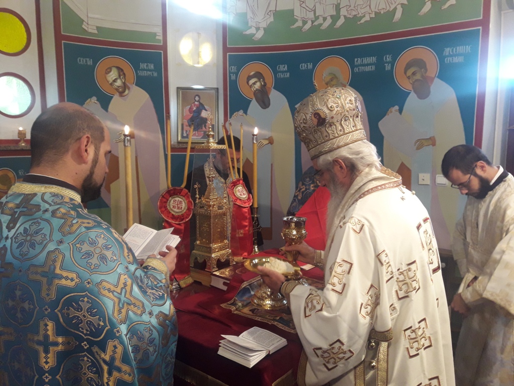 Након Литургије, Епископ је поделио иконице присутним верницима.