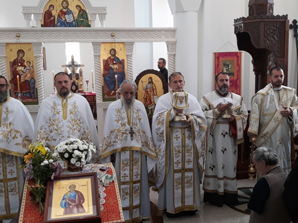 Препуном храму верника, беседом се након прочитаног Јеванђеља обратио протојереј-ставрофор Милић Марковић рекавши да: “Живимо у свету великог осиромашења. И, заиста, ако је човек на крају свог бескрајно дугог развоја дошао до става – “Док не будем видео, нећу веровати” и ако тај став представља врхунац човекове мудрости и највеће достигнуће његовог разума, онда је наш свет стварно један плитки, неизмерно досадни свет. Ако знамо само то што видимо, што можемо да додирнемо, измеримо и анализирамо, како онда мало тога знамо. Пре свега, у том случају отпада читав свет људскога духа и мишљења, оног дубљег знања које проистиче не из “видим” или “додирујем”, већ из “мислим” и, што је главно, “умом сагледавам”. Отпада све оно знање које је вековима било укорењено не у спољашњем и емпиријском искуству, већ у једној другој задивљујућој и, заиста, необјашњивој човековој способности, којом се човек разликује од свега другог у свету, која га чини заиста јединственим бићем. Зато је наше исповедање вере у сагласију са нашим животом и оно не служи само да би смо као апостол Тома исповеадли “Господ мој – Бог мој” само у Цркви, већ да би то било и наше сведочанство свету који Црквом желимо да приведемо Христу у јединство”.