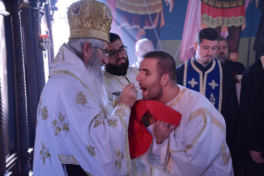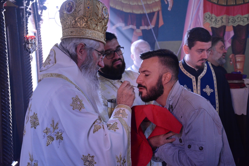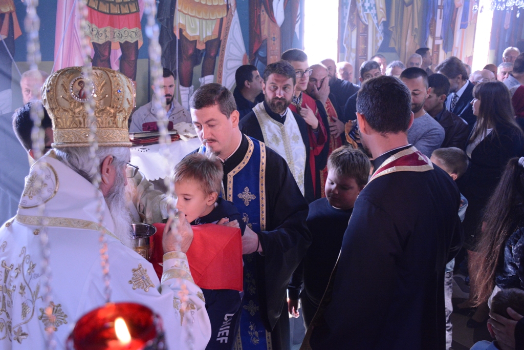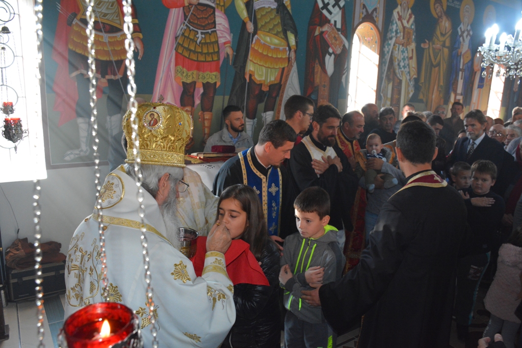 Потом је Владика нагласио: “Значајније од свега у овом Јеванђељу је то што су апостоли оставили све и пошли за Христом. Да ли би и ми тако сада, када би нам дошао и позвао нас? Апостоли нису питали ништа, нису тражили изговоре и оправдања. Ове речи су похвала апостолске одлучности, да крену за њим, без двоумљења, зато и ми треба да будемо такви, одлучни, да знамо коме припадамо, врући, или хладни, никако млаки, јер је то најстрашније стање. Господ одлучност тражи од сваког од нас, од родитеља, од деце, од свештеника, али нас уједно и позива да проверимо своју веру, своју молитву, свој живот, да види јесмо ли одлучни да будемо са Христом и за Христа. Сви хришћани су позвани, Он никог не присиљава, даје нам да одлучимо, даје нам слободу, али слободу са одговорношћу. Богочовечанска личност Христова је повукла апостоле ка Христу, они су у том позиву препознали Христов глас, као што деца послушају благи глас својих родитеља. У тим речима је било садржано све, они су знали да су Христови следбеници, одлучни да вером ходе, а не знањем. То и нама треба да да снагу да живимо вером својом. Христов позив је стварност и сигурност у сваком времену. Свако време је Јеванђељско време, од нас зависи колико и како ћемо се снаћи, јер без Бога не можемо. Наш живот цео треба да буде тежња да се сретнемо и сјединимо са Христом, јер само са њим добијамо вечност. Уколико се не одазовемо његовом позиву, као сада, на овој светој Литургији, онда смо губитници. Наше тежње треба да буду такве да се трудимо да задржимо Бога у срцу и ту благодат коју смо добили рођењем својим”.