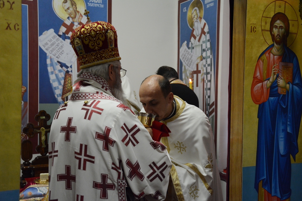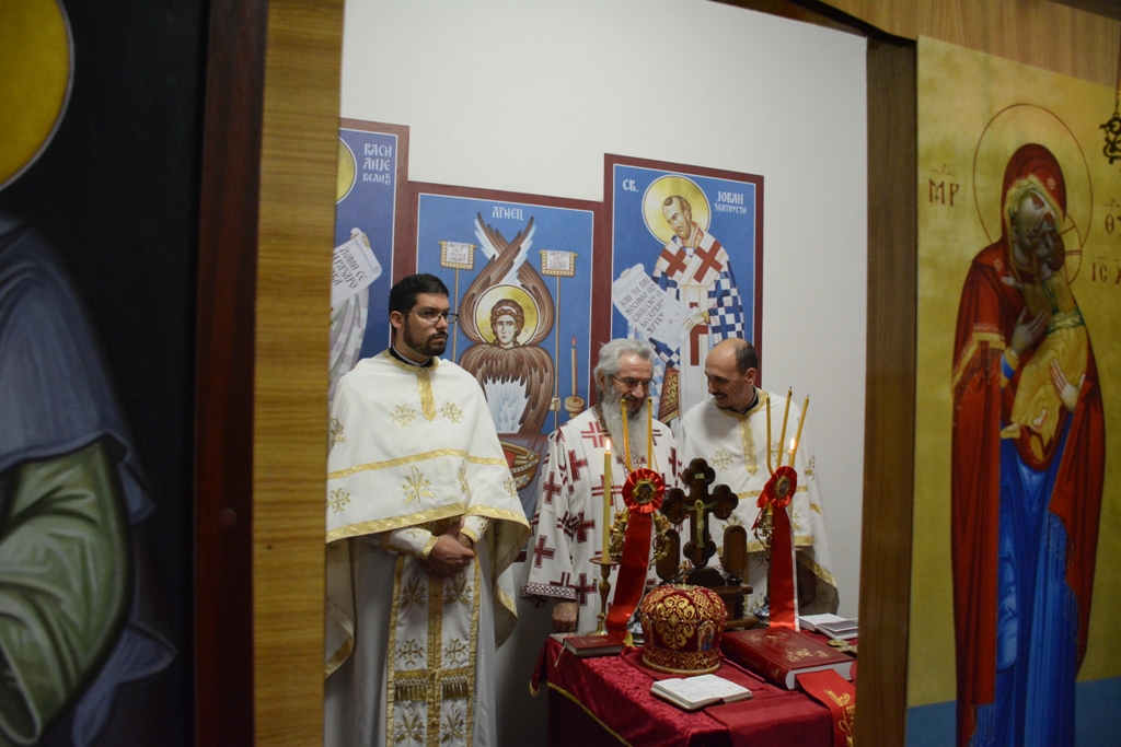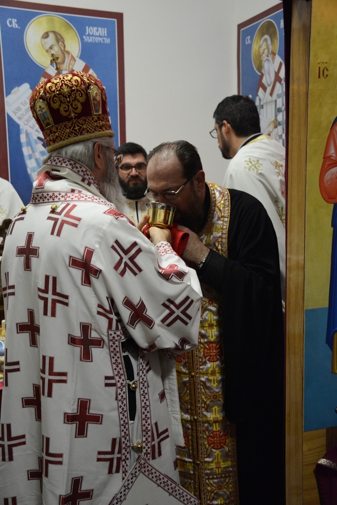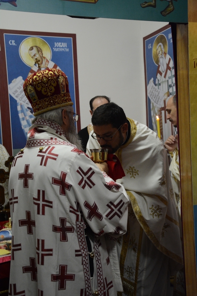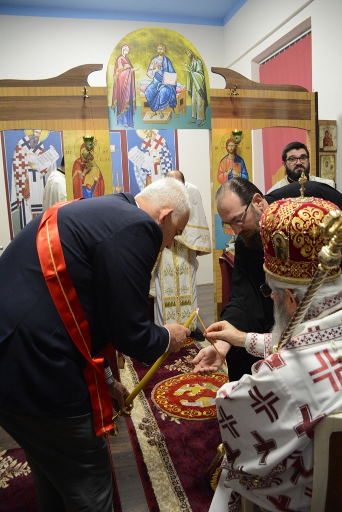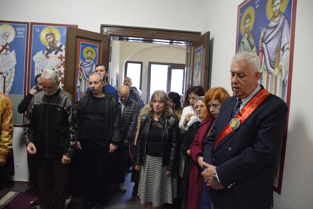 У наставку Литургије Владика је пресекао славски колач са овогодишњим домаћином г. др Ненадом Ђоковићем, ортопедом.