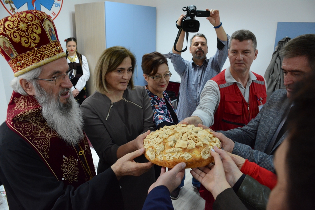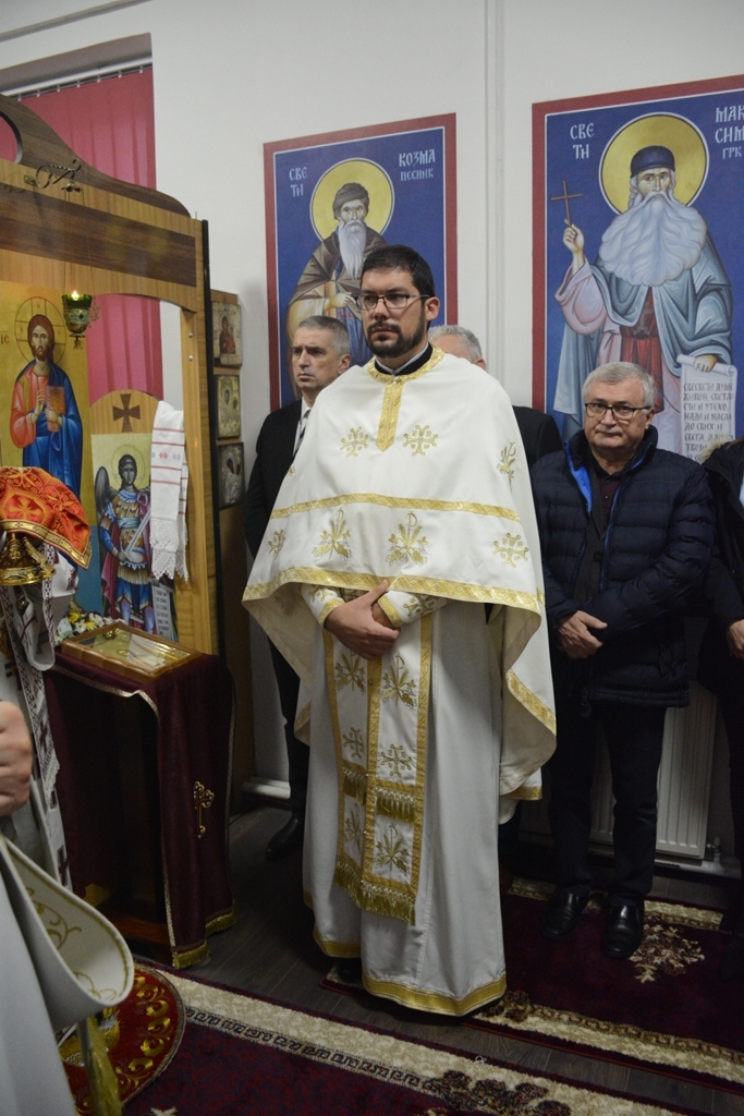 Епископ је након болничке капеле молитвено посетио и запослене у Заводу за хитну медицинску помоћ где је такође пререзао славски колач подсетивши окупљене да су Свети Козма и Дамјан лечили не само лекарским вештинама, већ и вером.