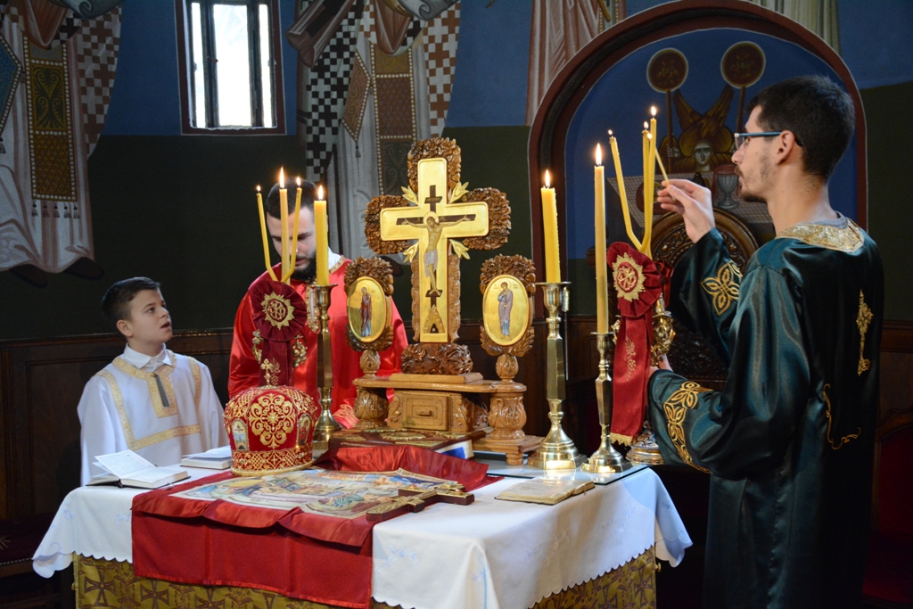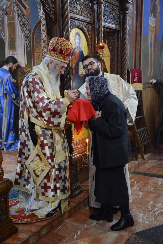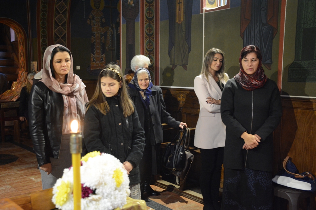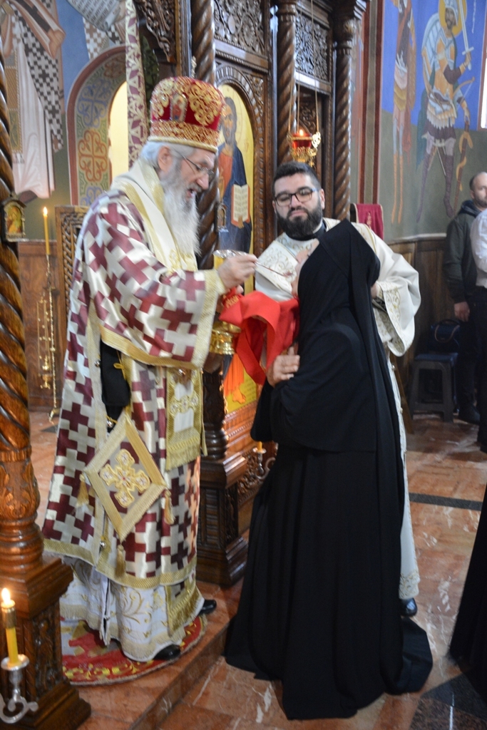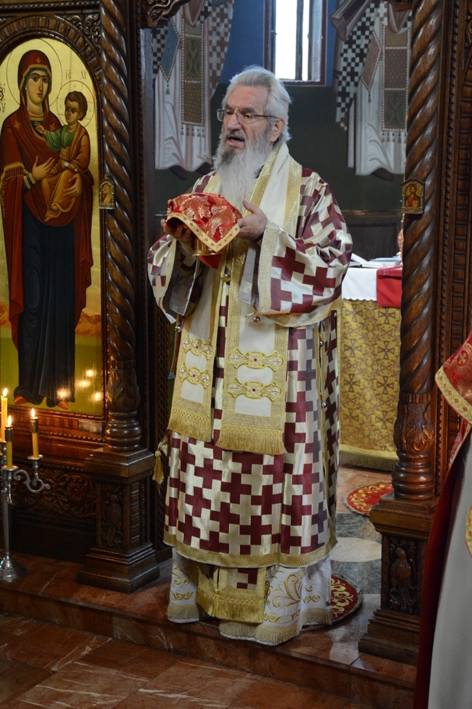 У току Свете Литургије Преосвећени Владика је пререзао славски колач у част св. Нектарија, а по завршетку је свима поделио благослов и иконице овог светитеља.