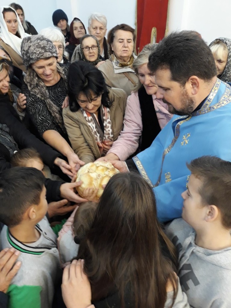 У богонадахнутој беседи протојереј Срђан је најпре честитао празник сабранима и истакао значај Пресвете Богородице за наше спасење. Отац Срђан позвао је вернике да се увек обраћају Богомајци која је мајка свих нас и да јој стално молитвено вапијемо и иштемо оно што је корисно за наше спасење. Подсетио је да се данас прославља и свети Нектарије Егински Чудотворац, који се у новије доба јавио као велики молитвеник за нас пред Богом живим и брзи помоћник болнима који му се са вером обраћају. Свети Нектарије је на путу спасења увек призивао Пресвету Богорододицу, њој се молио усрдно и њеним молитвама је одолевао разним искушењима, а знамо да их је имао много, али трпљењем је спасавао душу своју. Тако и ми треба са вером у Бога и заступништво Пресвете Богородице у њено мајчинско старање, да ходимо путем Христовим, да одолевамо искушењима и да се боримо да задобијемо Царство Небеско које нам се не може одузети.