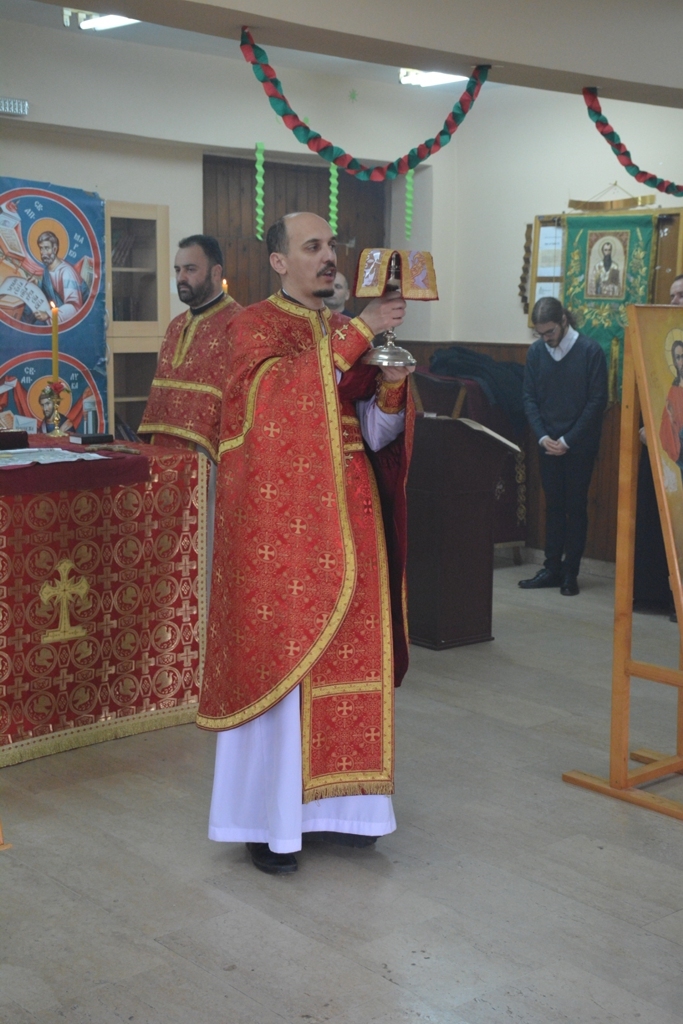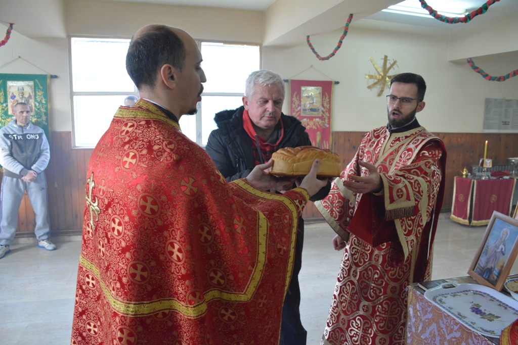 После прочитаног Јеванђеља по Луки, где нам је јеванђелист благовестио причу о жени која је умила уљем ноге Христове, беседу поводом славе произнео је протонамесник Бранислав Матић. Најпре је честитао славу управнику, г-дину Јовану Курбалији, управи и затвореницима. “Захваљујемо се Богу што нам је дао још један нови дан да заблагодаримо Њему. Данас се пред престолом Божијим радује и света Анастасија. Она која је у трећем веку обилазила затворе, видала ране, оне у затворима које нико није имао да посети. И данас се радује пред престолом Божијим као светитељка и угодница Божија. Ми данас прослављамо и величамо, сећамо се и заједно се молимо Богу за све нас овде, за све оне који се налазе у сличној ситуацији, и молимо се за све остале људе овога света да не дођу у такво искушење, да не бораве у оваквој установи. Овај ваш боравак је одлична прилика да подвучете црту. Овај боравак јесте сејање једног новог семена. Да ли ће на њиви душе ваше бити засејана освета, злоба и гордост и све оно што рађа трње, када изађете и после неког времена опет се вратите као повратници, или ћете схватити грешку коју сте учинили и засејати љубав, поверење и праштање и све оне врлине које красе доброг човека и хришћанина. Почетак је тежак... Шта је слобода? Многи напољу нису слободни. Многи од вас су слободнији од њих. Најбитнија слобода човекова је слобода од греха. Када се човек одсецањем од себе ослободи неког великог зла, он је слободан. Слободан човек је онај човек који је са Богом слободан од греха. Нема човека који живи један једини дан а да не погреши. Али свесност да је то грех и да то треба да одбацимо, да устанемо од тог пада греховног јесте почетак, велики почетак за све нас у животу, када одбацујемо старог себе и крећемо препорођени. Ова молитва и литургија, и свака нова литургија даје нам снагу да у живот идемо препорођени да сејемо за собом добро, и да њива наше душе и срца рађа стоструки плод, и да људи око нас буду срећни, а не несрећни. И то је једина слобода човекова, слобода од греха. Да Господ Бог подари свима вама снаге, и да имамо снаге да истрајемо у борби, да засејемо семе добра и да искрчимо из душе сво оно трње које нас стиска и враћа назад у дубину таме... Да истрајете у ономе у чему сте овде и да Бог управи да снаге да се ово место учини што подобнијим и бољим са изградњом новог затвора за оне који ће боравити овде, а да сви ми заједно сејемо семе добра и да стоструки плод уберемо ускоро. Живи били и Богом благословени”.