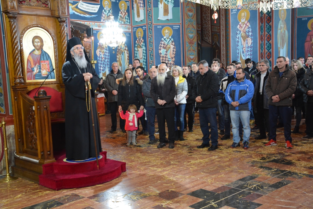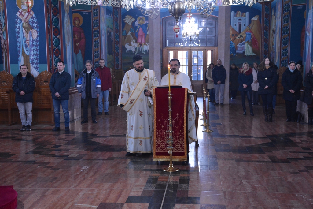 Сабрана око Трпезе Господње, око Тела и Крви Господње, Црква је на Бадњи дан, у Саборном храму, славила Новорoђеног Богомладенца и свето име Његово. Са Његовим Преосвештенством Епископом шумадијским Господином Јованом који је предводио ово евхаристијско славље, саслуживало је братство Саборног храма.