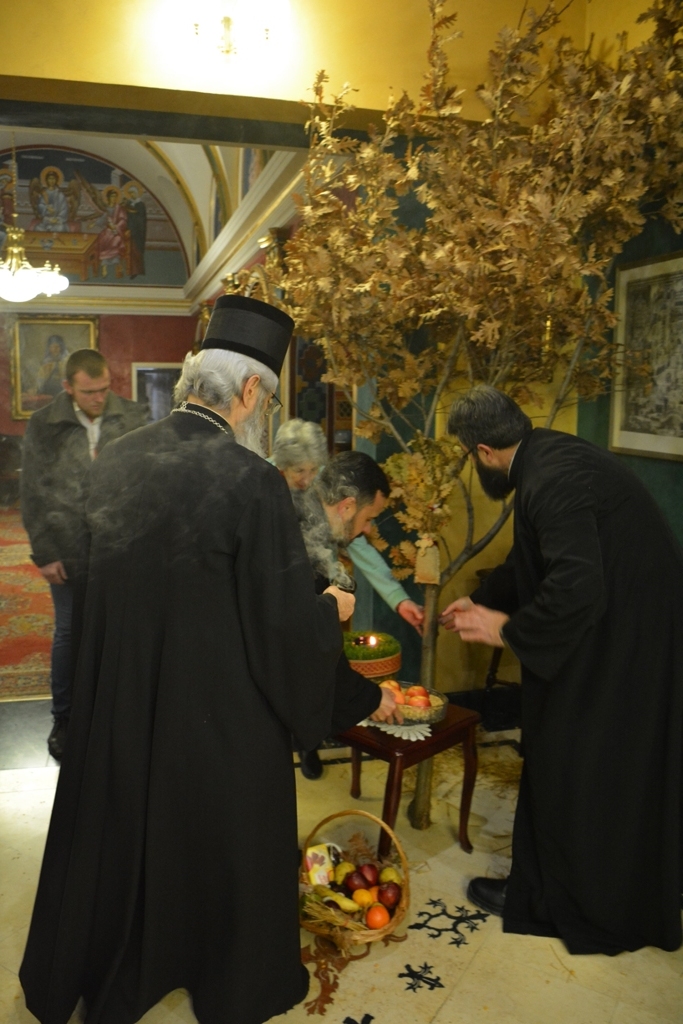 На Бадње вече, свештенство престоног града Крагујевца, окупило се, како би, као што су некада мудраци кренули у сусрет Богомладенцу Христу, и они кренули у сусрет и своме Епископу благовестили рађање Онога пред ким трепти васељена. Епископ је традиционално заједно са свештенством унео бадњак у Епископски двор.
