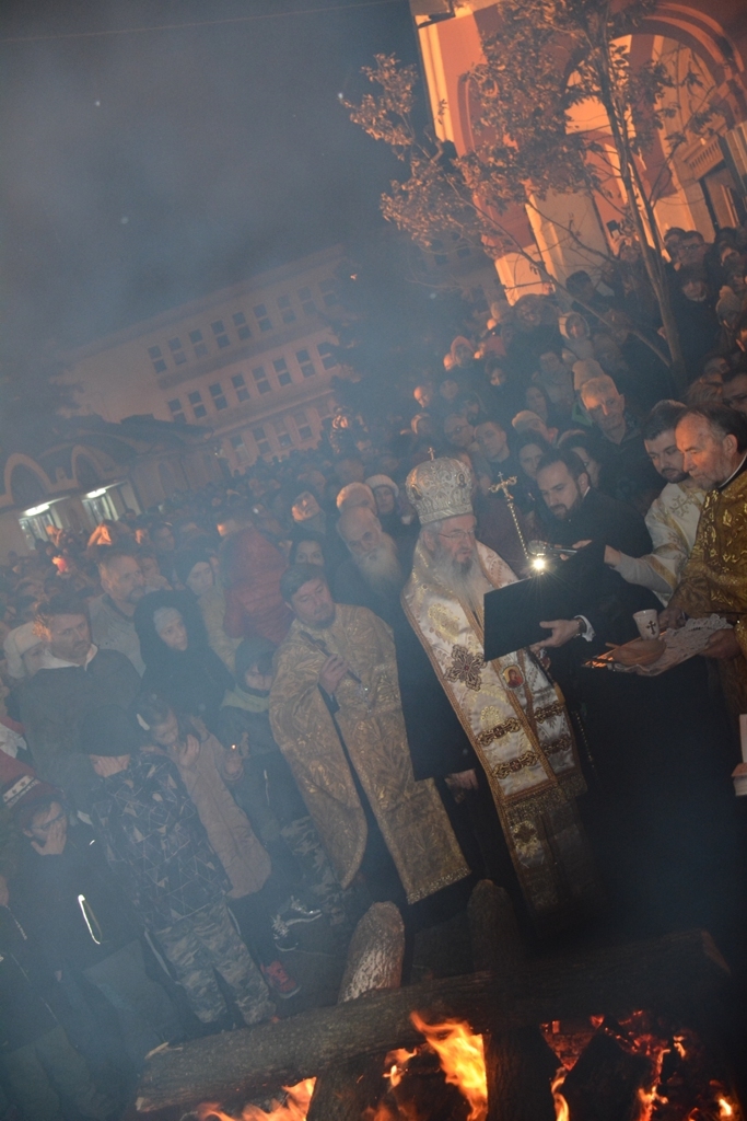 Након уношења бадњака и поуке о значају празника Телесног рођења Господа Исуса Христа, Његово Преосвештенство Епископ шумадијски Господин Јован је заједно са свештенством Саборног храма служио празнично бденије. Порта Саборног храма била је мала да прими мноштво верног народа који је нестрпљиво хитао у сусрет Богомладенцу. После завршеног бденија Његово Преосвештенство Епископ шумадијски Господин Јован, и председник Црквене општине Саборног храма, Господин Мирослав, испред Саборног храма принели су бадњак на ватру, Владика Јован је премазао бадњак медом и залио вином и уз песму Дечијег хора Саборног храма, свима пожелео срећно Бадње вече, речима: Мир Божији – Христос се роди! Јер сви ми окупљени око бадњака као једна духовна породица, треба да будемо окупљени око Христа Богомладенца у миру, слози и љубави.